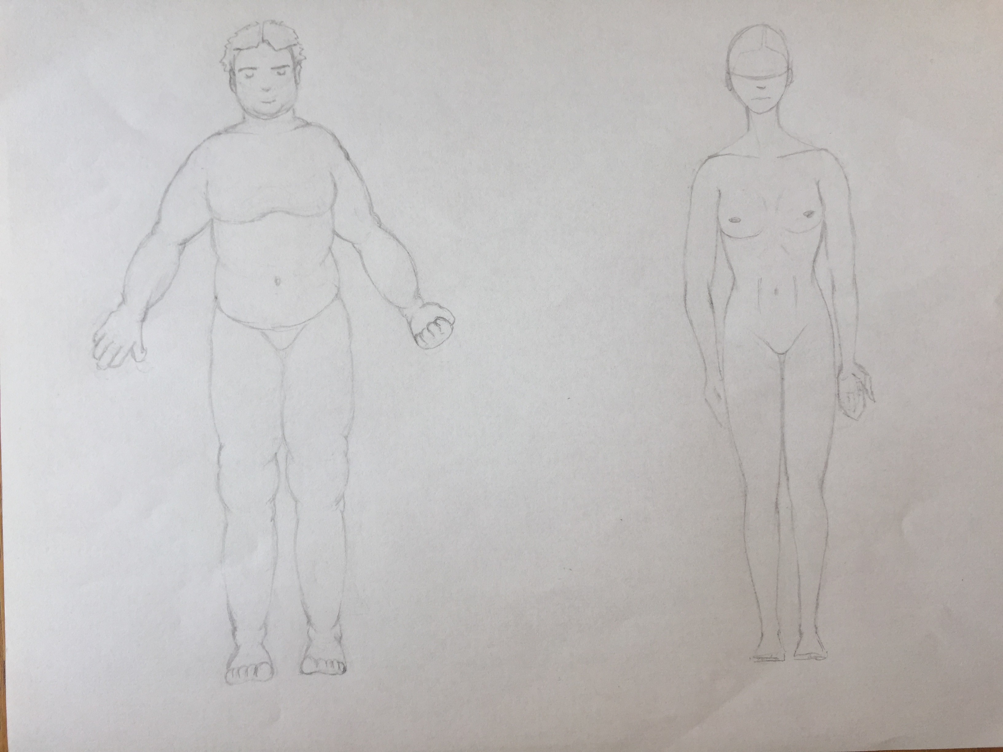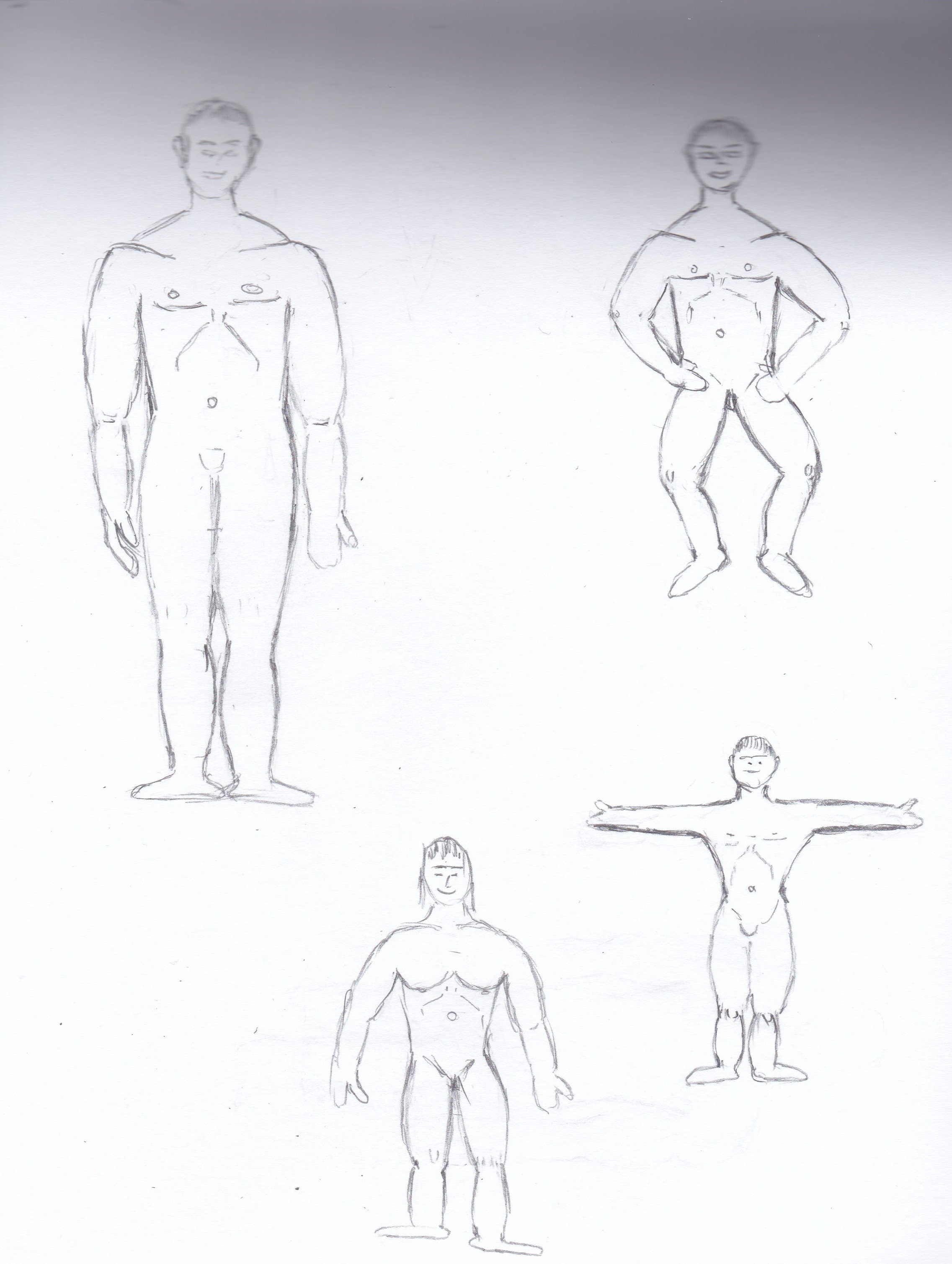 Todo es bueno para el hombre ^^ La mujer no está mal pero tiene algunas preocupaciones. Las piernas parecen demasiado cortas porque tiene el pubis demasiado bajo, y las rodillas son demasiado bajas. Los brazos son demasiado largos con manos demasiado pequeñas. El cráneo es demasiado grande. En cualquier caso, es un buen trabajo :)