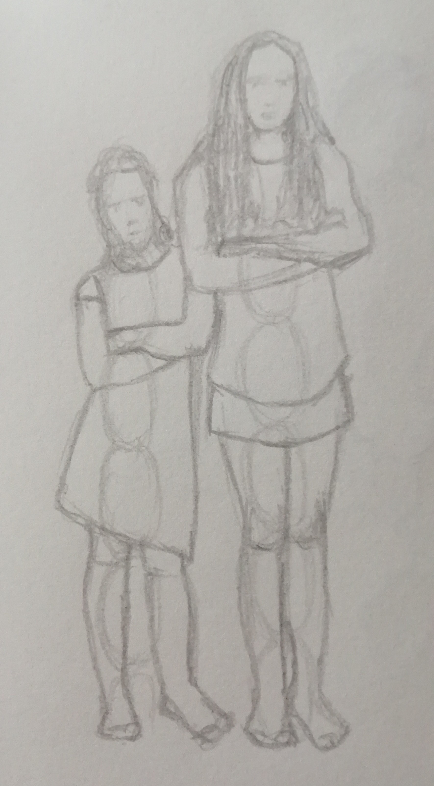 J'ai fait quelques tests de proportions de personnages. Outre les difficultés que j'ai a reporter des proportions précises, j'ai du mal a dessiner droit et j'aimerais avoir quelques conseils pour m'améliorer si c'est possible. Même avec la technique du miroir, j'ai beaucoup de mal a corriger mes dessins, j'ai l'impression que quand j'inverse, je corrige trop (et du coup j'ai le problème dans l'autre sens). J'ai remarqué que j'avais beaucoup de mal pour dessiner des formes symétriques et ça vient peut-être de là. D'un autre côté, mes horizontales et mes verticales ne sont jamais tout à fait justes donc ça peut être une autre raison. Est-ce qu'il y a des exercices ou des techniques qui permettent d'améliorer ces points ?