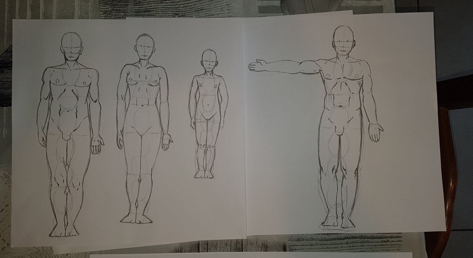 Bueno, aquí hay un resultado para principiantes. Dibujé estos cañones por separado y los trazé en esta hoja de pluma de tinta. Muchos están tratando de definir las líneas de la cabeza y mi falta de experiencia ha fallado en definir adecuadamente las proporciones del barril masculino, pero aún estoy satisfecho con eso. Hay algunos errores en las proporciones del lado izquierdo a la visa derecha o visa, pero de todos modos podemos definirlo fácilmente como un personaje masculino.