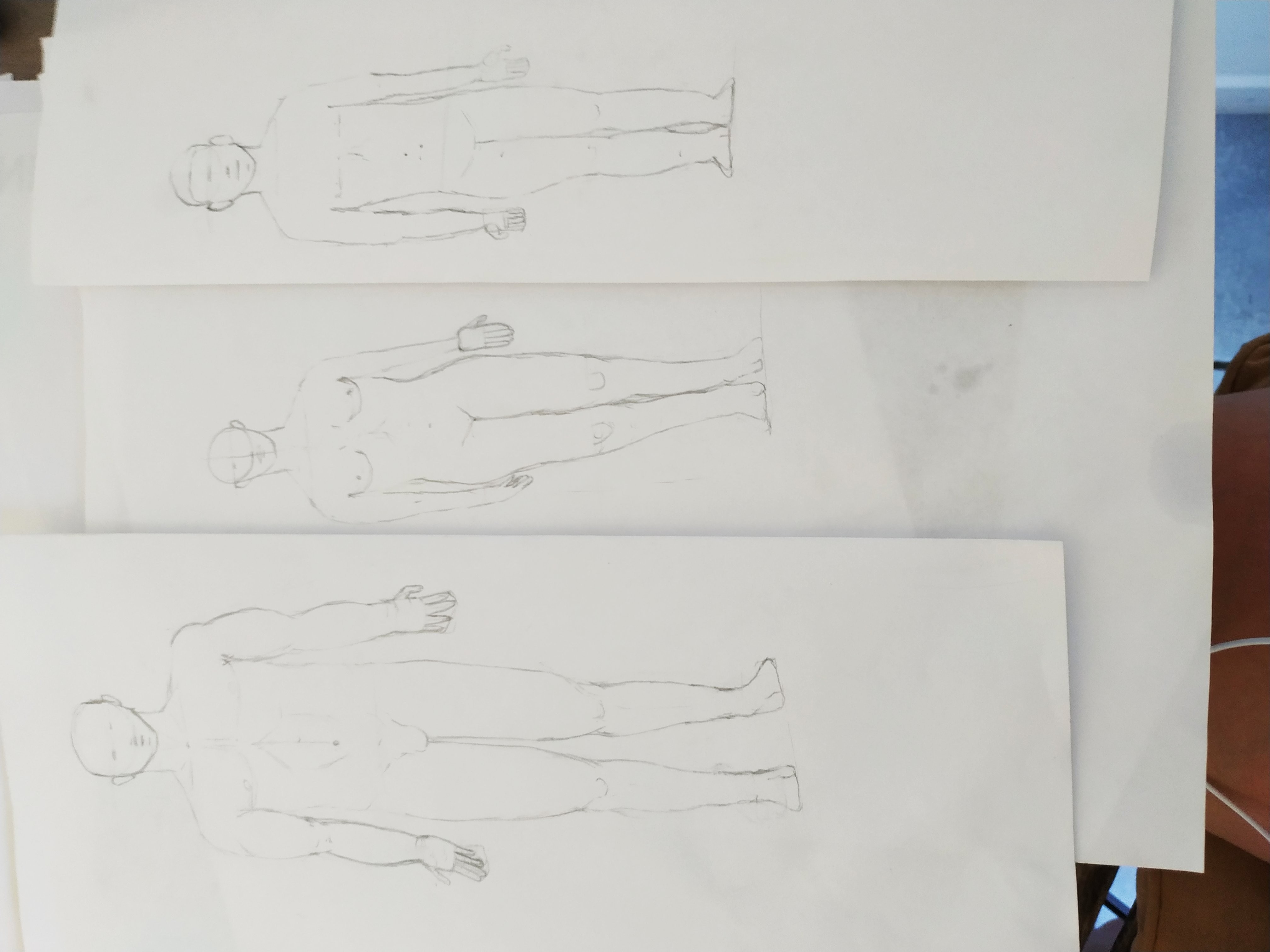 Pas facile de dessiner des personnes !! J'ai de la peine à faire les 2 côtés pareils. Du coup je fais plein de petits traits au lieu de faire un trait continu.
