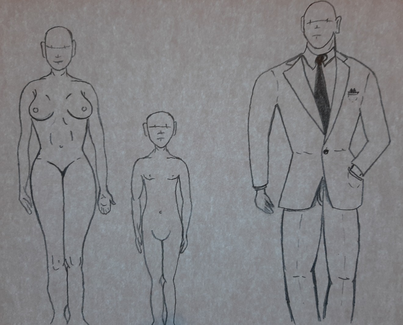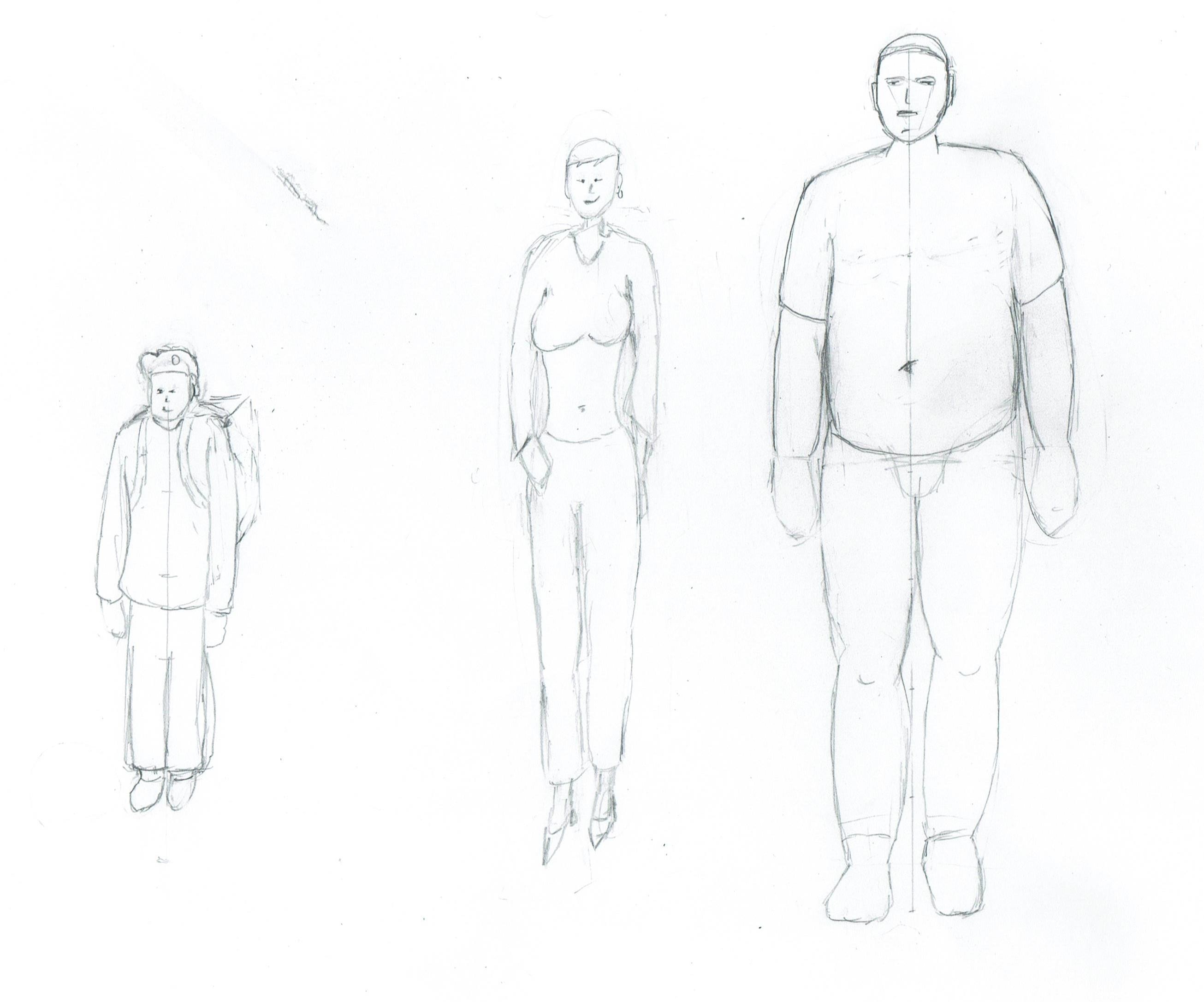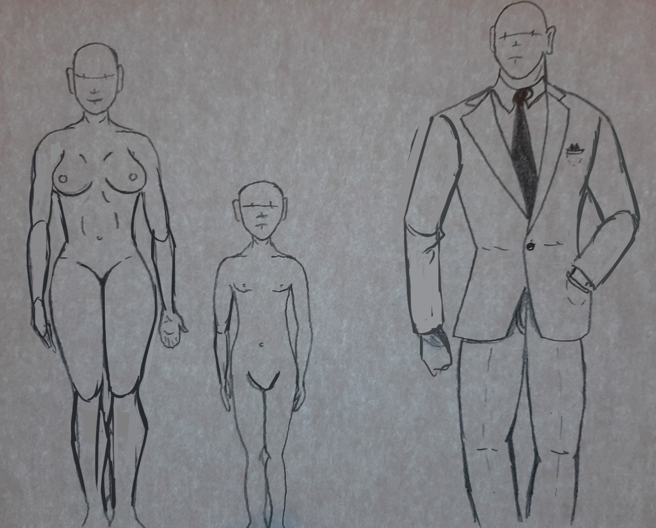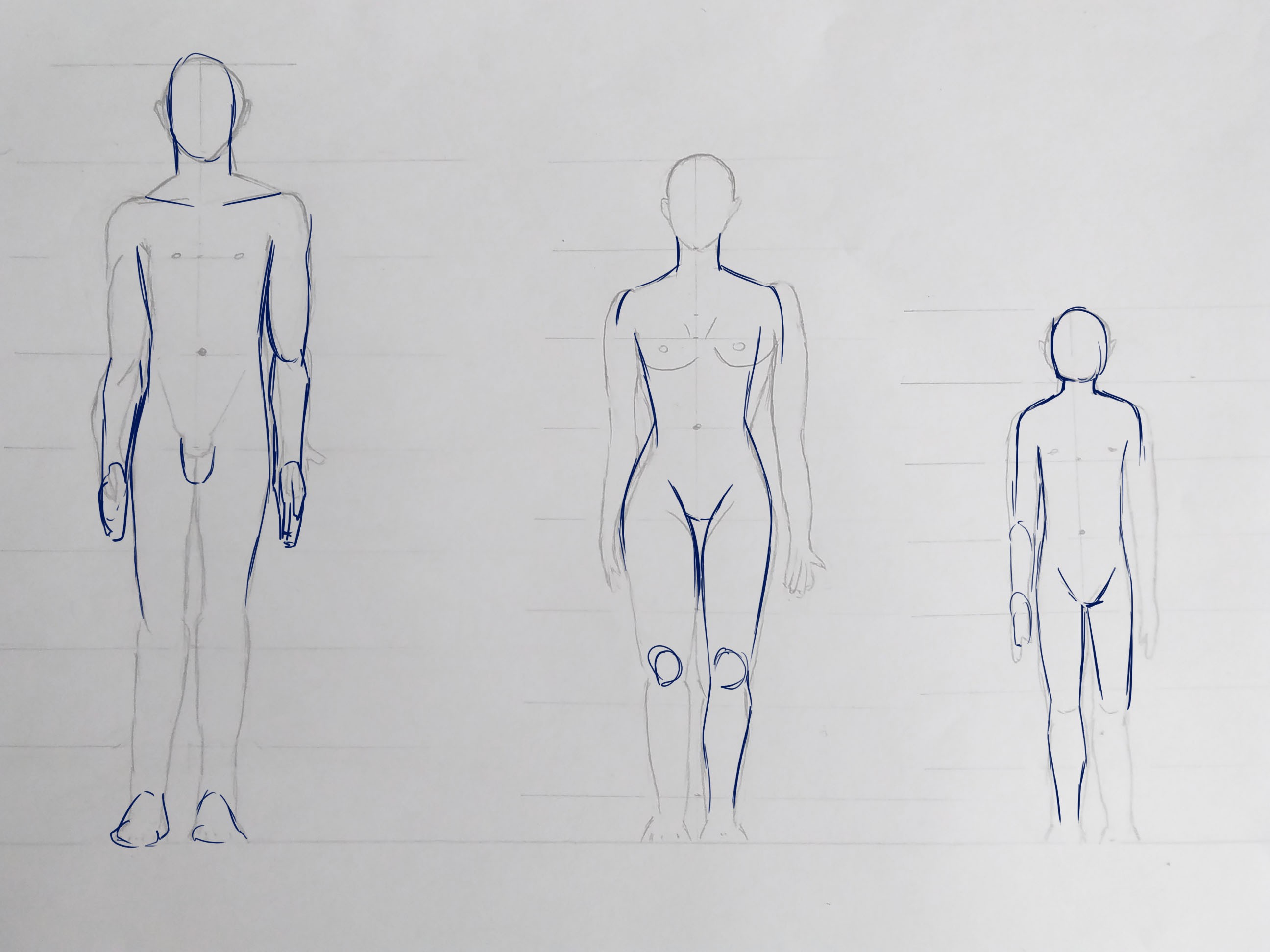 Para el hombre, te adjunto una corrección porque has abusado un poco en el ancho de la costilla, jaja. Y la cabeza también es demasiado grande, lo que da la impresión de que es pequeño (como si lo imagino con la mujer, tengo la impresión de que le sucede a su hombro qué).