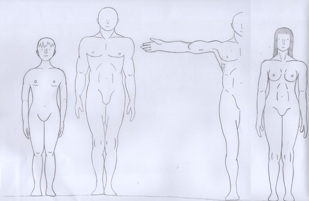 Para responder a su segunda pregunta, depende. Si toma un informe de 10 topes de 10, y desea hacer un ser muy grande (un poco como los extraterrestres en avatar), encontrará proporciones similares. Tendrán sus manos que llegan entre la 1/3 y la mitad de los muslos, los codos en el ombligo, la pelvis aproximadamente la mitad del cuerpo, etc. para tener algo de proporcional. Pero también puede querer hacer un personaje desproporcionado (como las princesas de Disney, por ejemplo, los quibis en el manga o crear criaturas desproporcionadas en general), pero para poder desproporciones de una manera coherente, sin que parezca que dibujar errores, primero debe sentirse cómodo con las proporciones clásicas del cuerpo, comprenderlos y saber qué jugar.