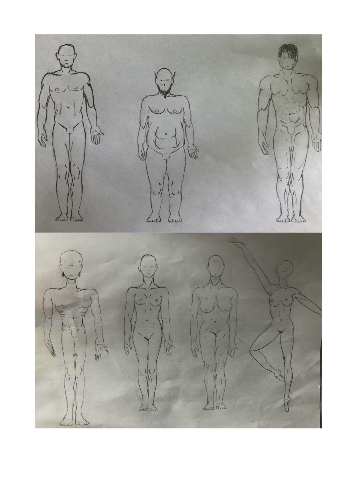 Bonjour, voici mon premier canon, y a t'il des erreurs de proportions svp ? J'ai une autre question, en essayant de faire des canons avec un rapport de te te de 10 par exemple, faut il essayer de garder les repères donnés par Grégoire comme l'emplacement des tetons ou des coudes ?