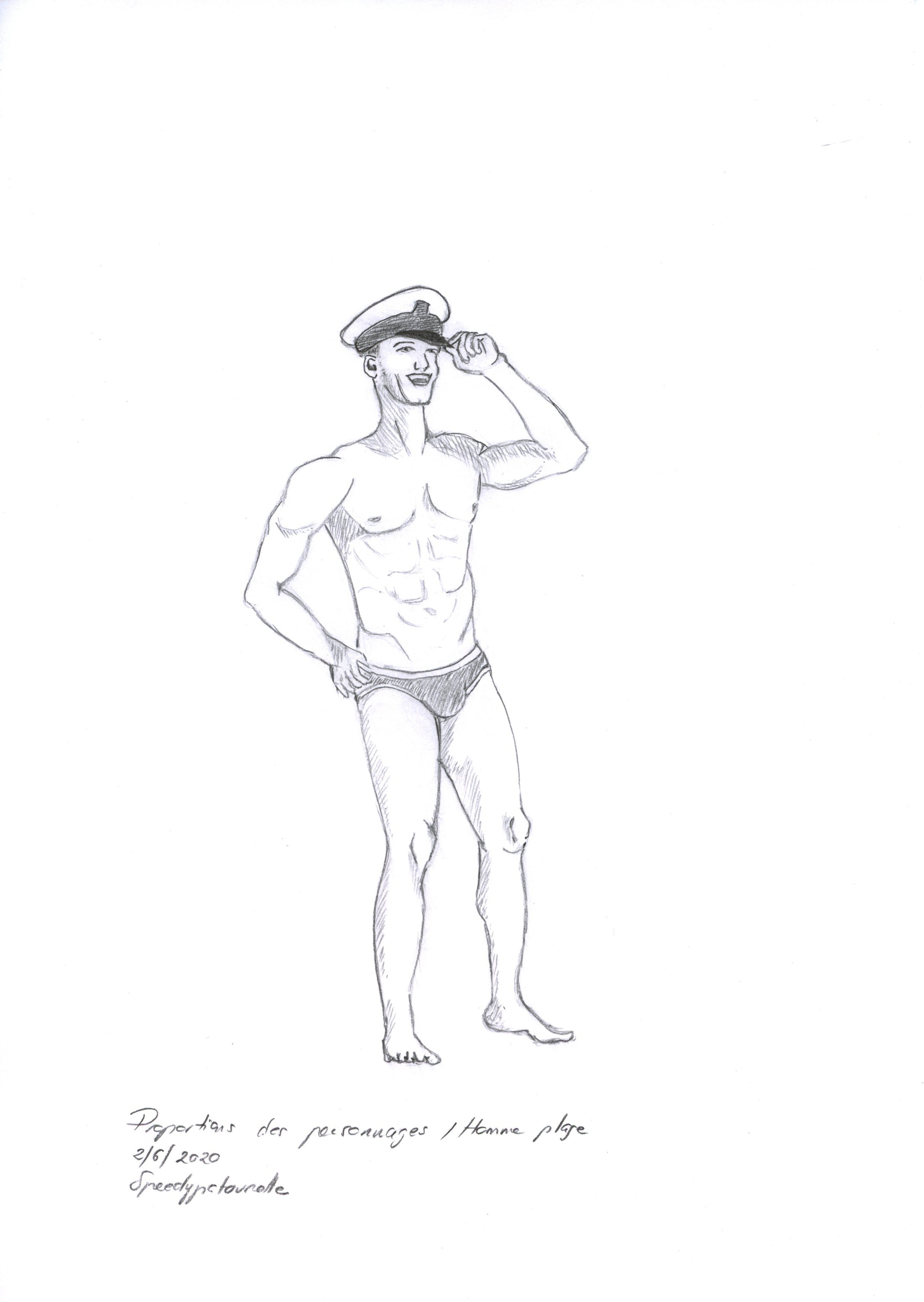 Voilà mon premier personnage, homme sur la plage. J'ai dû pas mal gommer