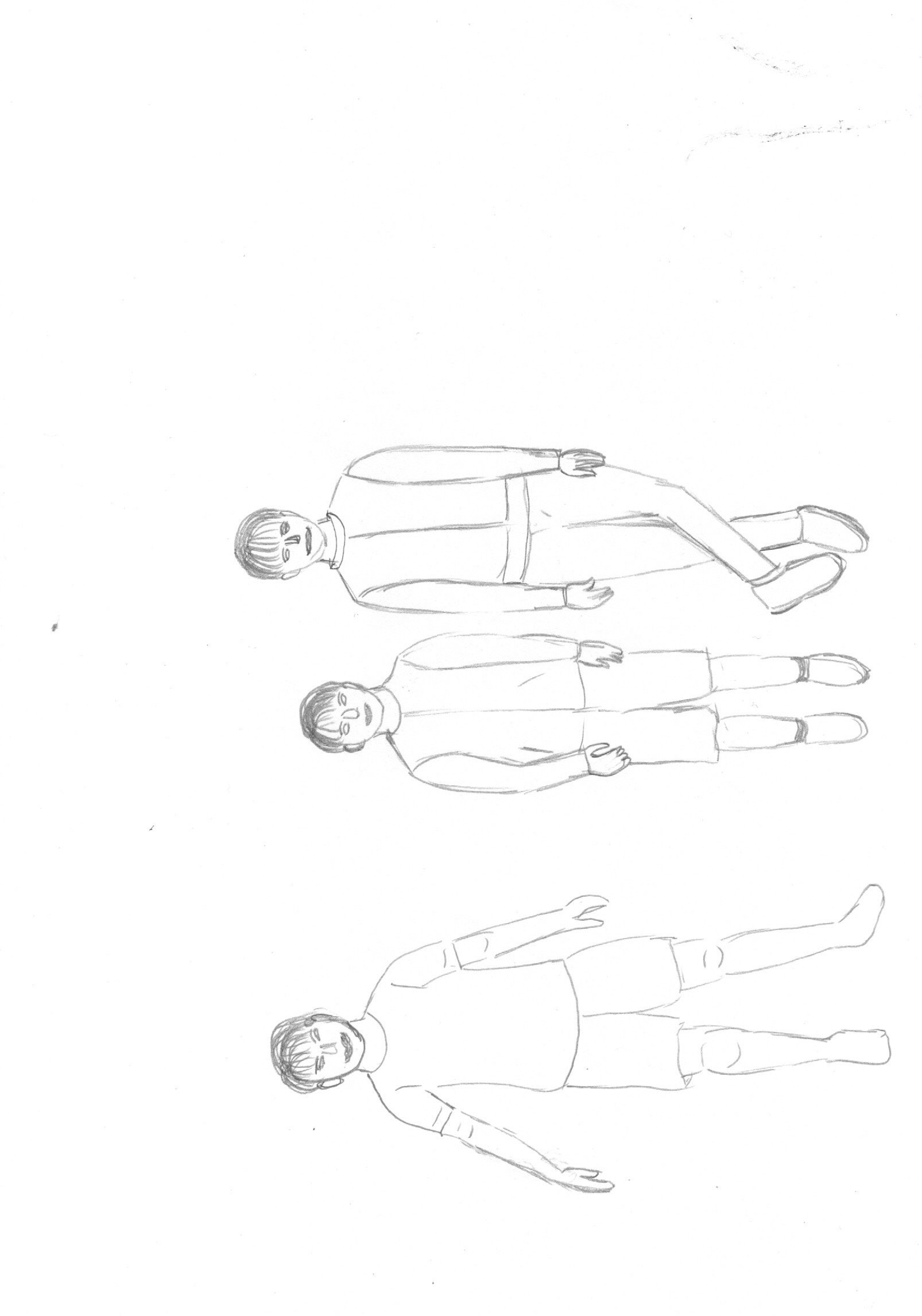 Voilà ! La plupart de mes commentaires sont sur des sujets qui pourront être améliorés dans les prochaines leçons. Sur les proportions, c'est du bon travail ! Ce sont surtout les bras qui seront à retravailler. Bien joué !