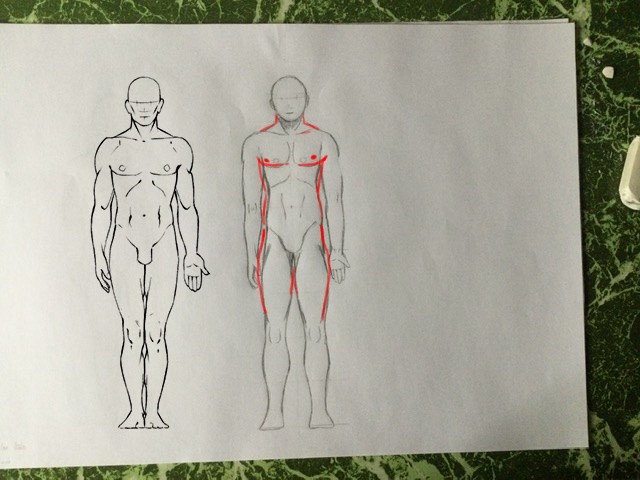 Es un buen trabajo, las proporciones en la altura son solo :) Lo que es un poco extraño es que tu busto carece de ancho. Tendrás un poco de trabajo también sabía la forma de los músculos (piernas en particular), pero eso funcionará mejor en las próximas lecciones en el esqueleto (lo que te hará comprender los diferentes volúmenes del cuerpo), y en los músculos sobre todo eso :) Mientras tanto se valida :)
