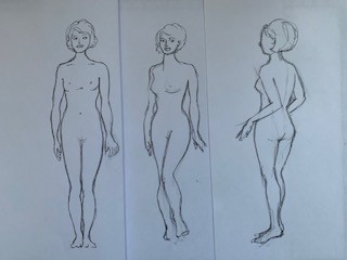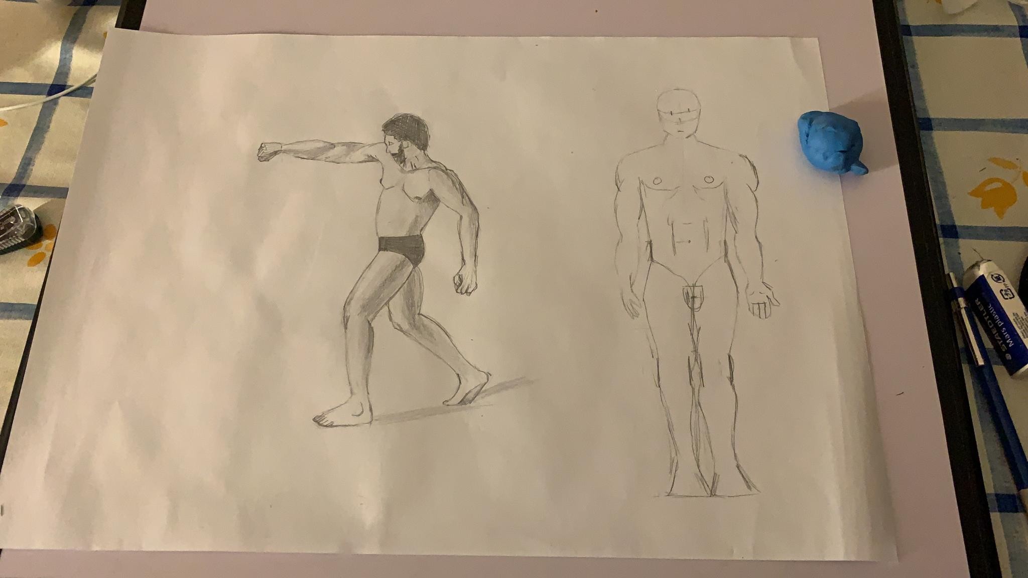 Voici mes 2 premiers exos : j'ai essayé de varier les attitudes homme et femme. pour les proportions c'est vraiment difficile quand on sort de la vue de face.