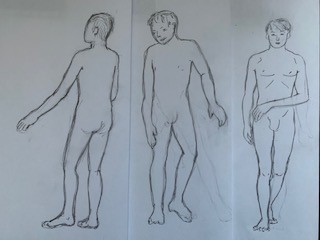 Désolée pour l'attente ! C'est pas mal ! Le principal défaut est que tu as tendance à faire les bustes trop long, avec l'aine trop basse. On le vois sur tes 3 premiers personnages. Pour les 2 premiers, le haut du corps manque un peu de largeur pour un homme et les bras sont trop courts. Le dernier personnage à droite est le mieux proportionné :) Globalement pense que les cous réalistes sont un peu plus larges et les têtes un peu plus grosses (sauf pour le dernier personnage). Marque aussi la zone du genou, là on a du mal à savoir si tu le places bien. Il y a des petites imperfections au niveau des formes du corps mais tu le verra dans les prochains cours. En tous cas c'est un bon début, bon travail :)