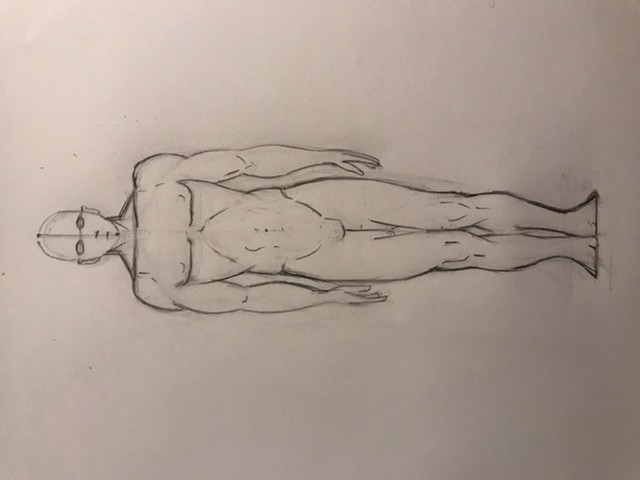 C’est plutôt bien :) Attention si tu déplies le bras il arrive plus loin que l’autre. Les jambes donnent l’impression que les genoux sont bas mais c’est surtout qu’il n’a pas vraiment le volume de ses mollets, la forme de ses jambes n’est pas très bien définie mais tu verras ça avec le cours des muscles :) Beau travail sinon :)