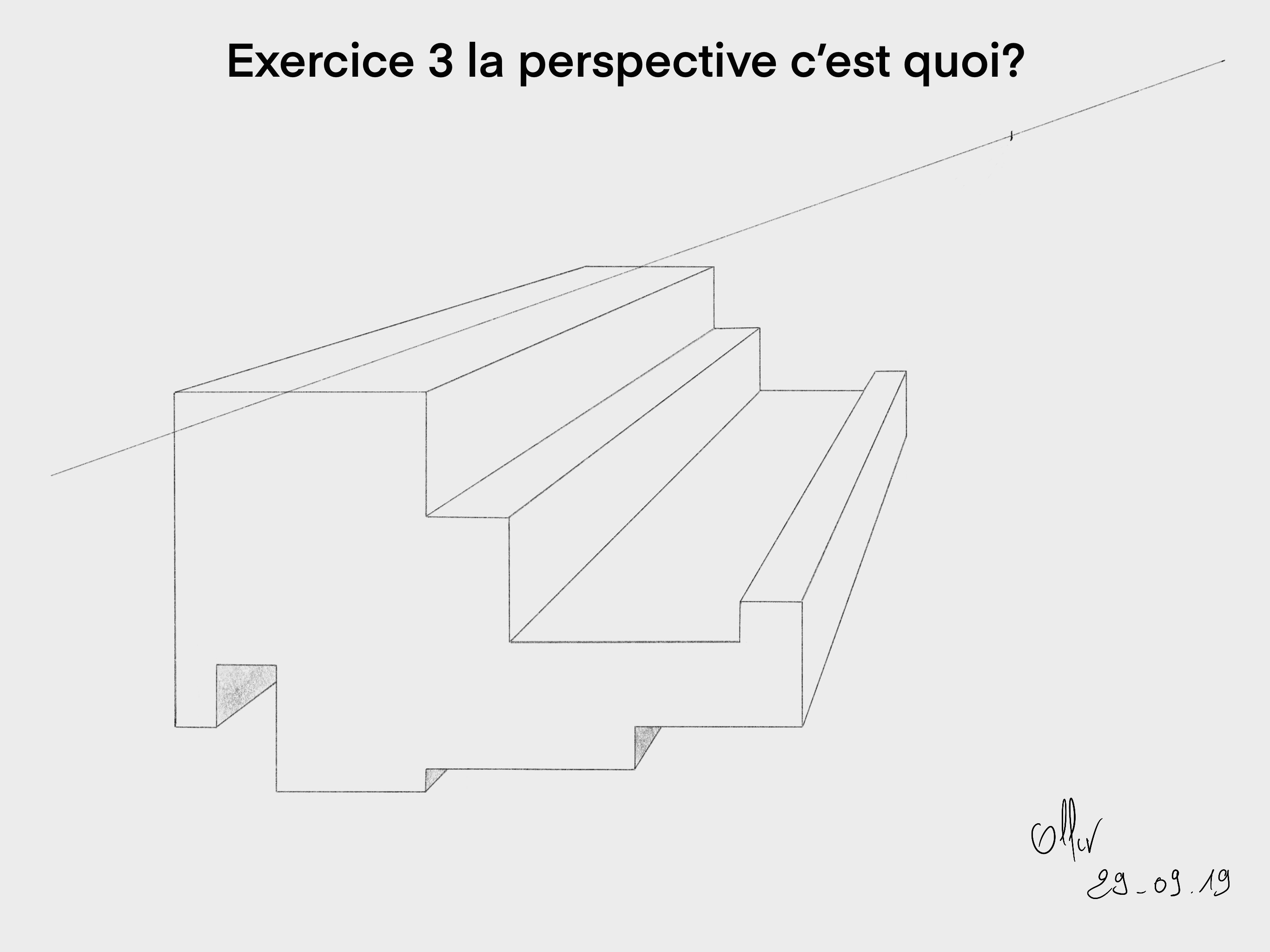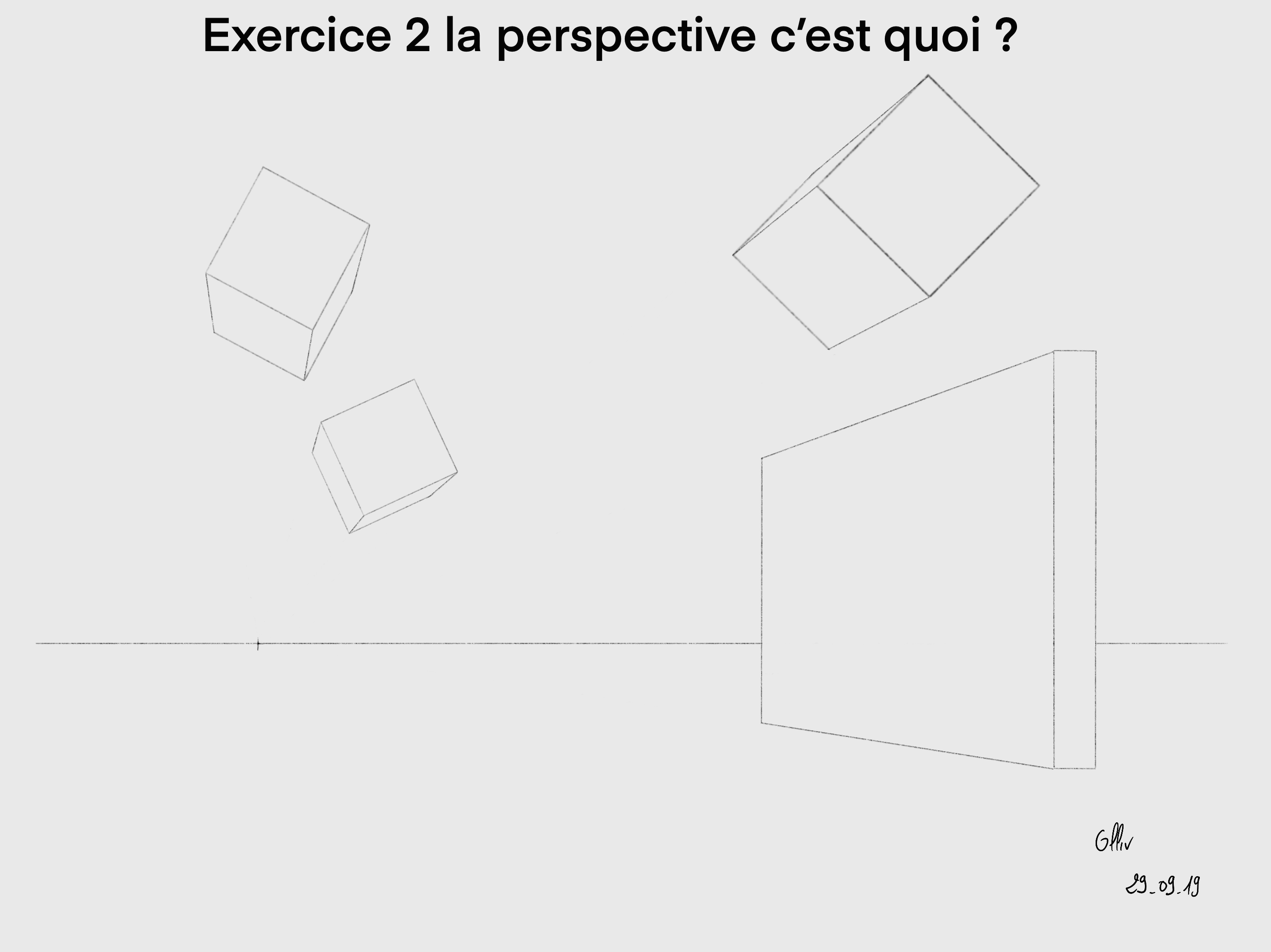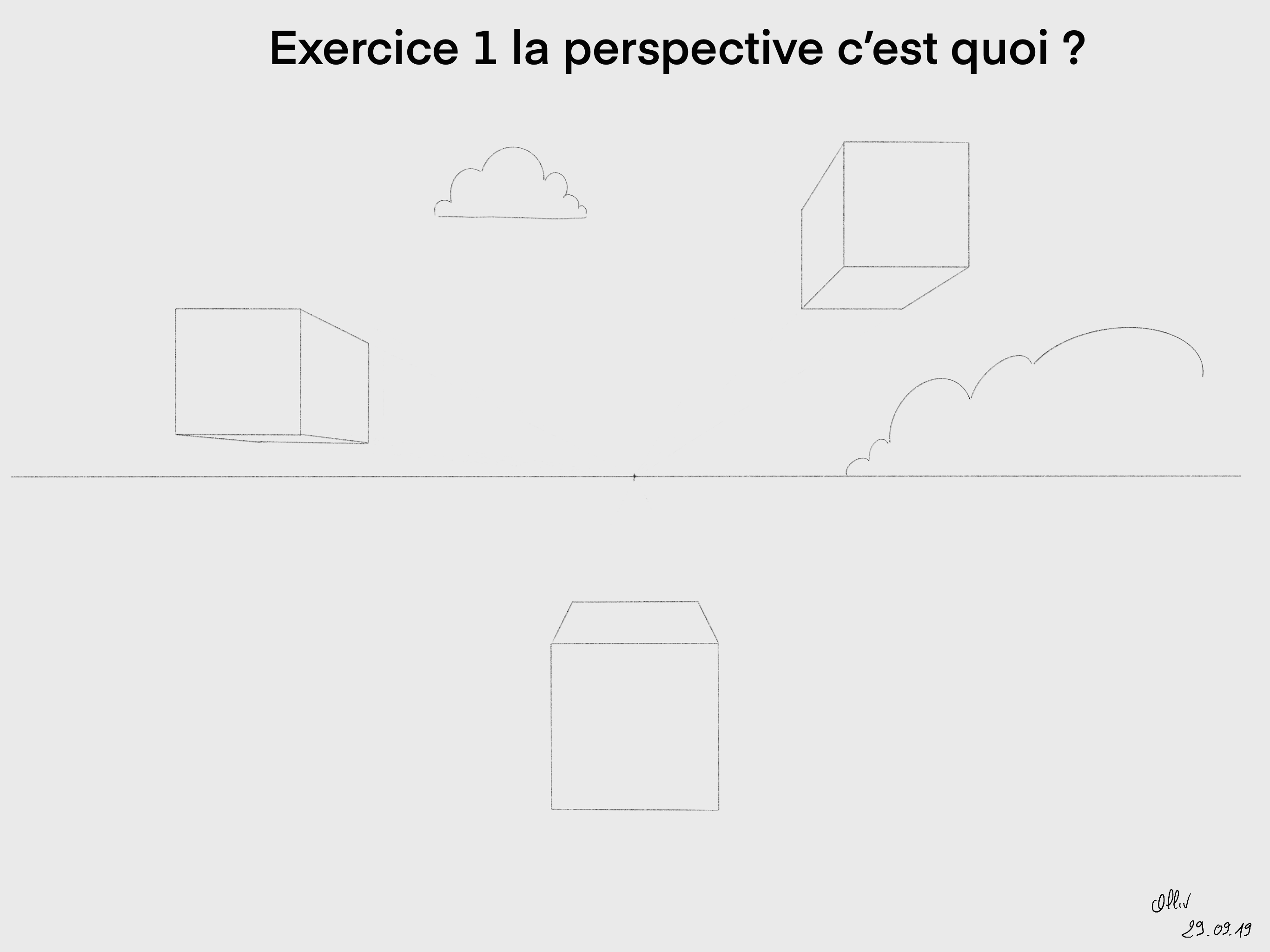 - Parce que les points de fuite sont toujours situés sur la ligne d'horizon. Et l'horizon ne se déplace pas en fonction de la direction dans laquelle tu regardes. Donc ce n'est pas ton regard qui détermine la position des points de fuite.