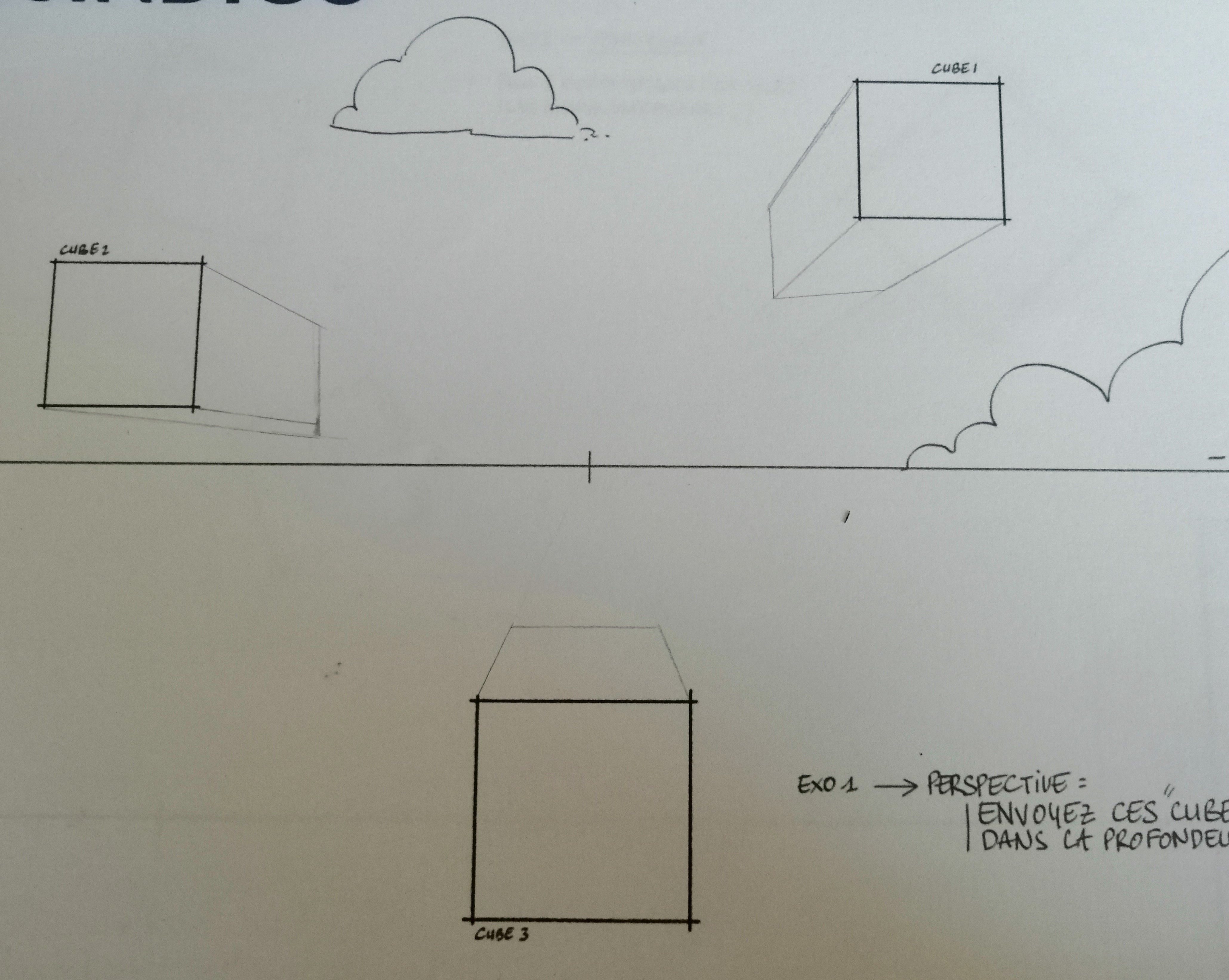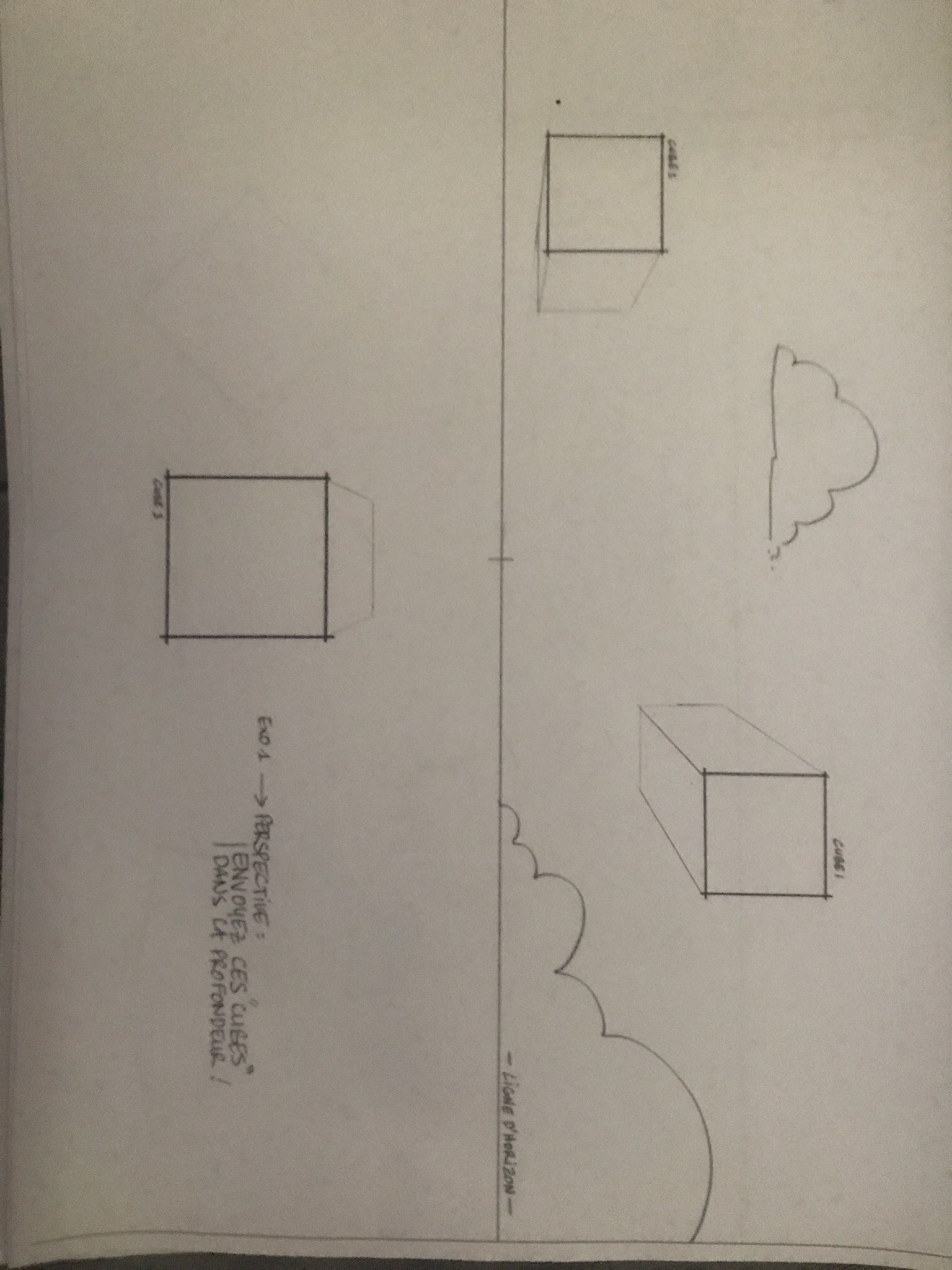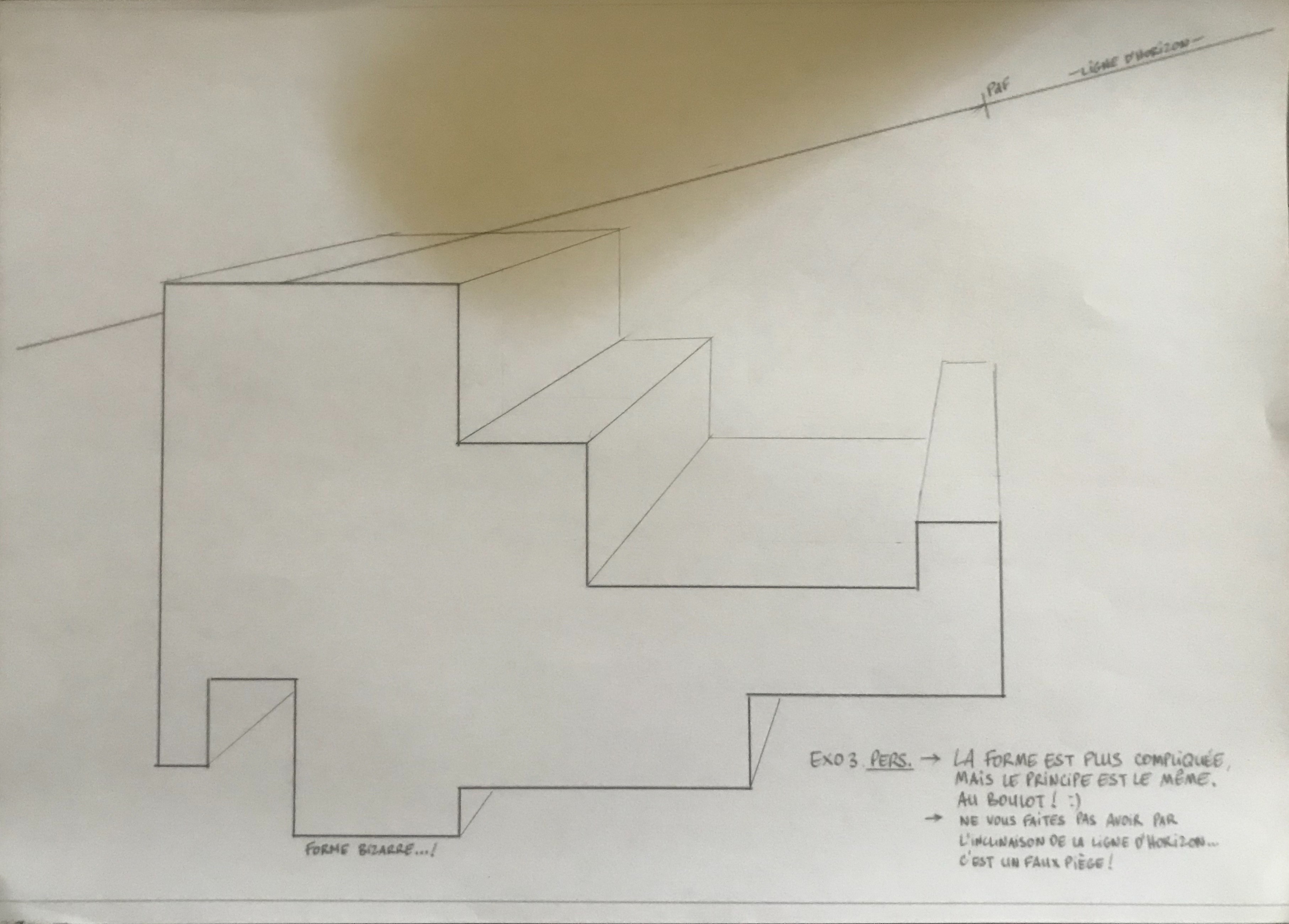 Par contre : Si tu regardes un objet situé à tes pieds, ses fuyantes iront toujours vers la ligne d'horizon en dehors de ton champ de vision. Si tu regardes un objet au-dessus de toi, ses fuyantes iront toujours vers la ligne d'horizon, située là encore en dehors de ton regard. Mais dans ces deux cas de figure, tu auras un troisième point de fuite. Celui-là ne dépendra effectivement pas de la ligne d'horizon et impactera les verticales de ton objet (qui ne seront donc plus verticales ^^). Mais les deux premiers points de fuite de tes objets sont toujours toujours sur la ligne d'horizon :3