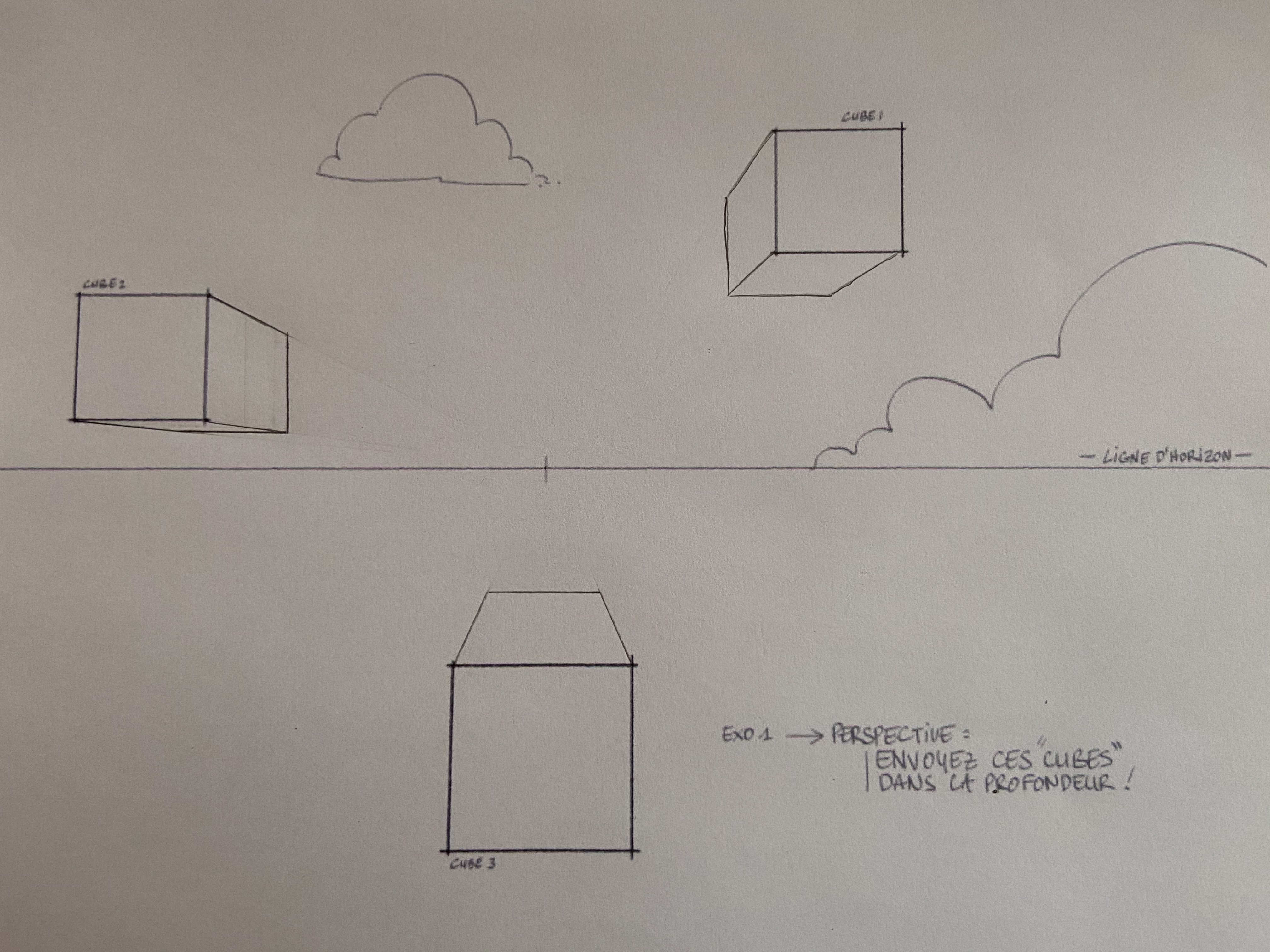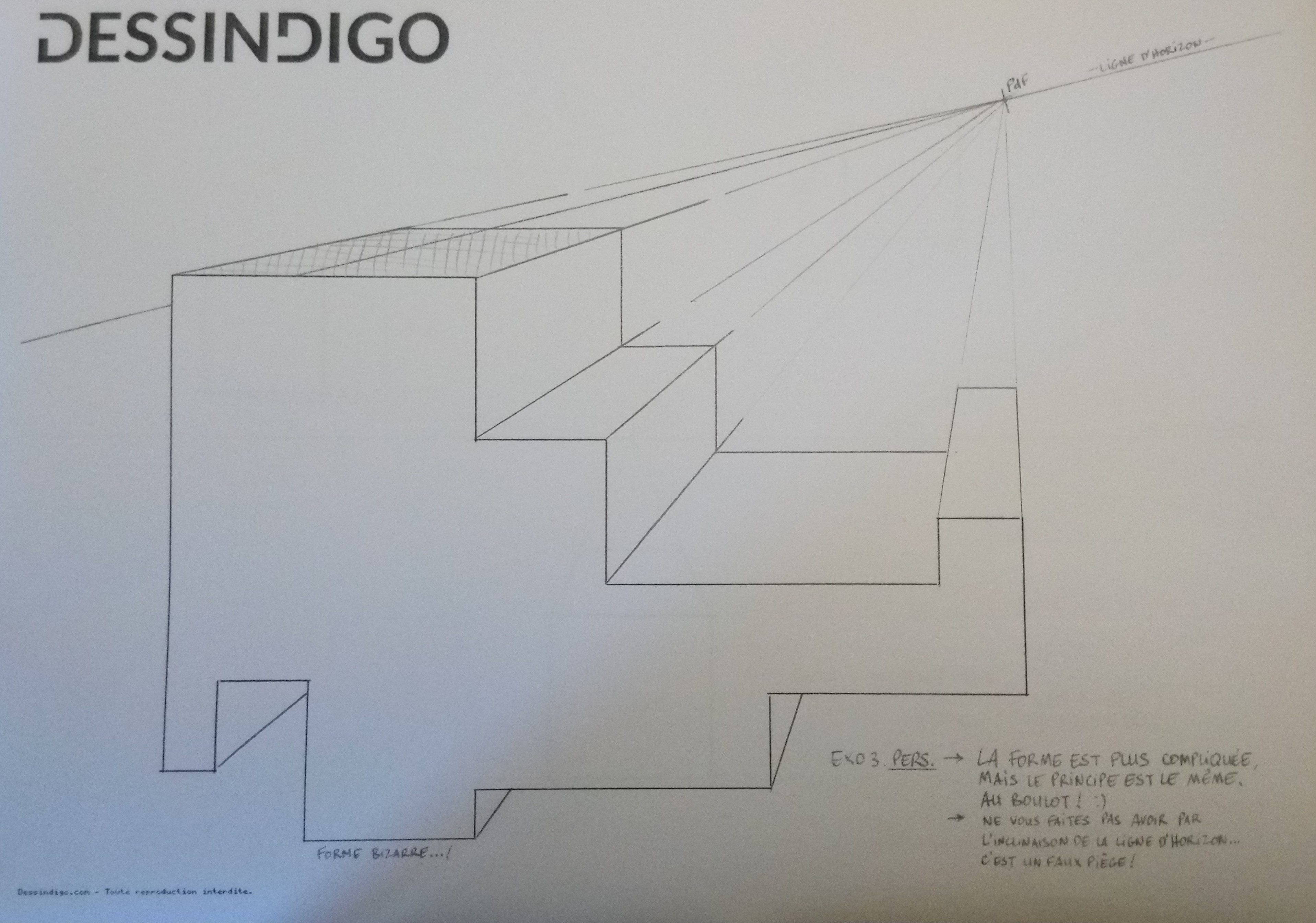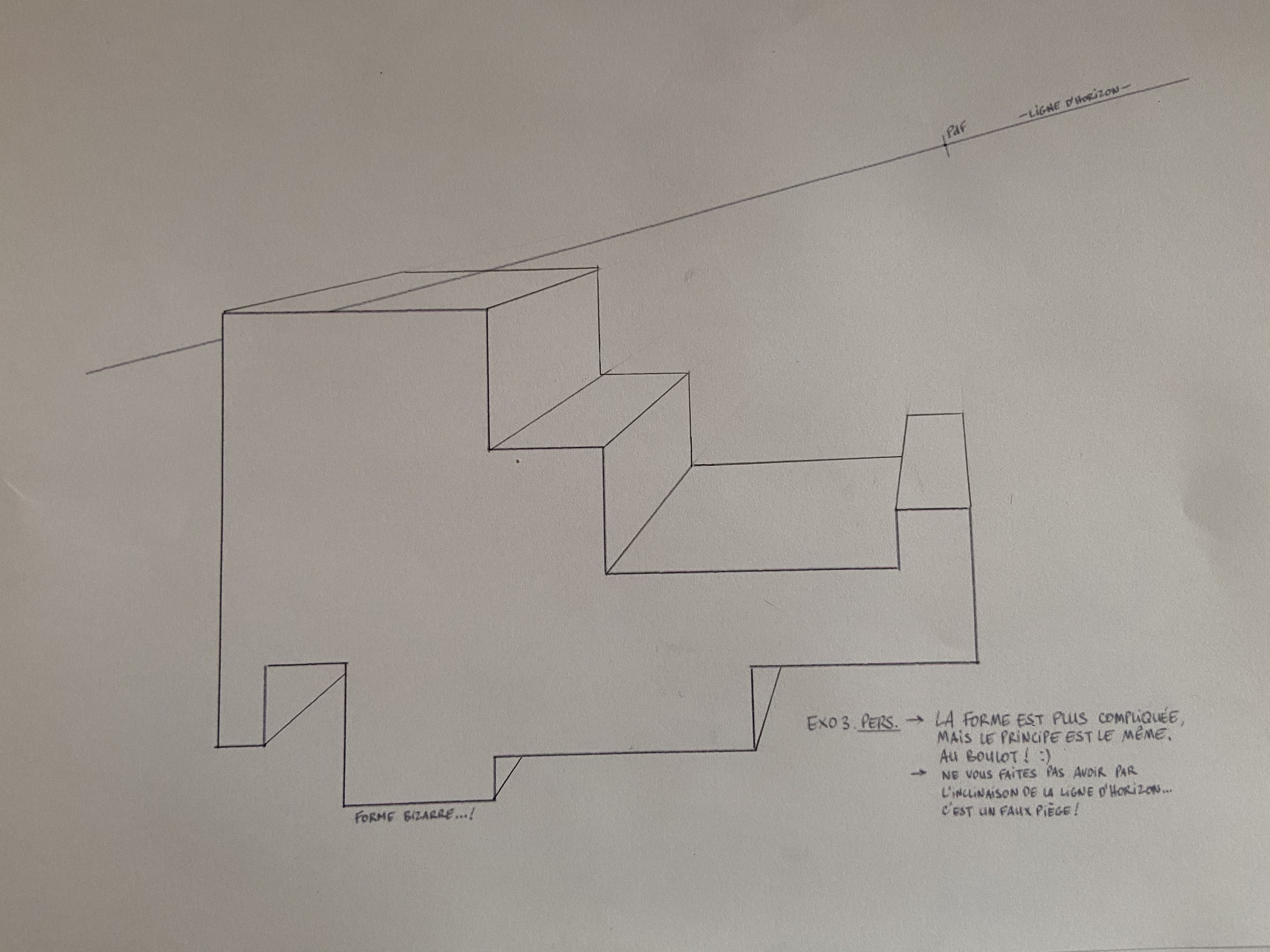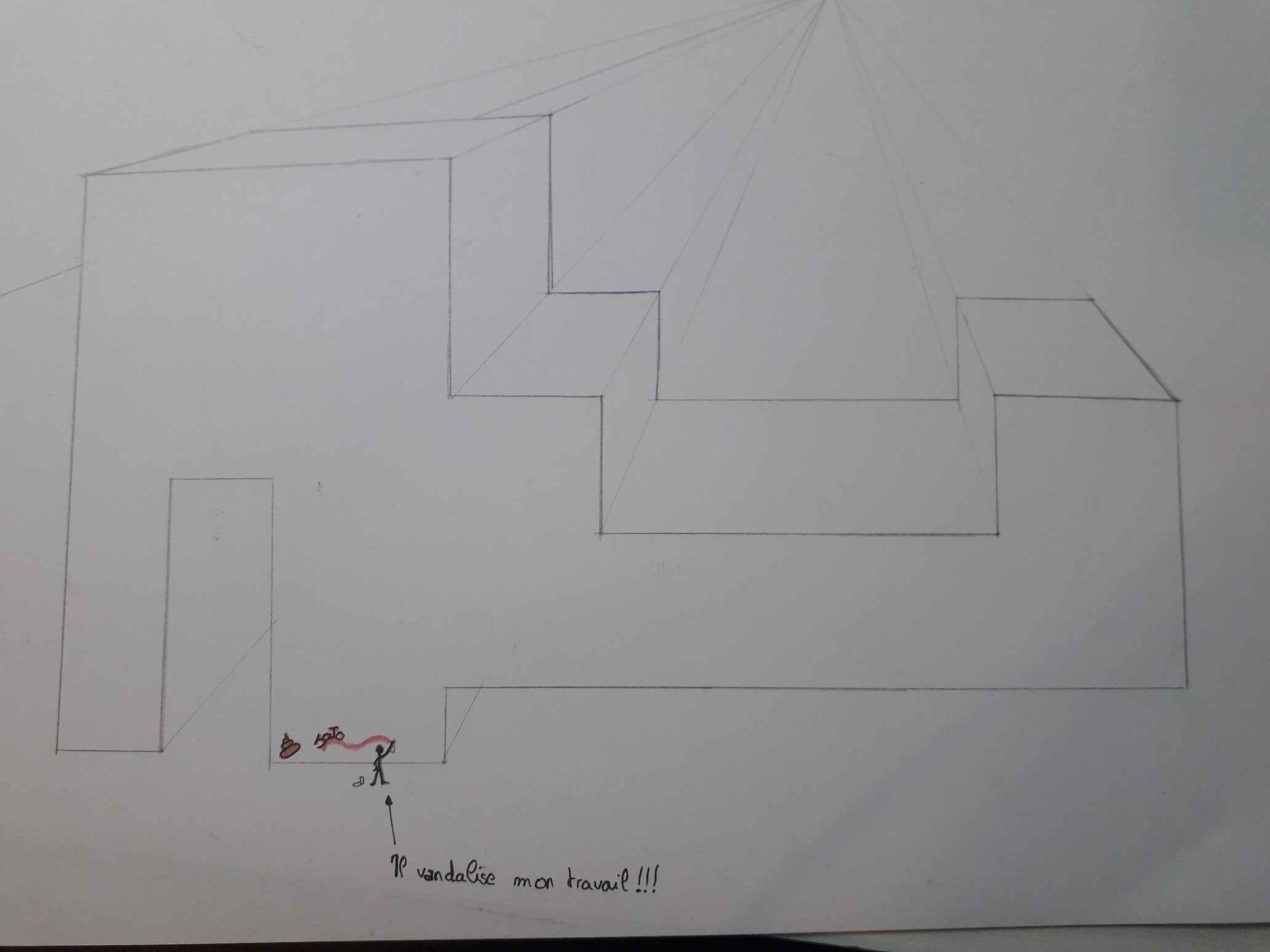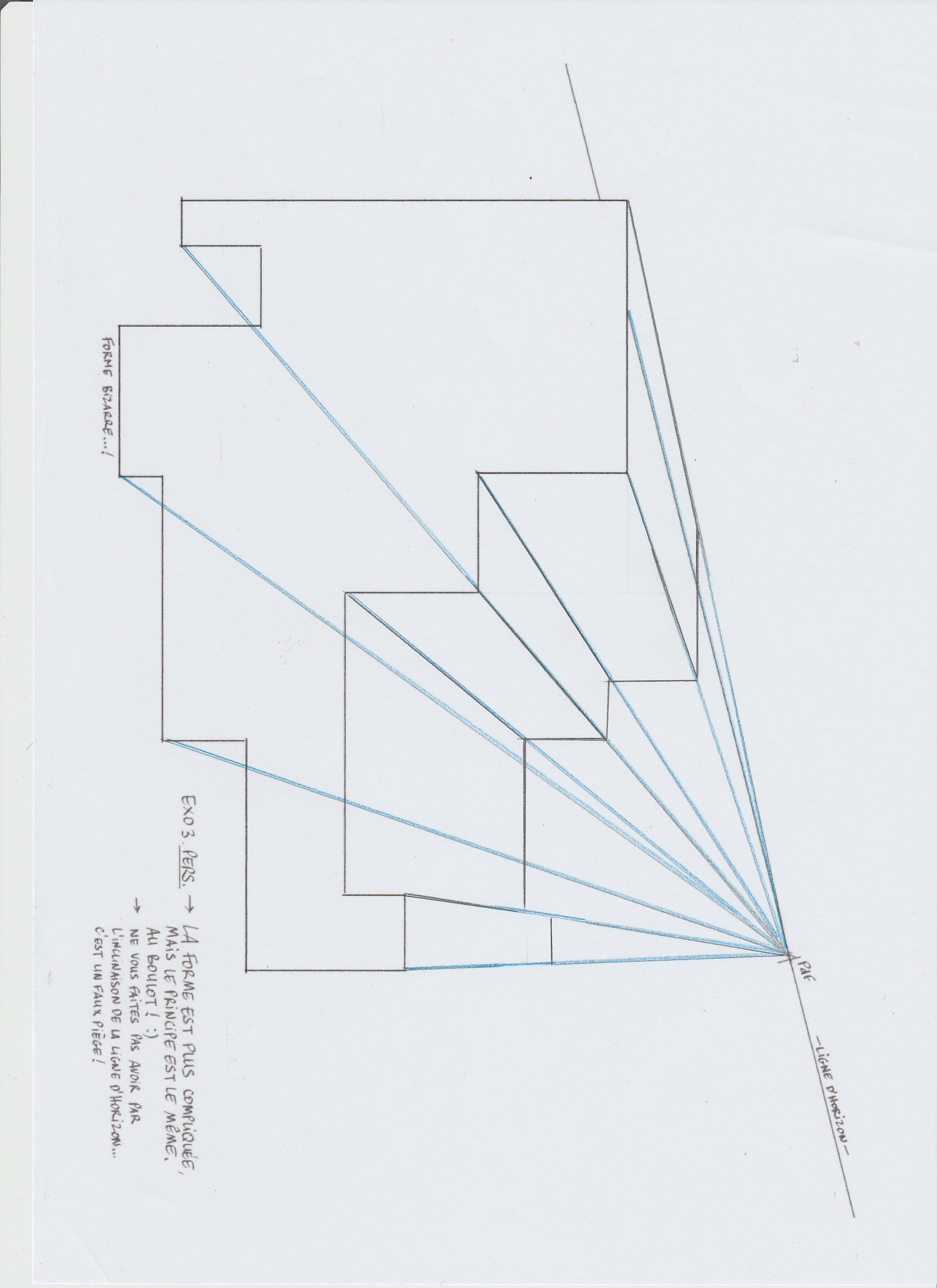 Edit : Après comparaison, mes forment ne ressemblent pas exactement a celles de la correction, et je pense que j'ai du légèrement déplacer mon point de fuite de quelques centimètres .