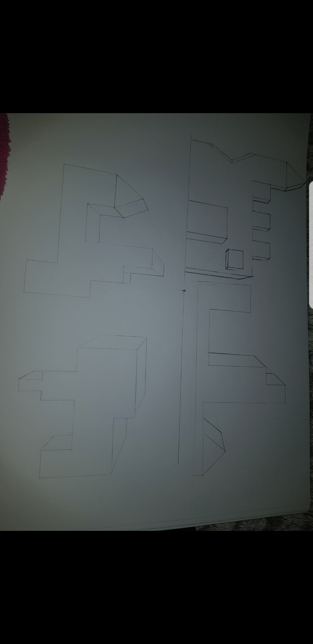 1) Sur ta forme en haut à gauche je ne pense pas que l'on puisse voir le côté gauche ! Comme on voit l'objet de droite, son côté gauche serait caché ;-)