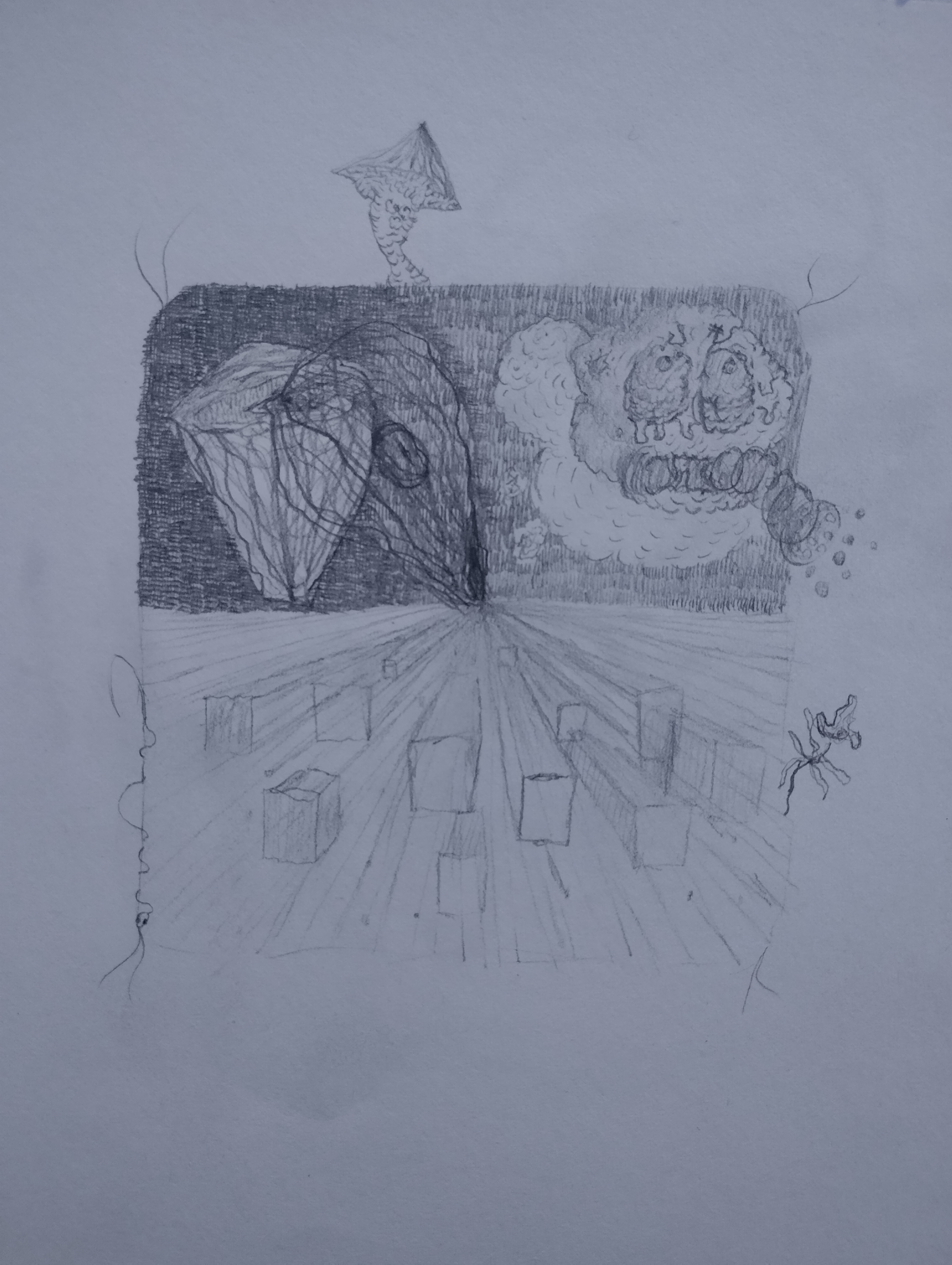 Bonjour Braineau, C'est pas mal ! Essaie d'être un peu plus subtile avec ton ciel et nuage (moins imposant), et ajoute des détails (notémment continue la construction de ton bâtiment à l'intérieur), demande-toi aussi quel est le sujet de ton image? Et comment le mettre en valeur avec la composition? En tout cas, ta perspective est juste ^^ Continue comme ça !