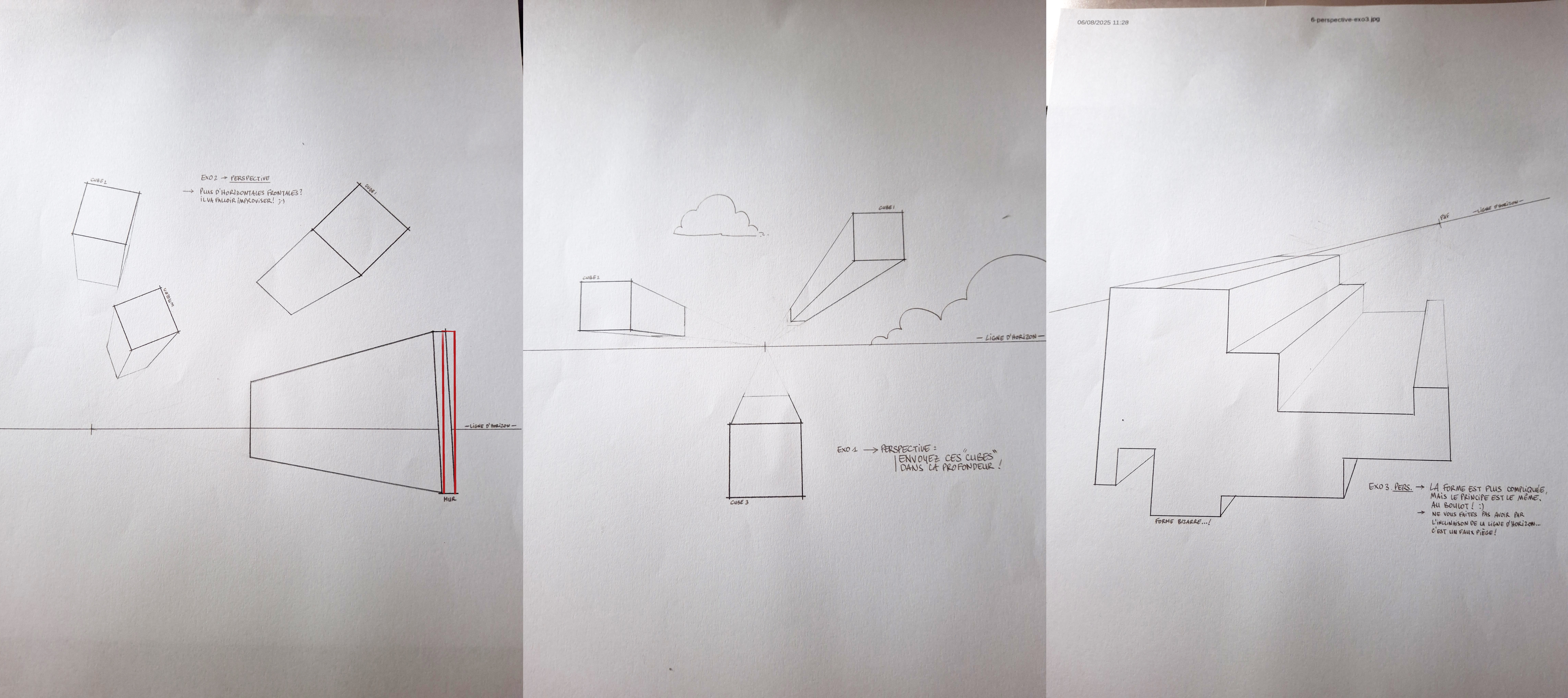 J'ai déjà vérifié tes trois exercices et je tiens à te dire qu'ils sont corrects. La perspective est bien appliquée.