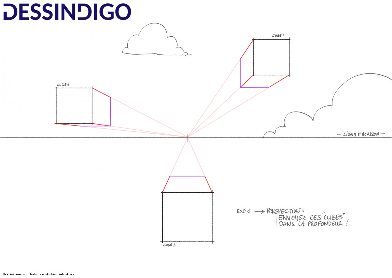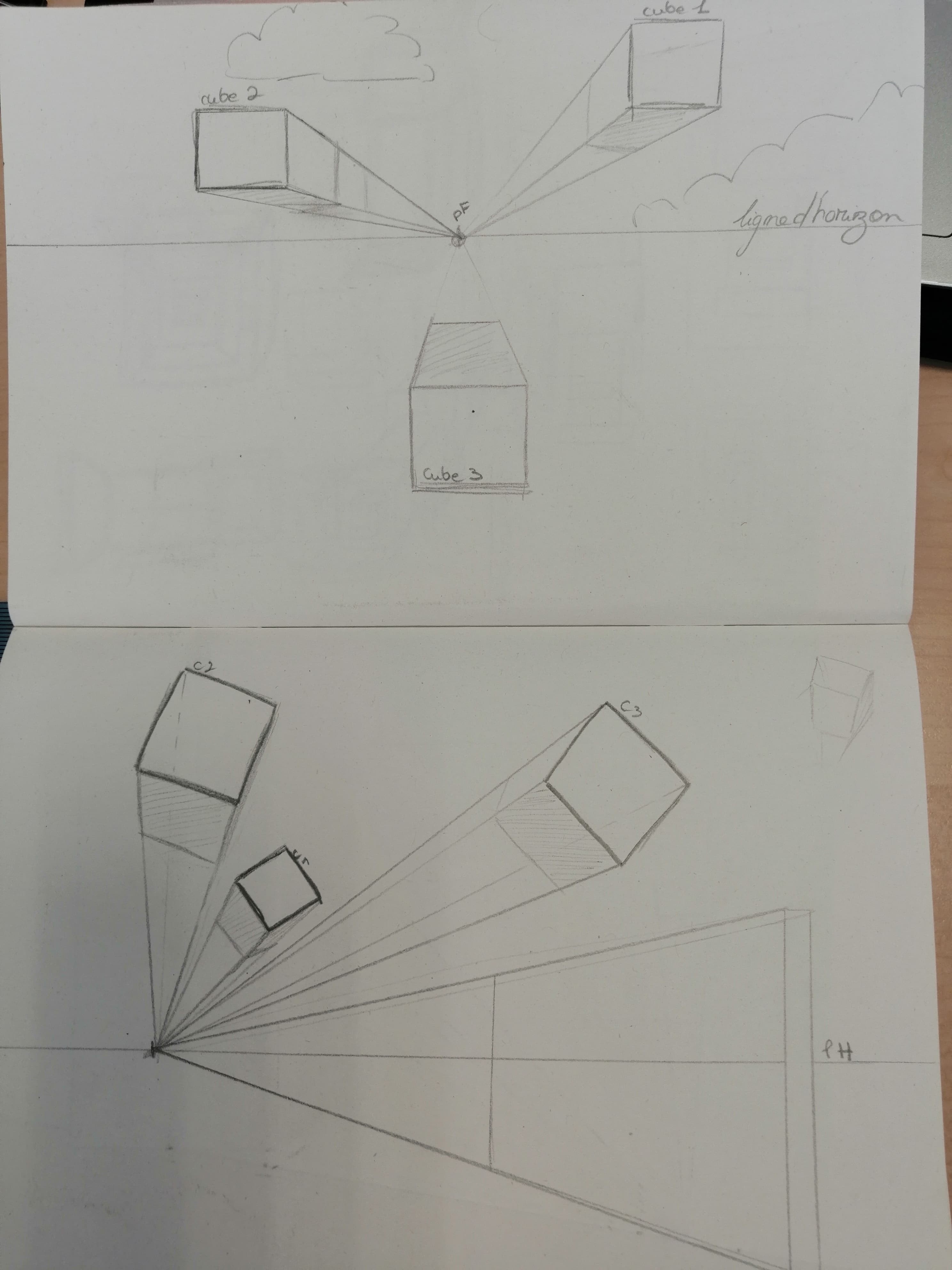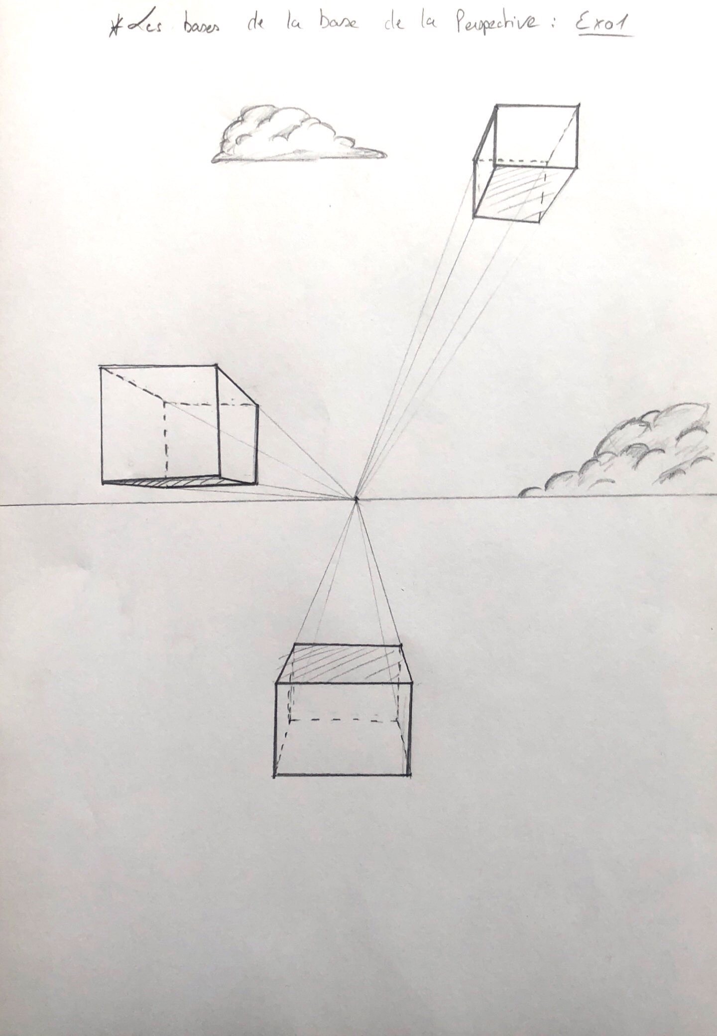 Voici mes exercices du jour. C'est dingue mais j'ai l'impression d'avoir enfin compris les règles de la perspective :O Moi qui pensait que je n'y arriverai jamais !