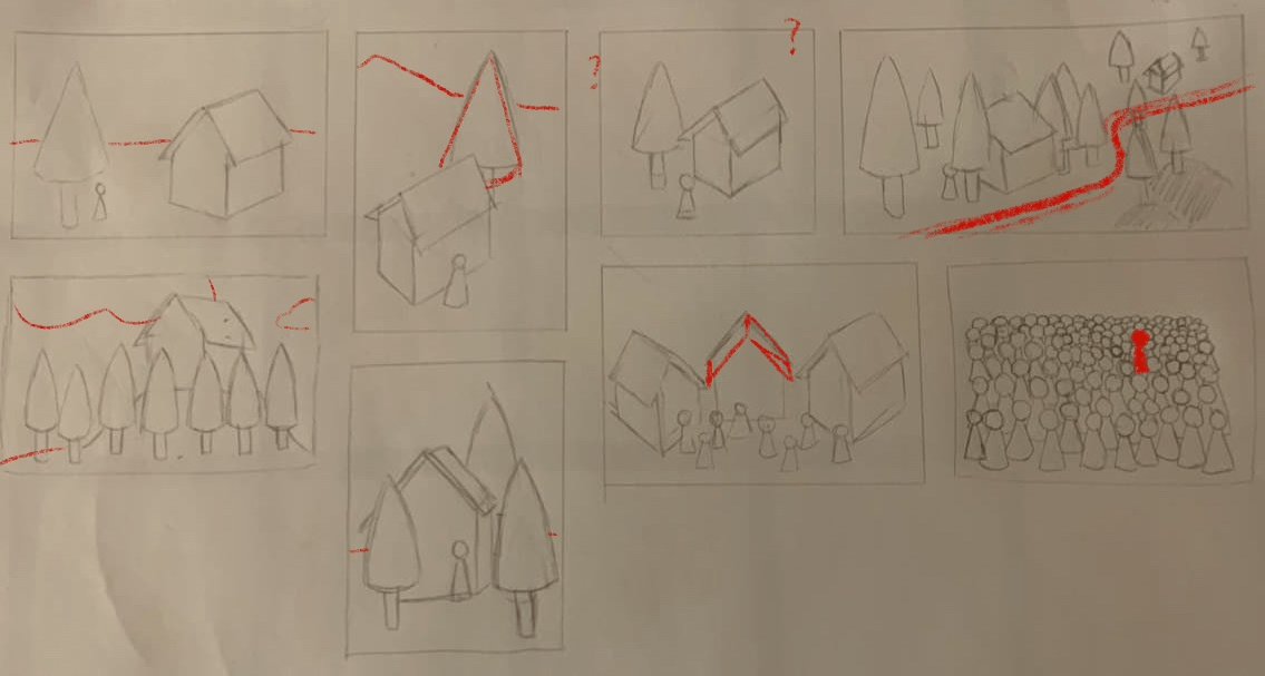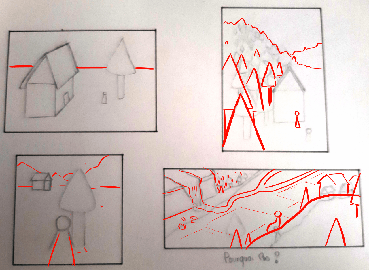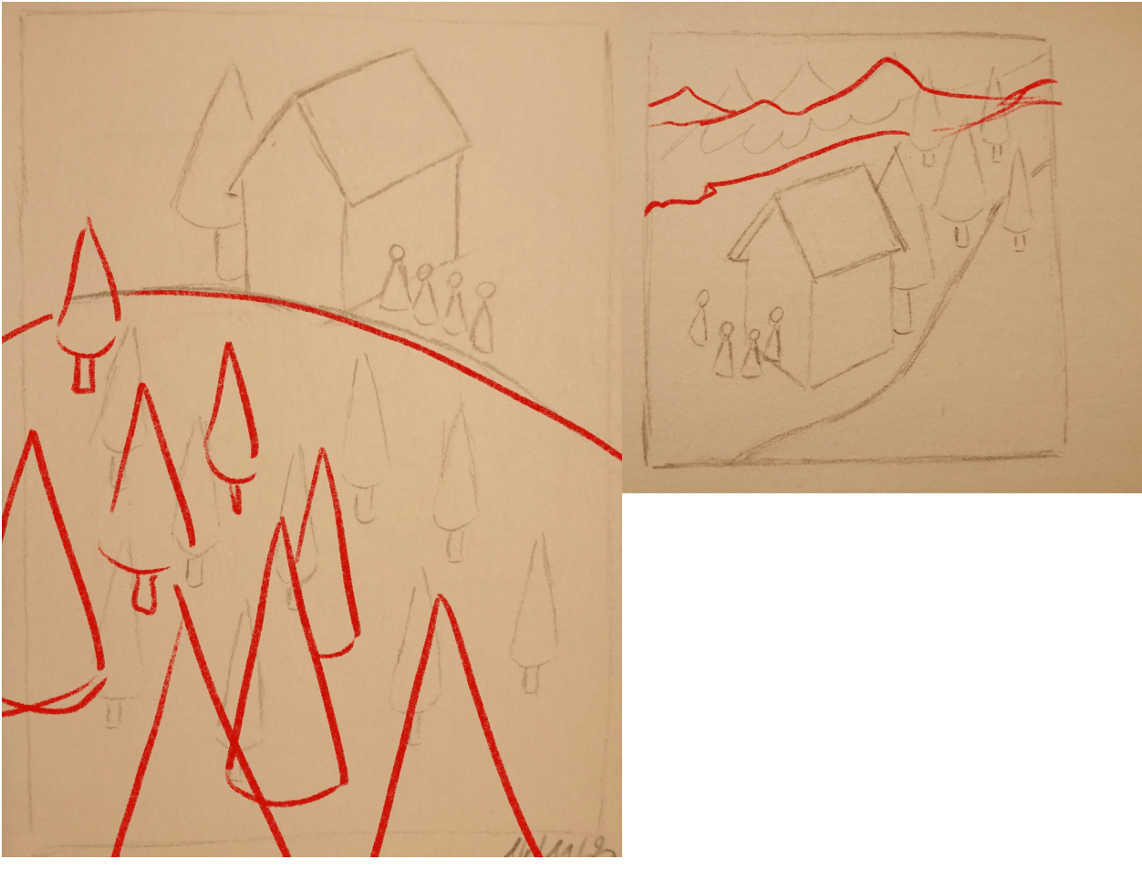 Sinon c'est pas mal, ça fonctionne, cela dit je pense que ça reste toujours assez ressemblant : tu aurais peut-être pu essayer d'autres choses, par exemple avec des changements de taille plus importants (graaande maison, petit arbre etc)