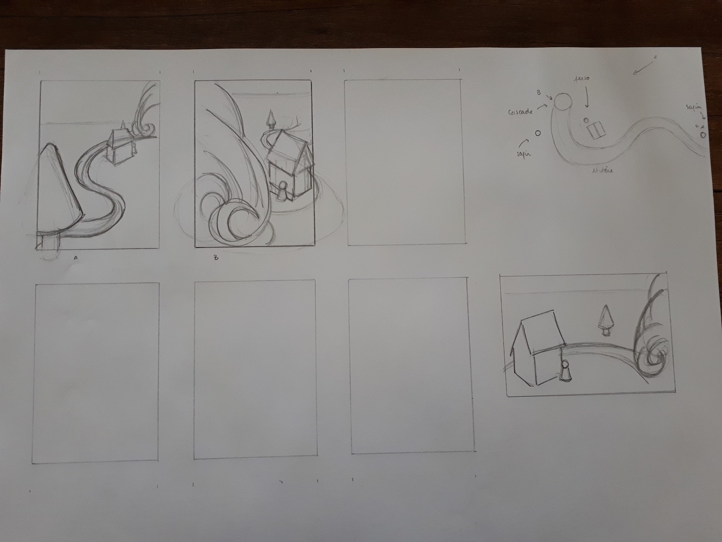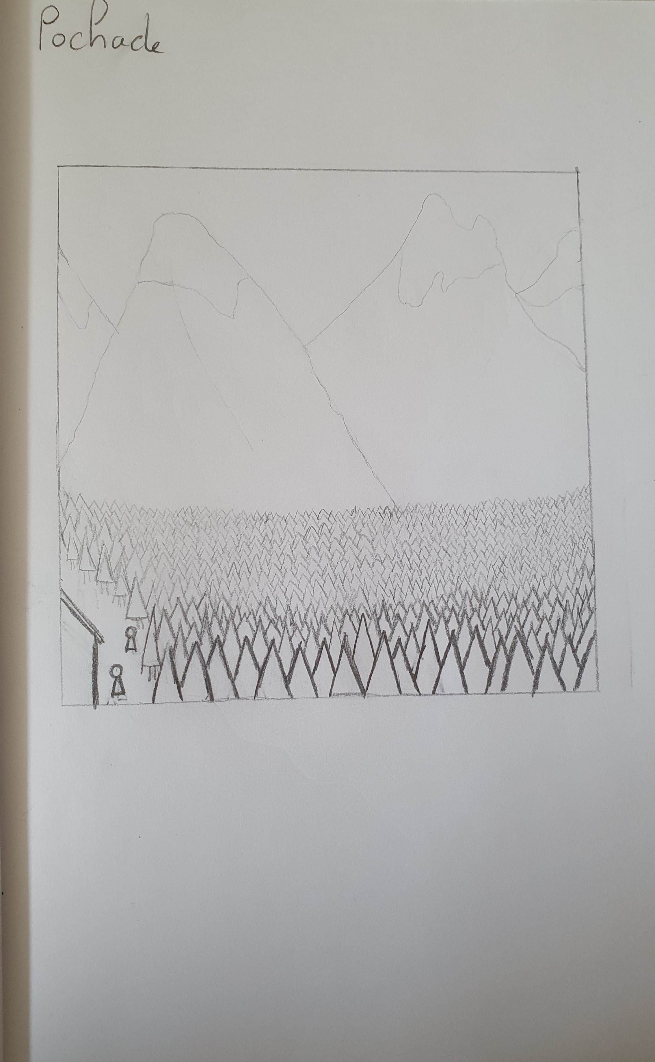 Pour l'autre correction, c'était assez bizarre d'avoir à la fois la maison vue du dessus et les montagnes en fond en même temps, alors j'ai imaginé que la maison était au bord d'un précipice , donc en hauteur, et qu'on voyait les montagnes derrière ainsi ^^