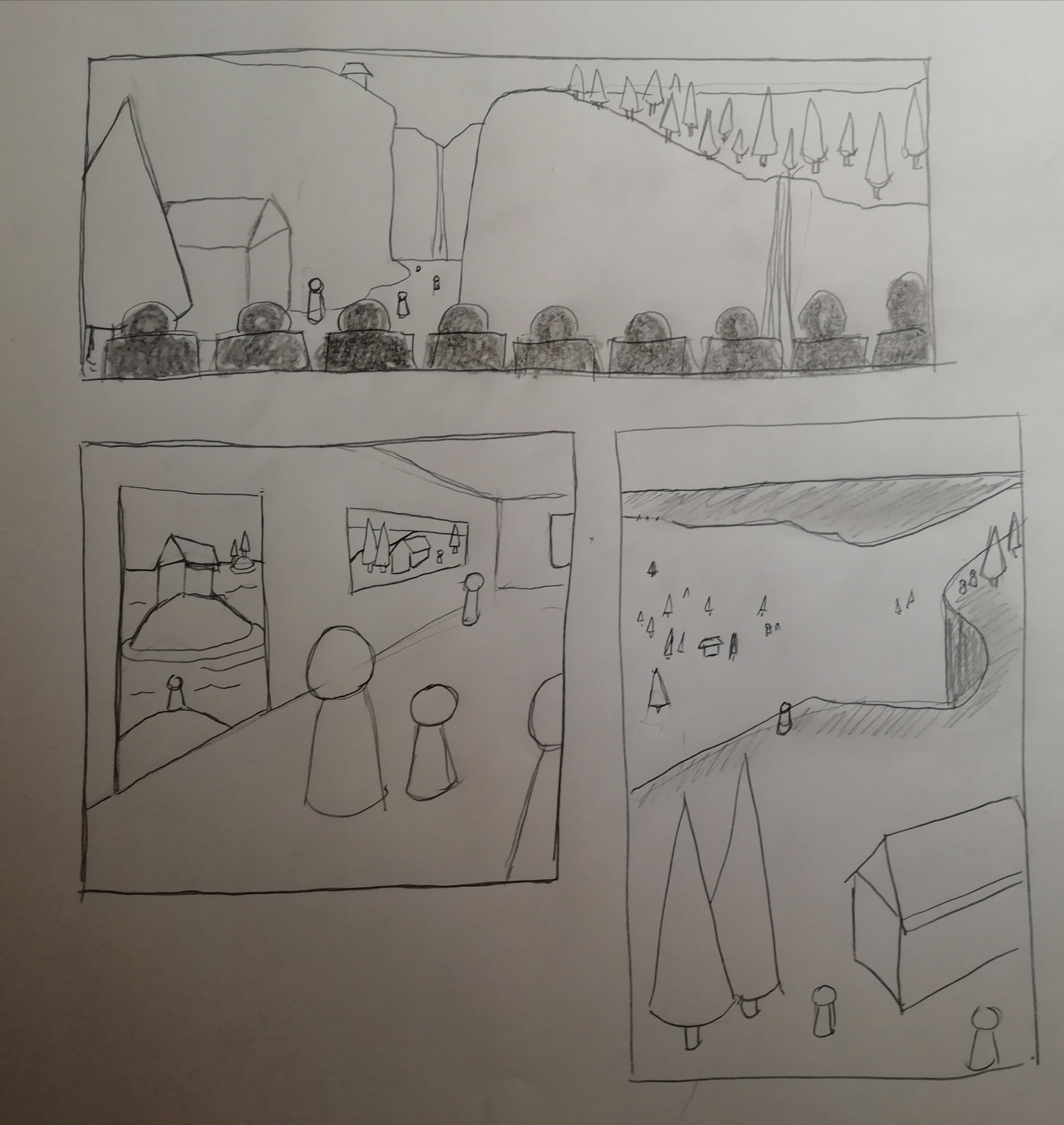 Voici mes dessins pour l'exercice de mise en scène....pas évident...mais j'adore ce cours.