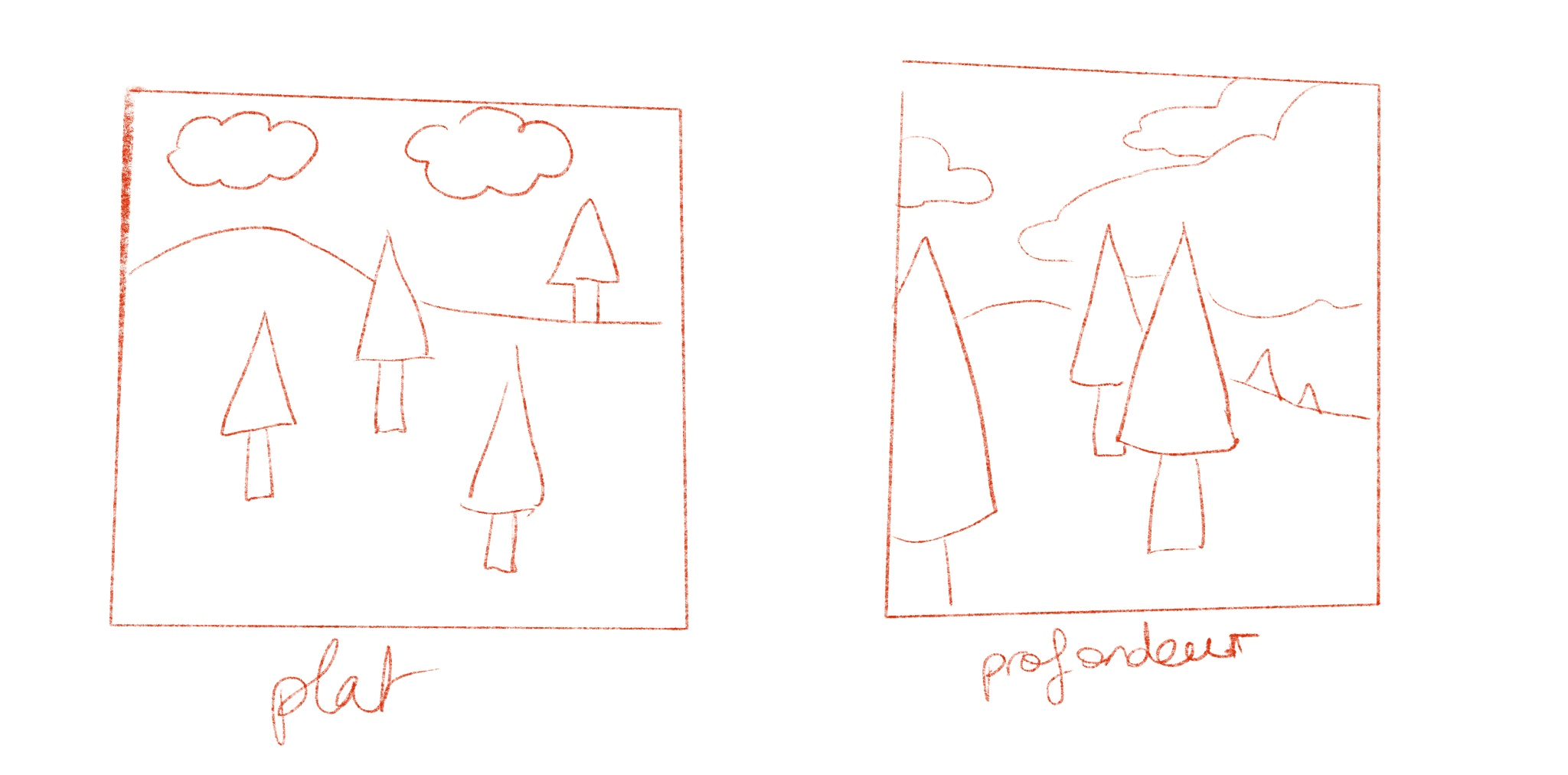 Par contre, ça manque cruellement de contexte ! Je sais que l'intitulé de l'exercice demande de se débrouiller avec des maisons, des arbres et des bonhommes mais une ligne d'horizon ne fait jamais de mal :)