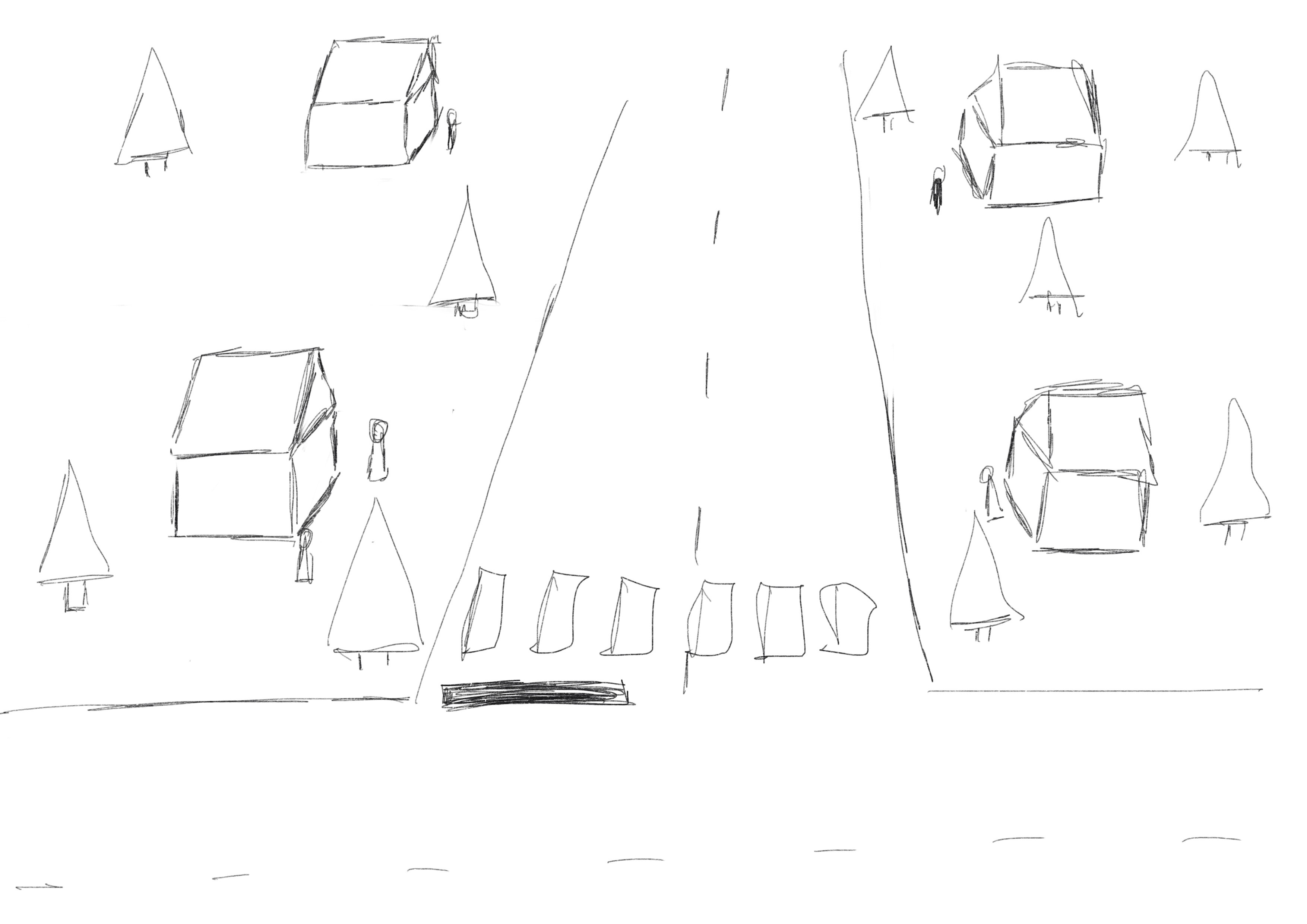 Sur ton deuxième dessin, pareil on a une vue à peu près symétrique sans trop de raison, mais c'est moins dérangeant parce que c'est moins strictement symétrique. Cela dit rien n'est vraiment mis en valeur, on ne sait pas trop où regarder.