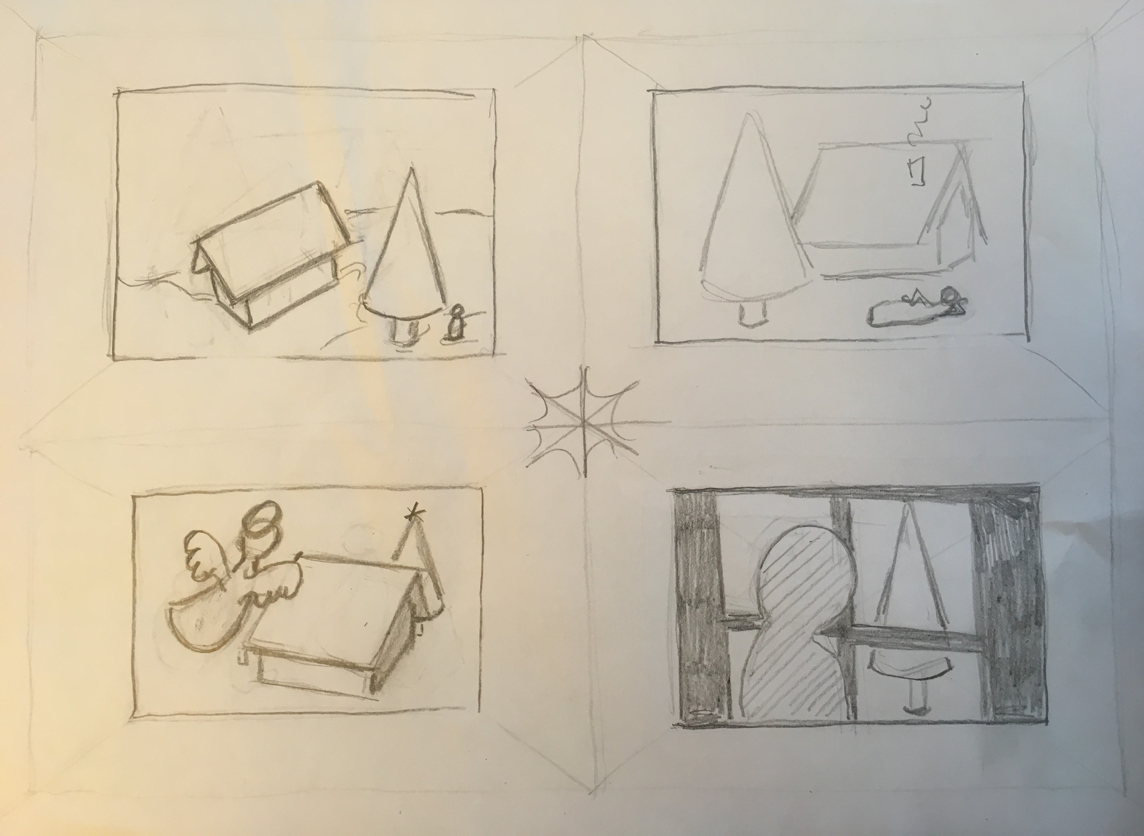 • A droite, j’ai changé un peu le dessin pour une meilleure accroche à mon sens (ça sent le sapin de Noël ...) et rajouté des valeurs (le visionnage du cours suivant m’a inspiré).