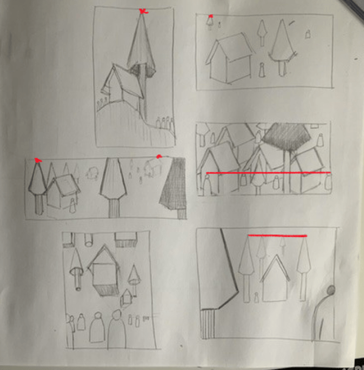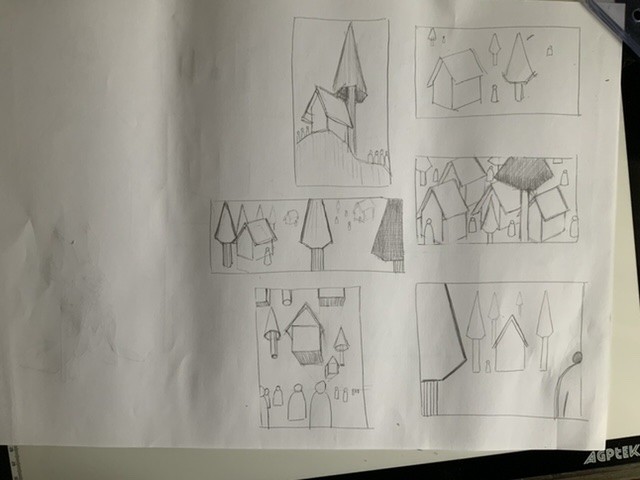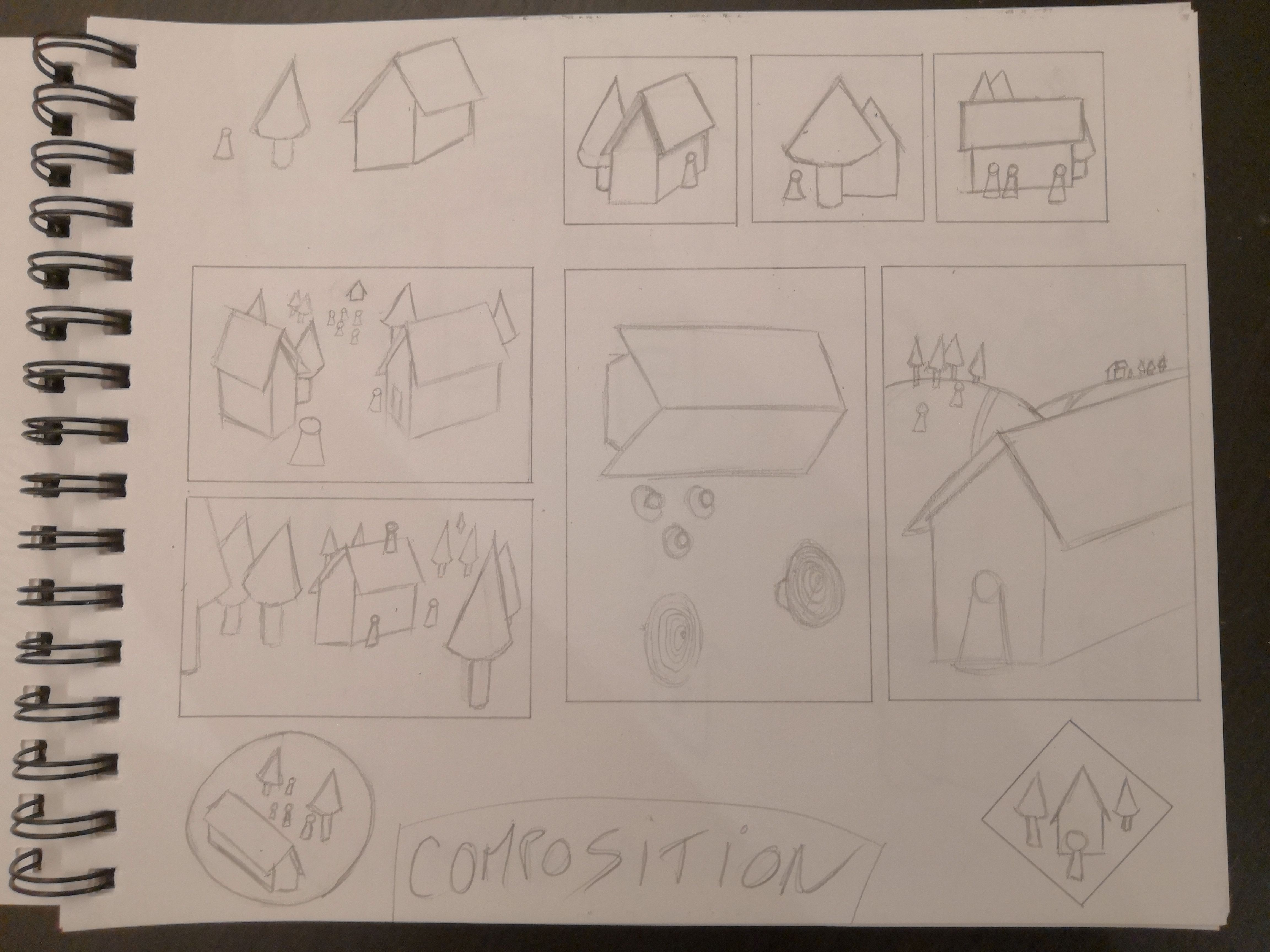 En terme de compo ça fonctionne à peu près, après je vois que tu t'es plutôt concentrée sur la forme de tes maisons que réellement la composition de l'image, ce qui est passer un poil à côté du but de l'exo.