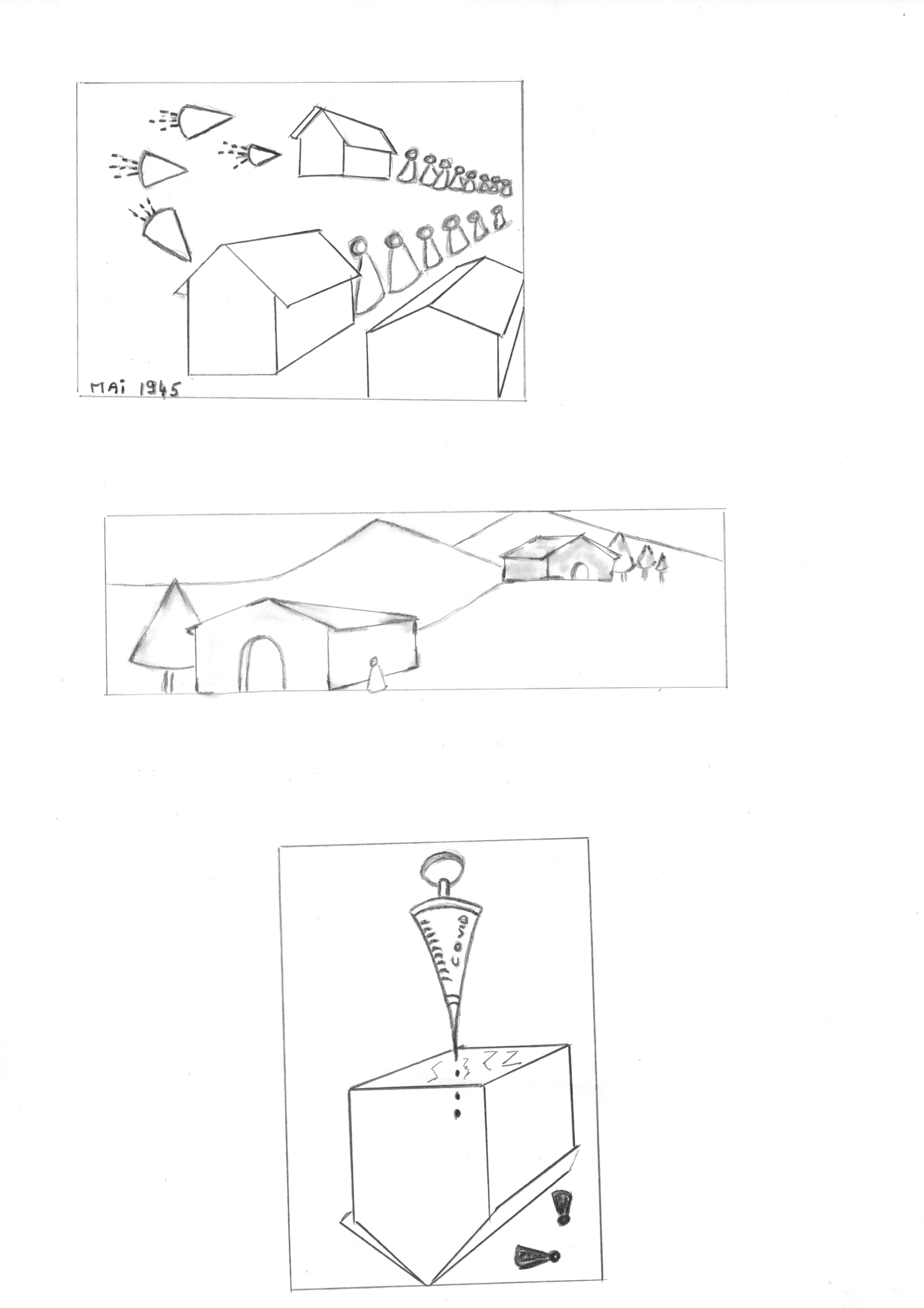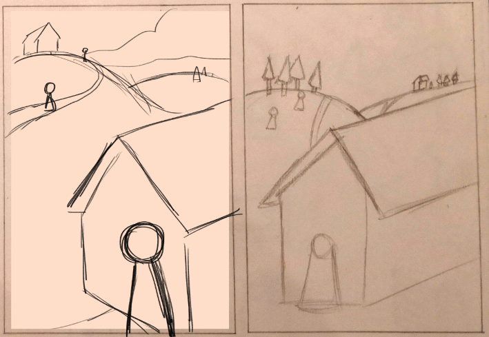 Dans le dessin central j'ai joué avec la ligne d'horizon pour rentrer dans ce cadre.