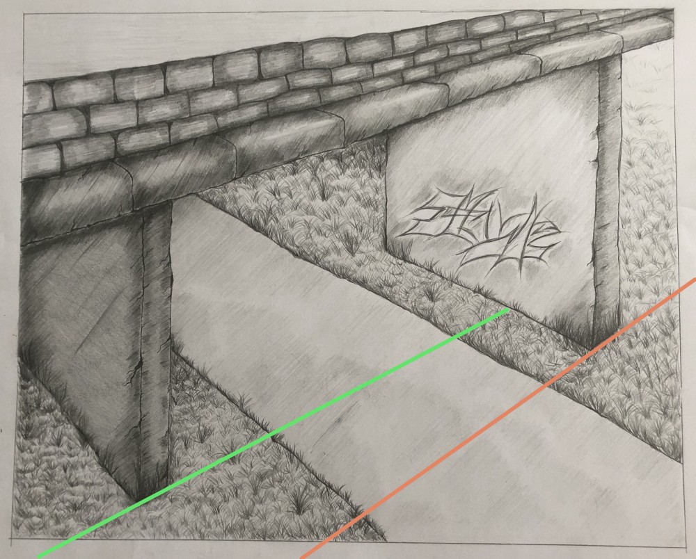 Voila donc mon dessin,j'ai suivi ce que tu as demandé et j'ai donc fais ma première non-reproduction!Je voulais travailler les perspectives et c'est en passant sous un pont que je me suis dis qu'un pont ça peut être pas mal comme idée.J'ai donc étudié tous les ponts et en fait (et en conclusion) : il n'y a pas plus ennuyant qu'un pont!