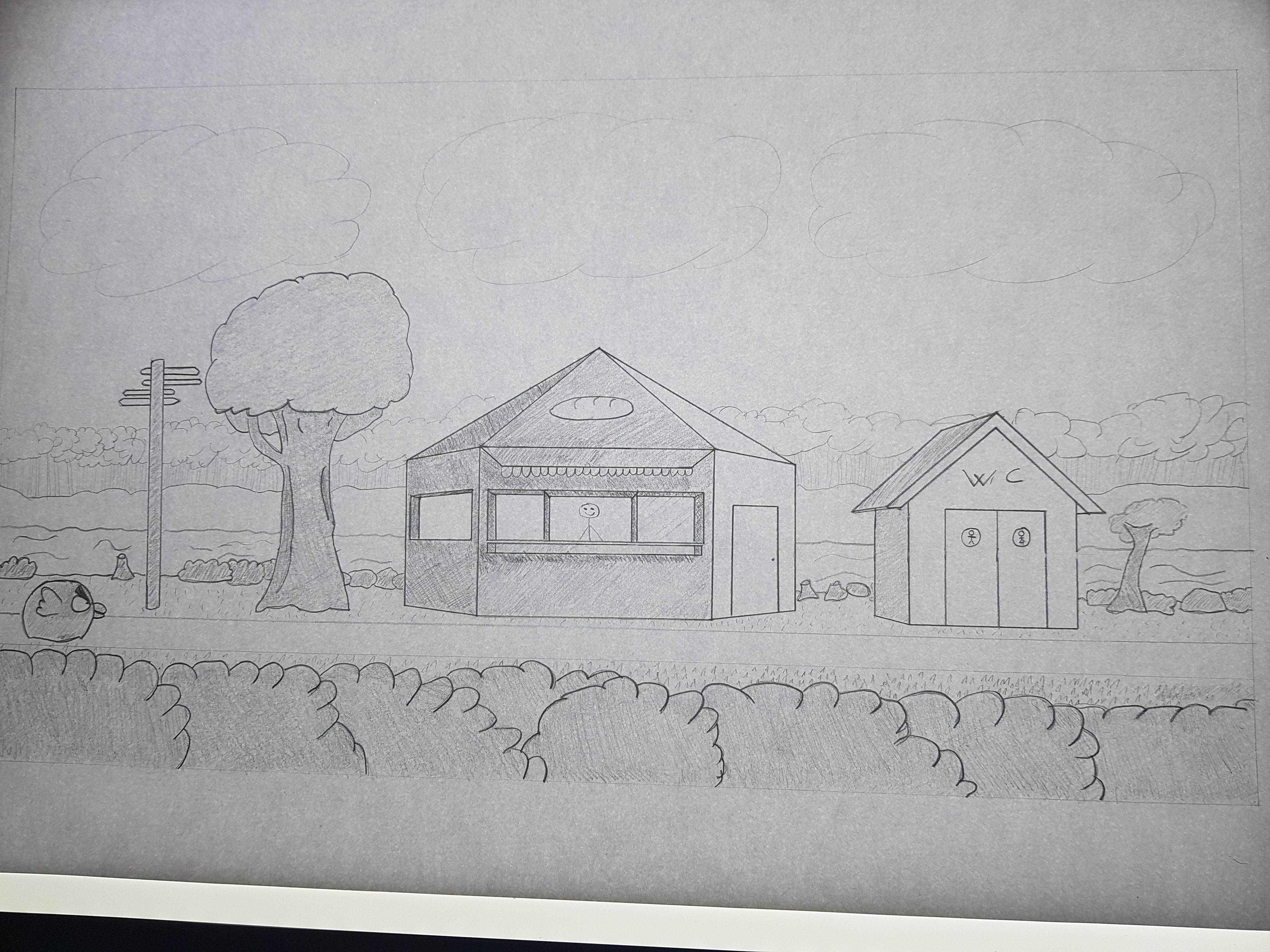 Éventuellement, en étant tatillon, je te dirais que je trouve un peu bizarre le fait que la maison ait plus de valeurs de traits que le sol sur lequel elle est posée alors qu'ils sont théoriquement au même plan de l'image... Mais cela ne gêne pas pour la lisibilité. Donc rien de dramatique.