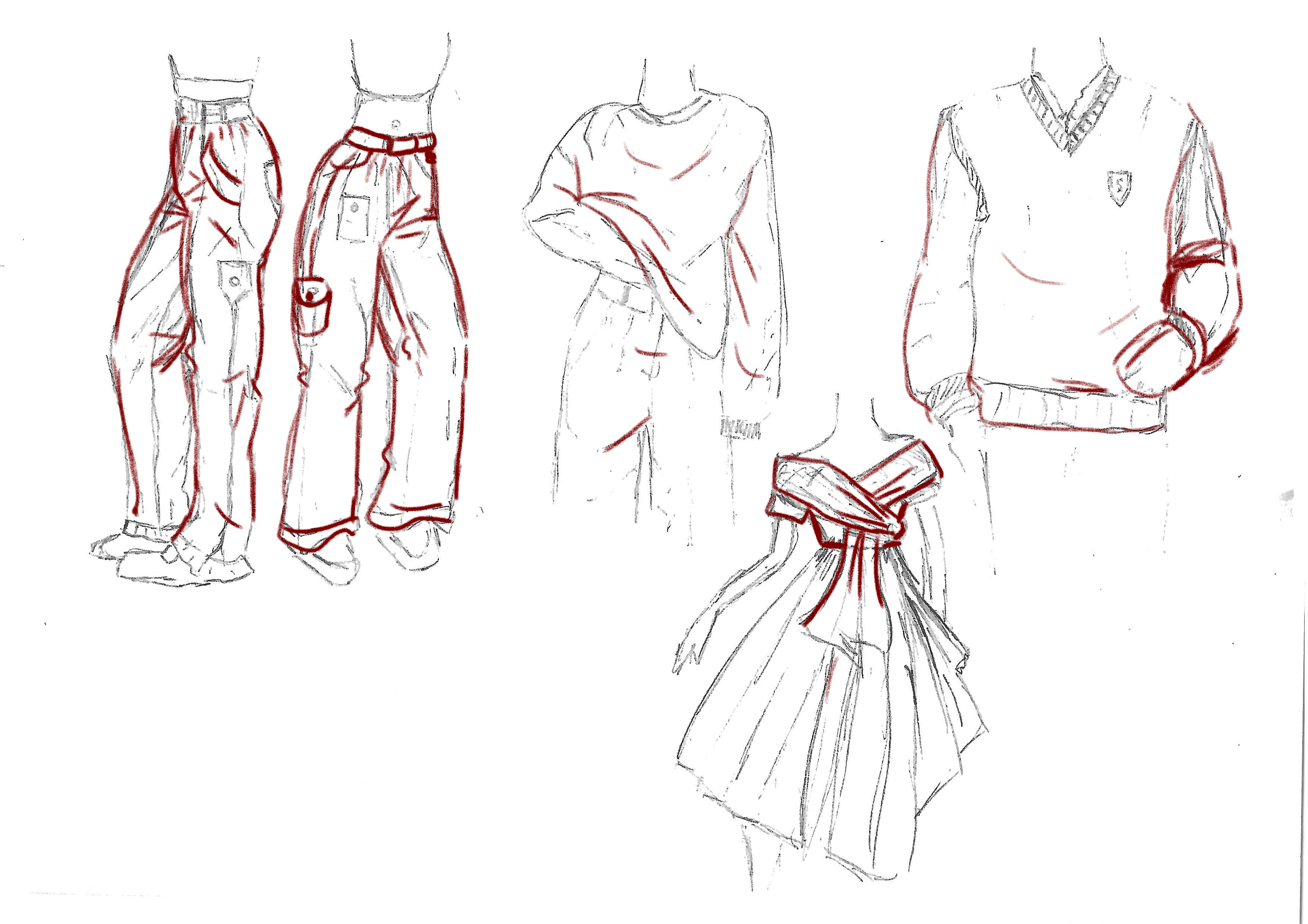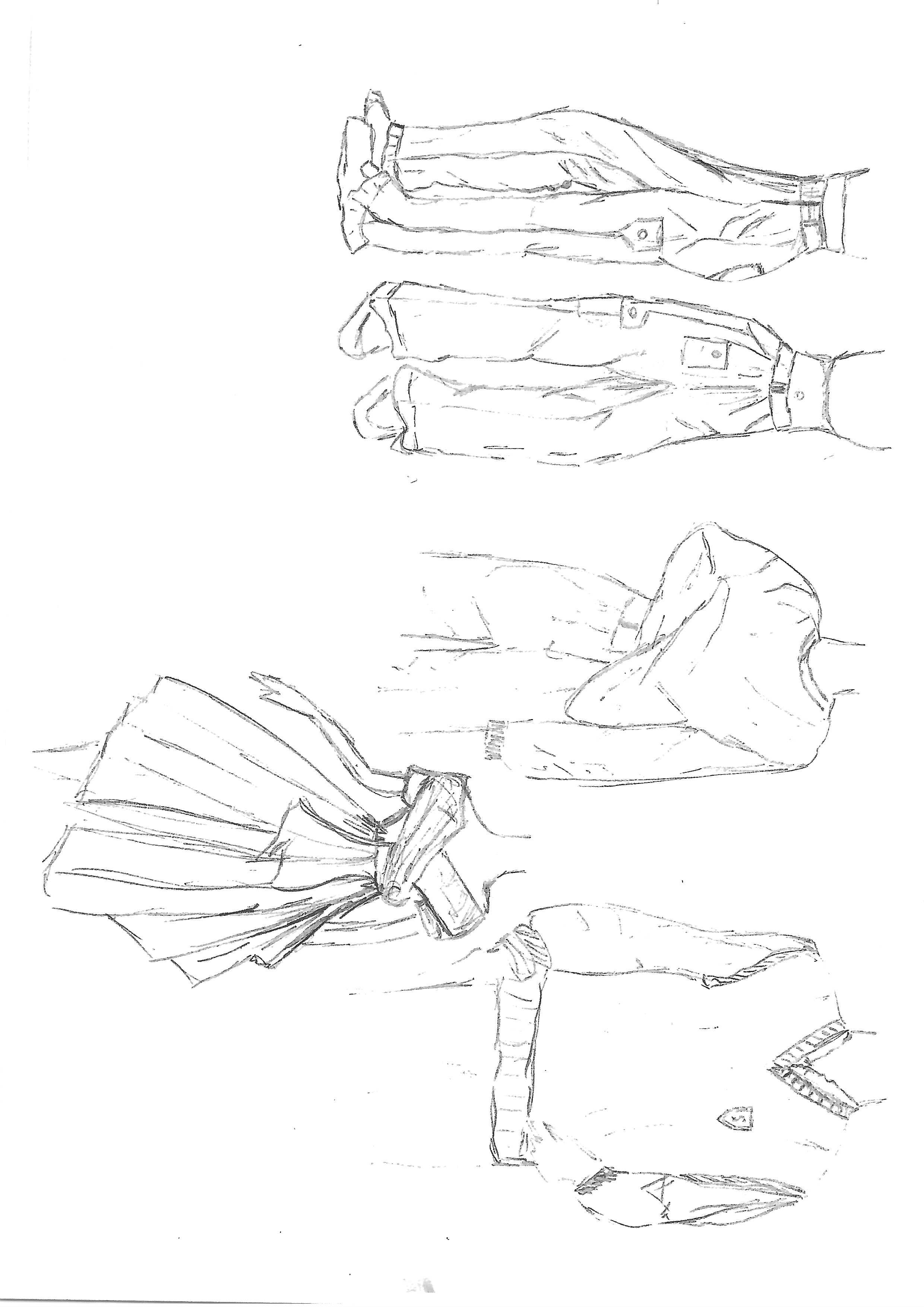 Super toutes ces études de vêtements! Essaie de trouver le bon compromis entre les plis à accentuer et mettre en avant, et les nombreux petits plis inutiles à représenter et à enlever pour alléger ton dessin. C'est le même principe que pour les rides et plis du visage, si tu veux trop en mettre, un personnage jeune aura l'air soudainement trop vieux. Il faut donc simplifier et enlever du détail inutile. :)