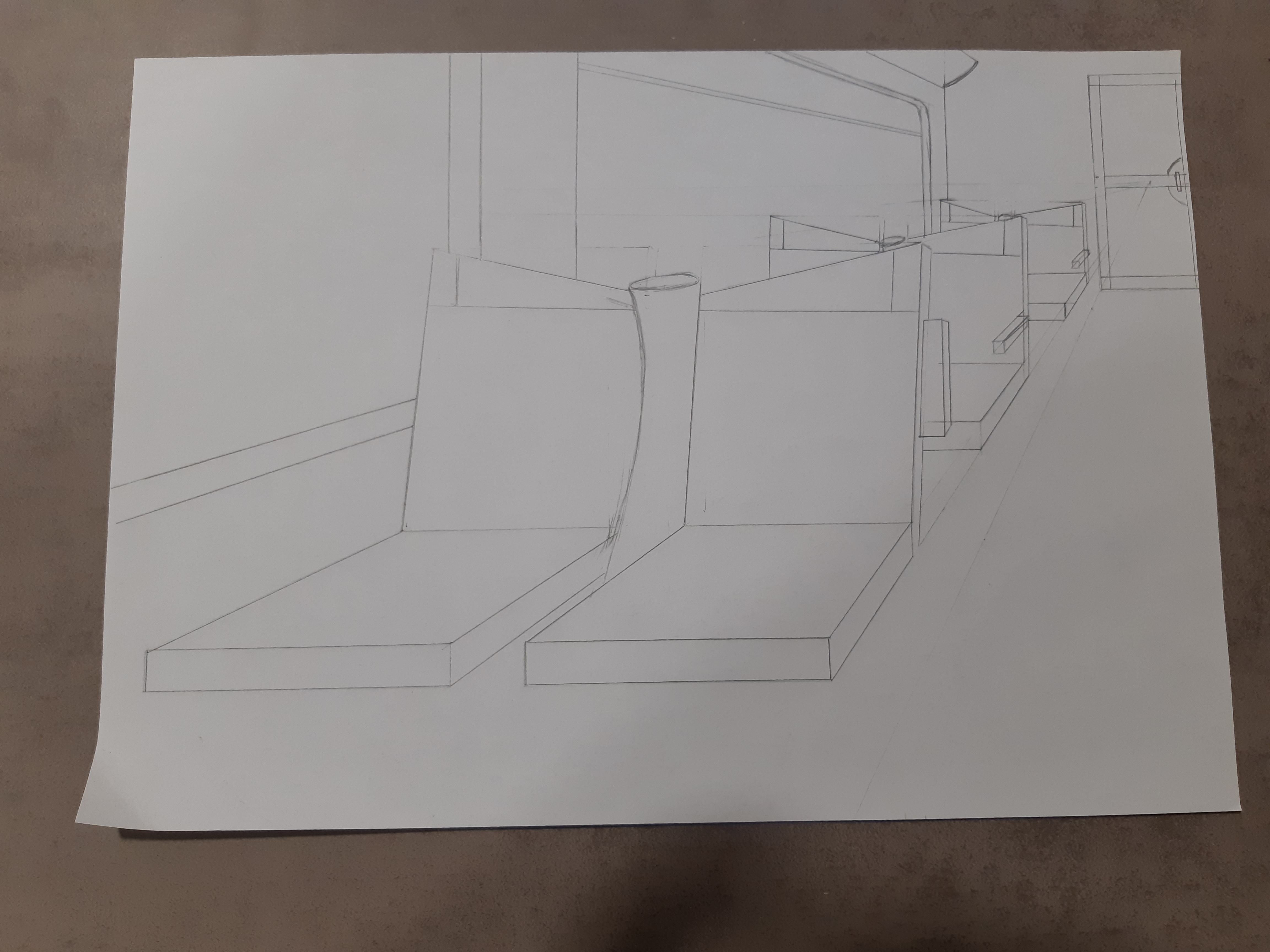 Tes études du sujets sont très bien. Bon les téléphones ne devaient pas être les plus difficiles à étudier (quoique...), pour les siéges du compartiment tu n'as pas choisi le design le plus simple, mais c'est cool, tu t'en es bien sorti