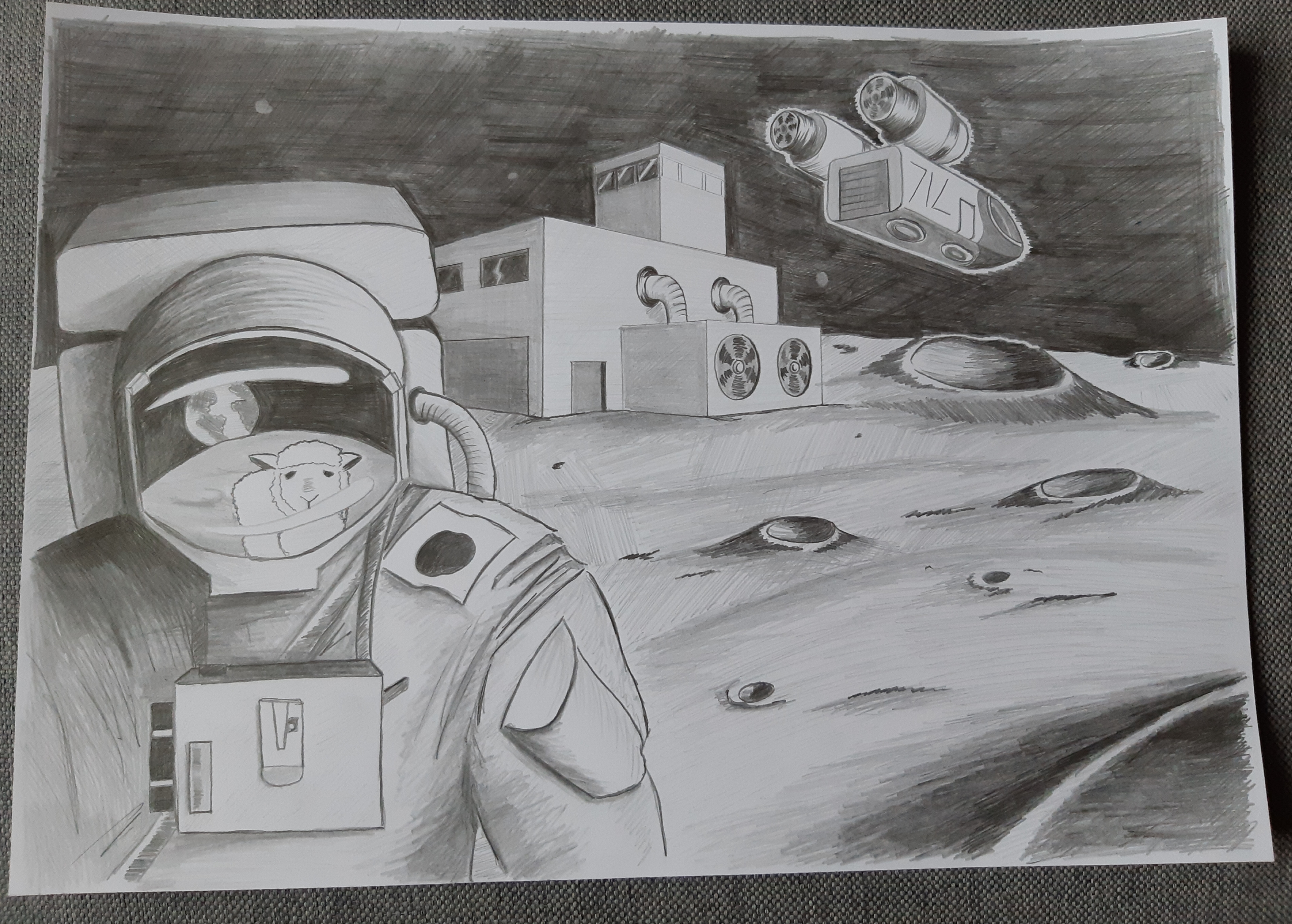 Le résultat est assez réussi je trouve, même si on voit que tu ne t'es pas trop attardé sur le personnage du premier plan (il lui manque quelques détails, surtout au niveau du bord de la feuille...). Le décor ( batiment et navette) sont cool mais un peu trop rigide. Le côté "trait à la règle" enlève du naturel à l'image.