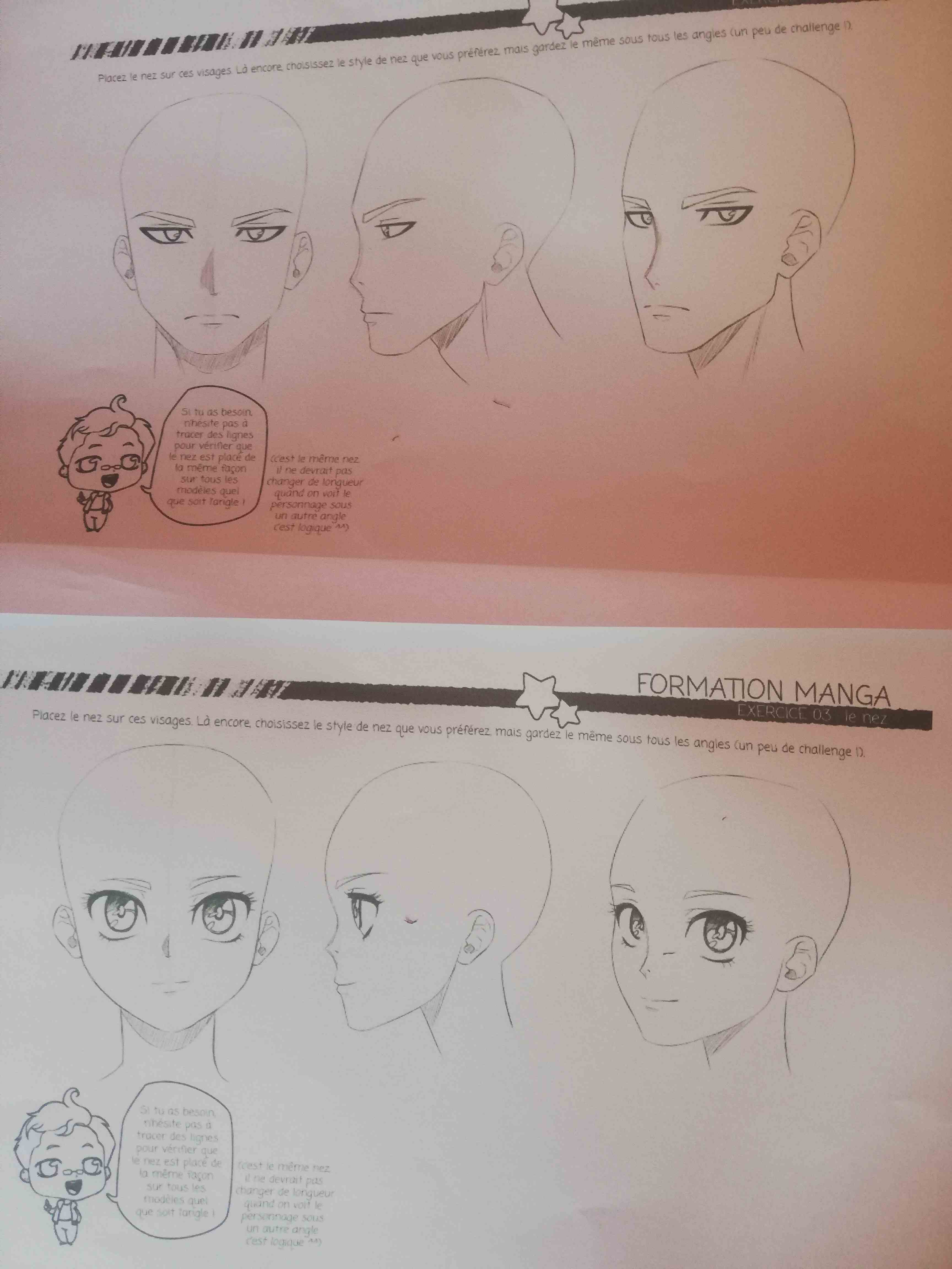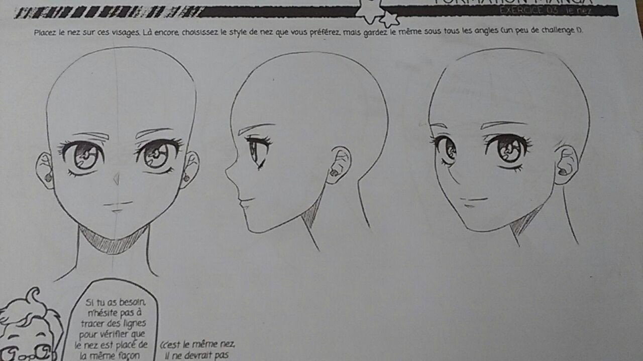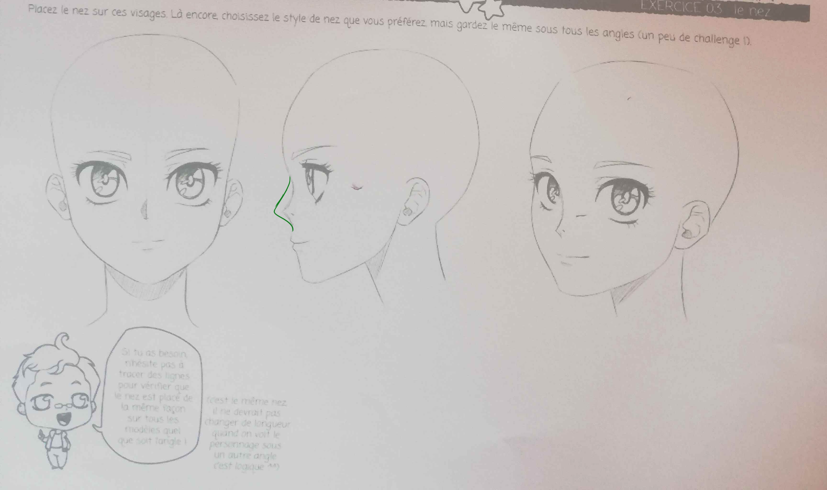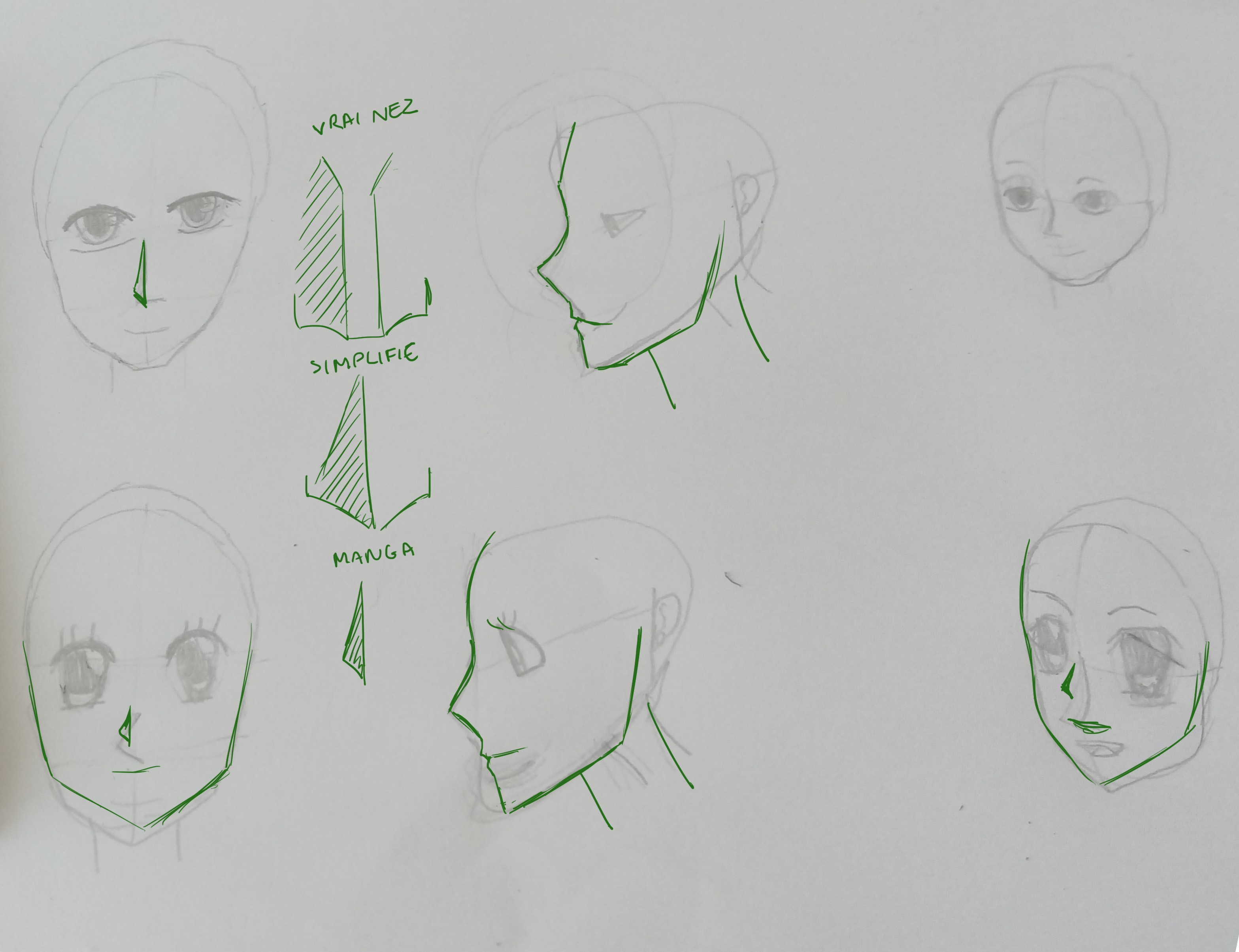 En fait, même le nez de face ne va pas. Souviens-toi : le nez est très discret sur les visages mangas. Ceux que tu as fait sont au contraire très grands et très présents. Du coup ça ne fonctionne pas.