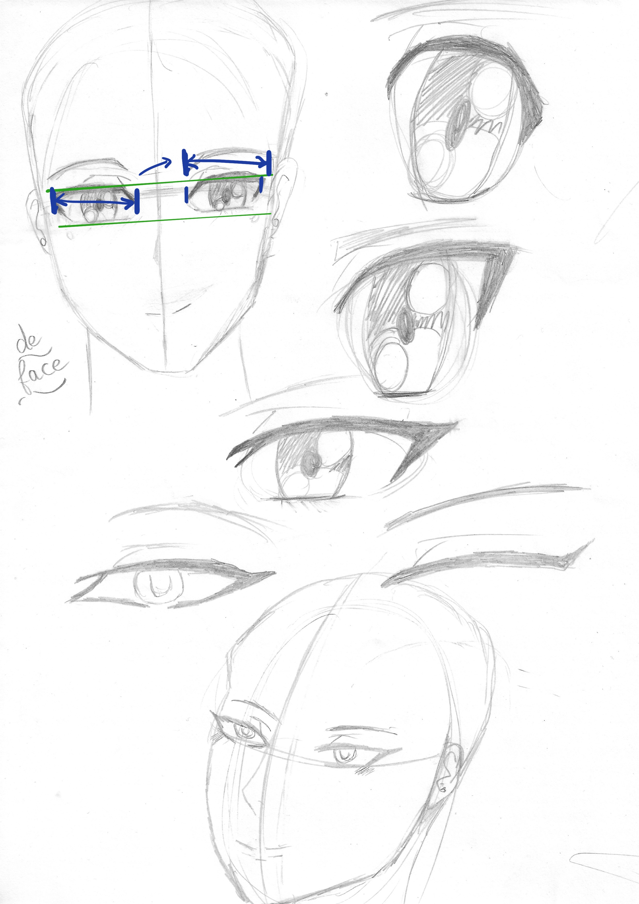 Voici mes travaux pour les yeux, j'ai trouvé les yeux masculins plus difficiles.
