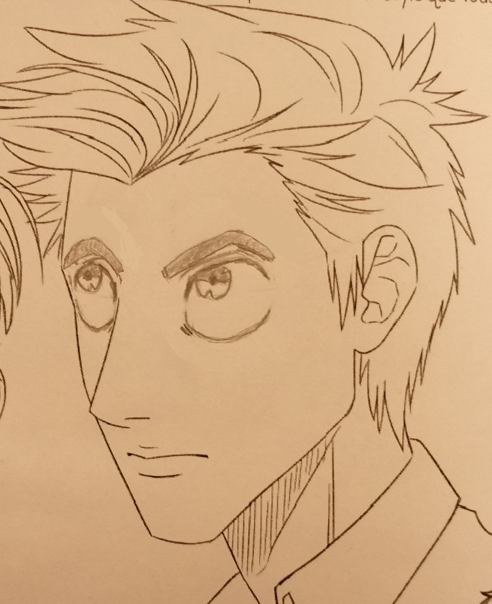 Te adjunto una corrección para el dibujo de arriba donde moví los ojos y las cejas hacia abajo para reemplazarlos correctamente, también reduje la ceja hacia la izquierda que literalmente llegó en el medio de la nariz ^^