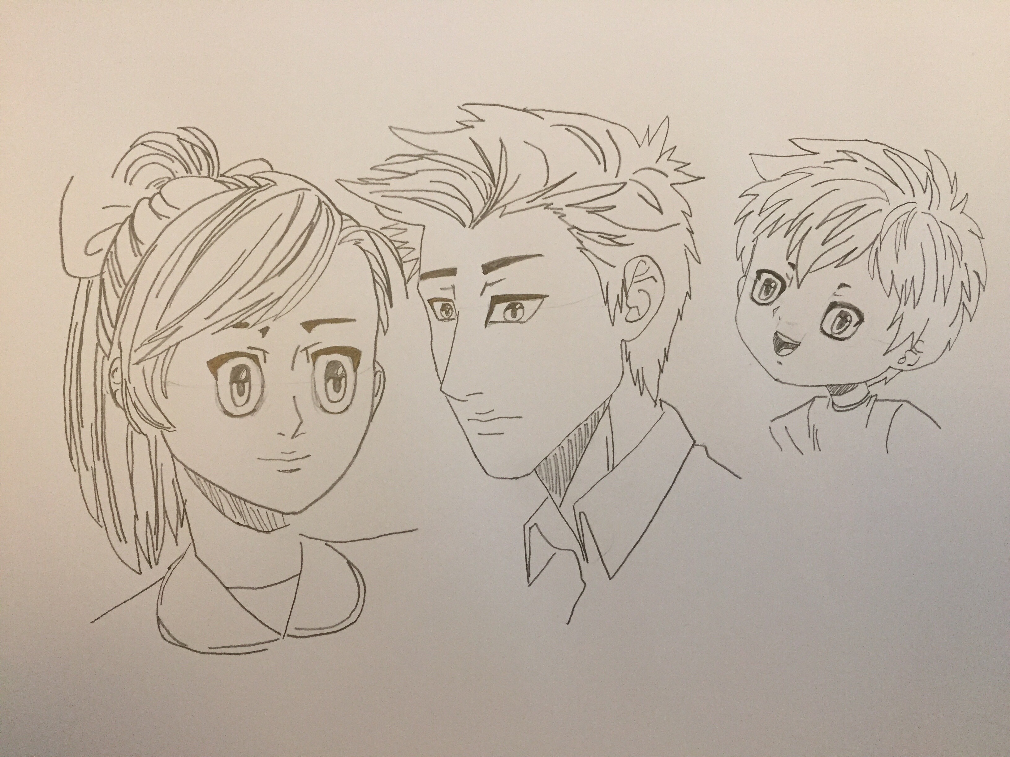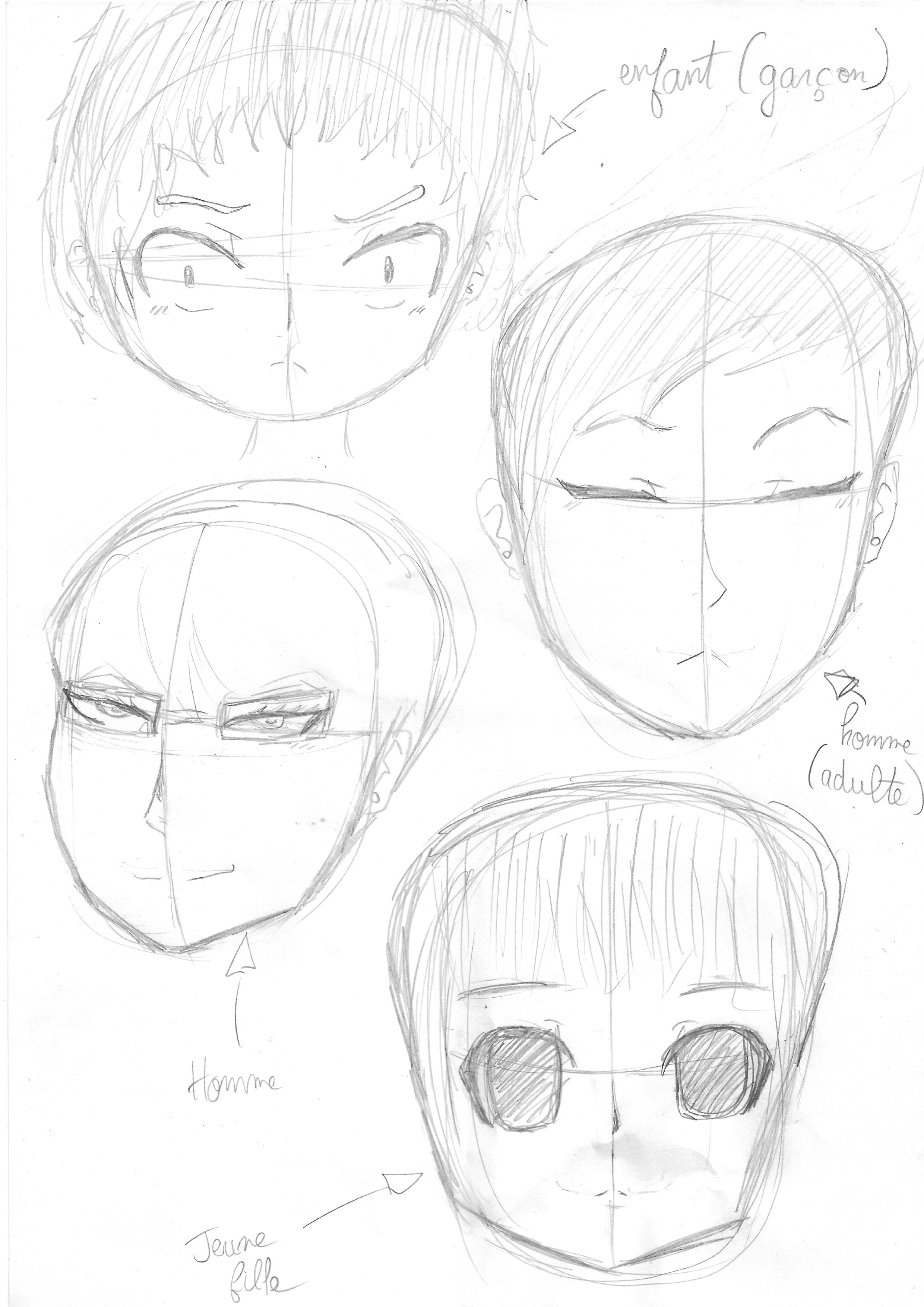 J'aime beaucoup la première version féminine. Le yeux sont placés un poil bas, mais ça fonctionne hyper bien avec un regard étiré comme ça. L'enfant est cool aussi.