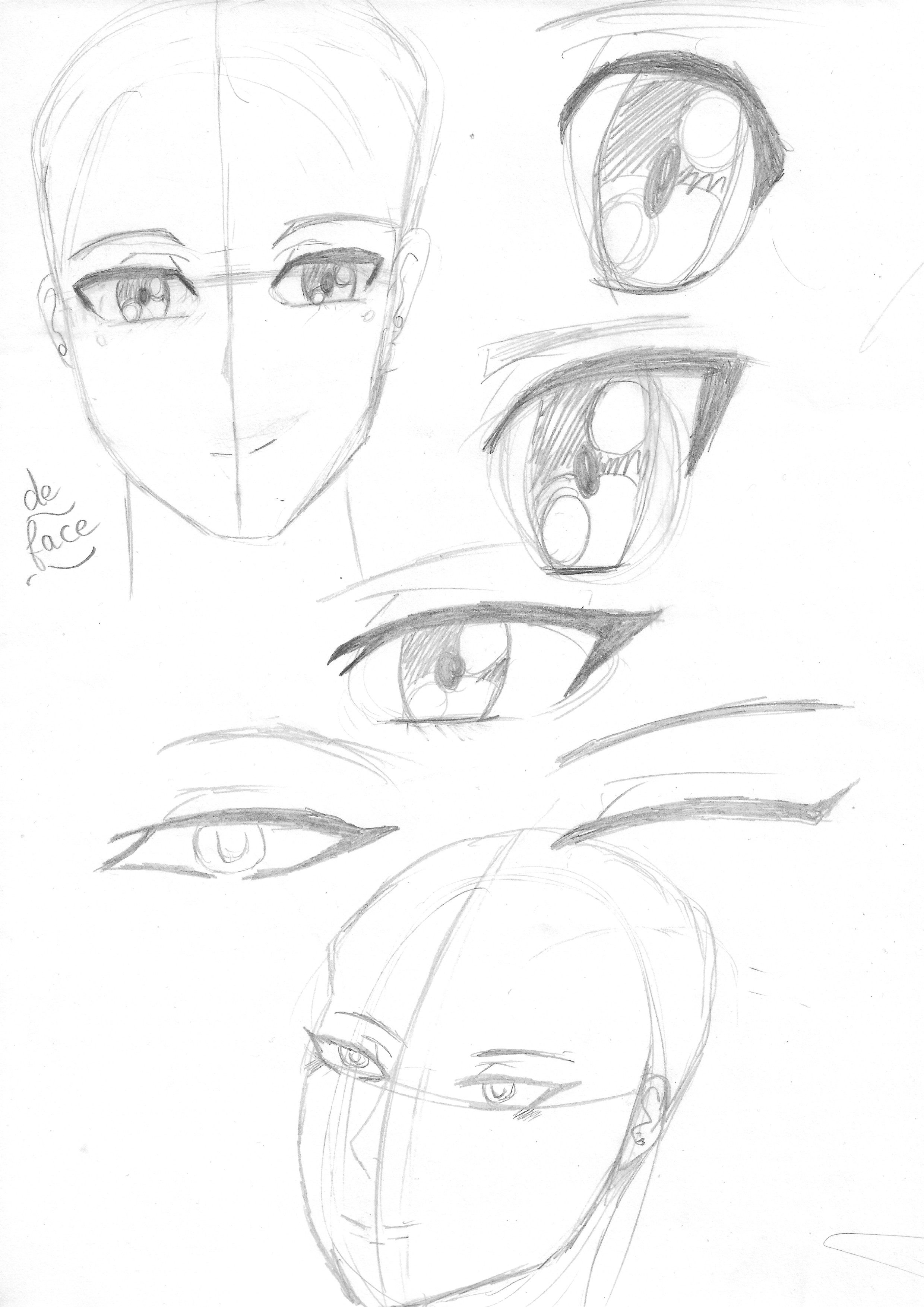 > De 3/4 encore, fais attention à ce que l'oeil ne soit pas "coupé" par le bord du visage, je te joins une mini correction rapide sur ce point juste en-dessous ;p