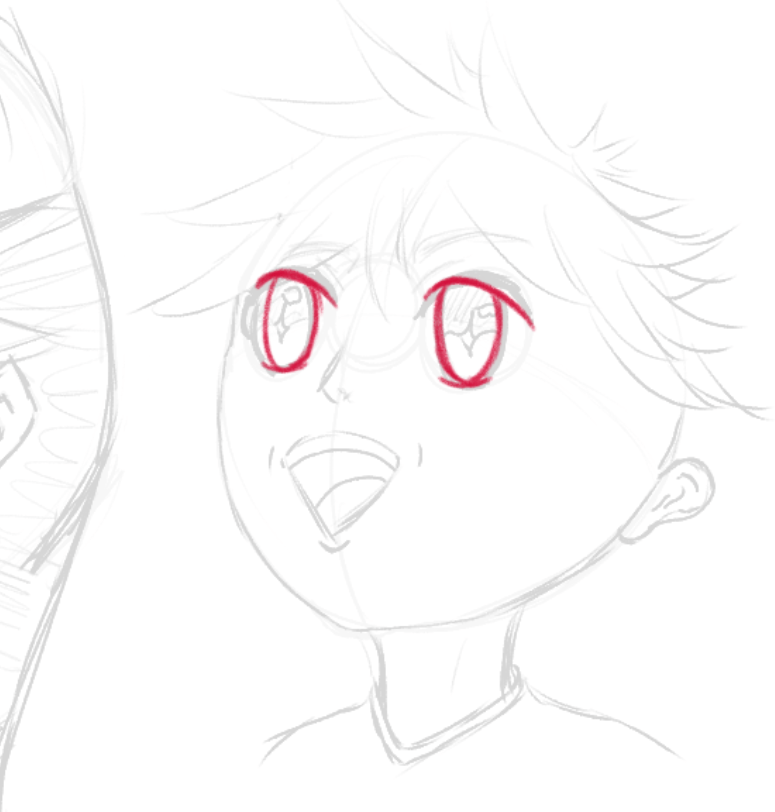 El niño, por su parte, tiene ojos que parecen cuentas. Esto puede ser un sesgo, sin embargo, aquí queremos que el personaje tenga ojos de manga "clásicos".