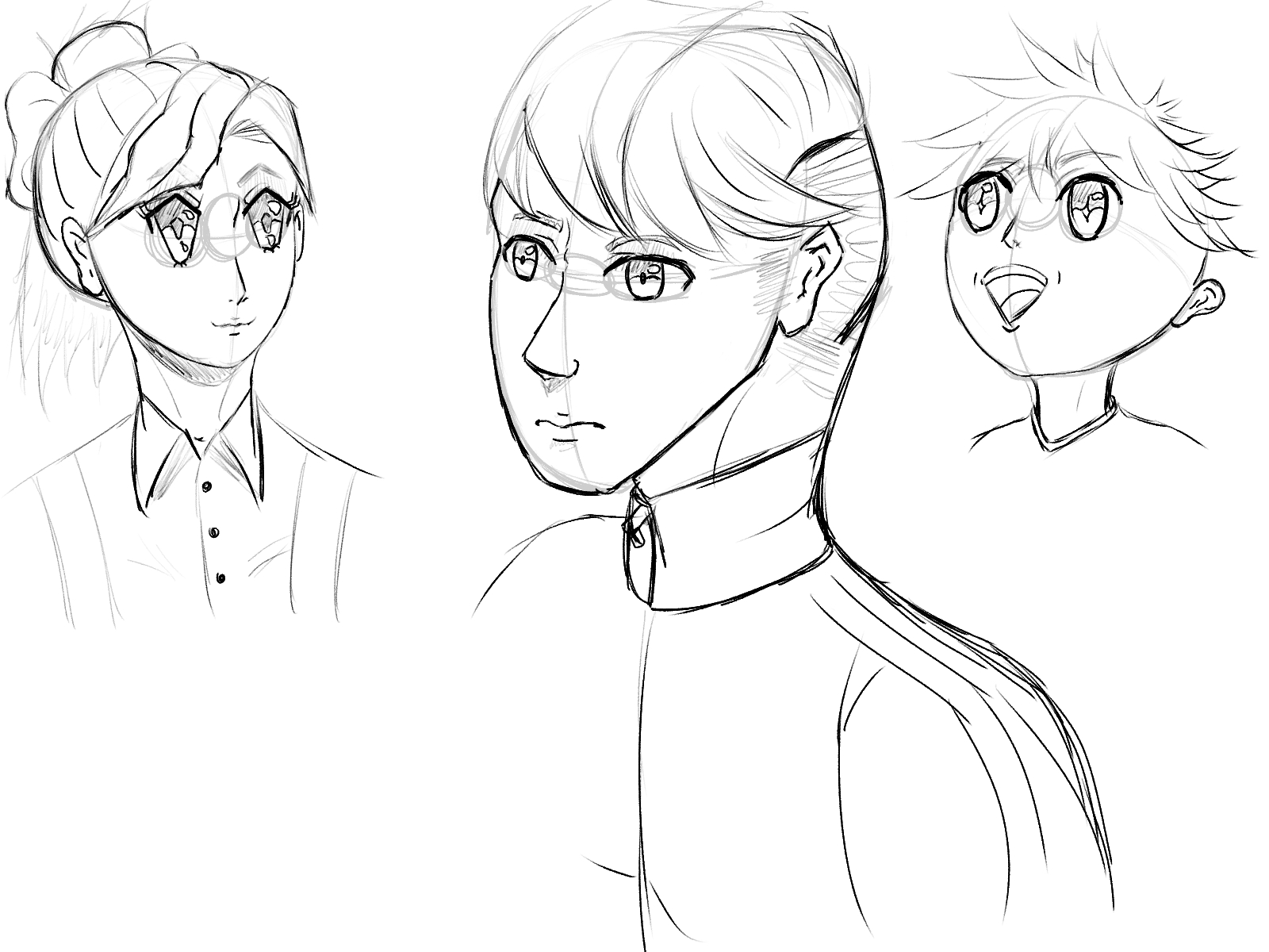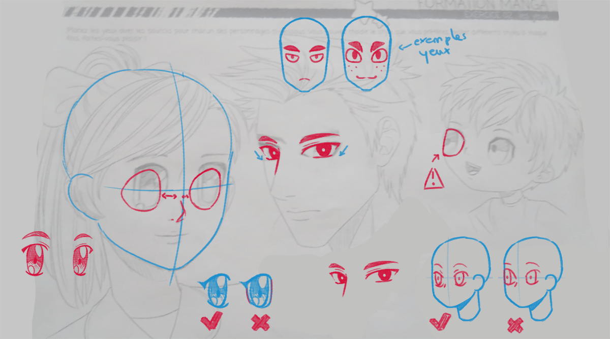 Par contre, une erreur qui revient souvent est le fait que les yeux de tes personnages sont trop proches l’un de l’autre.
