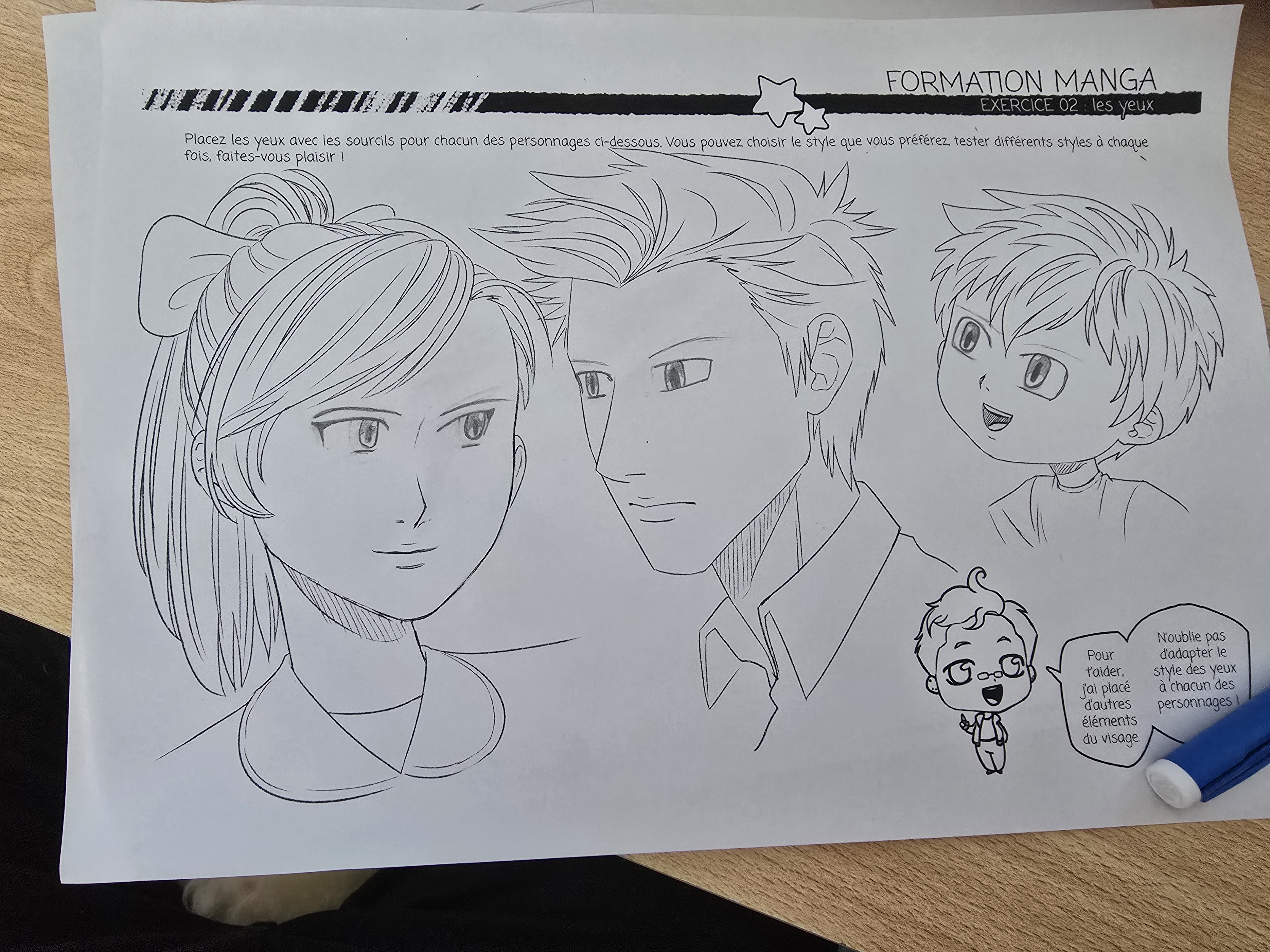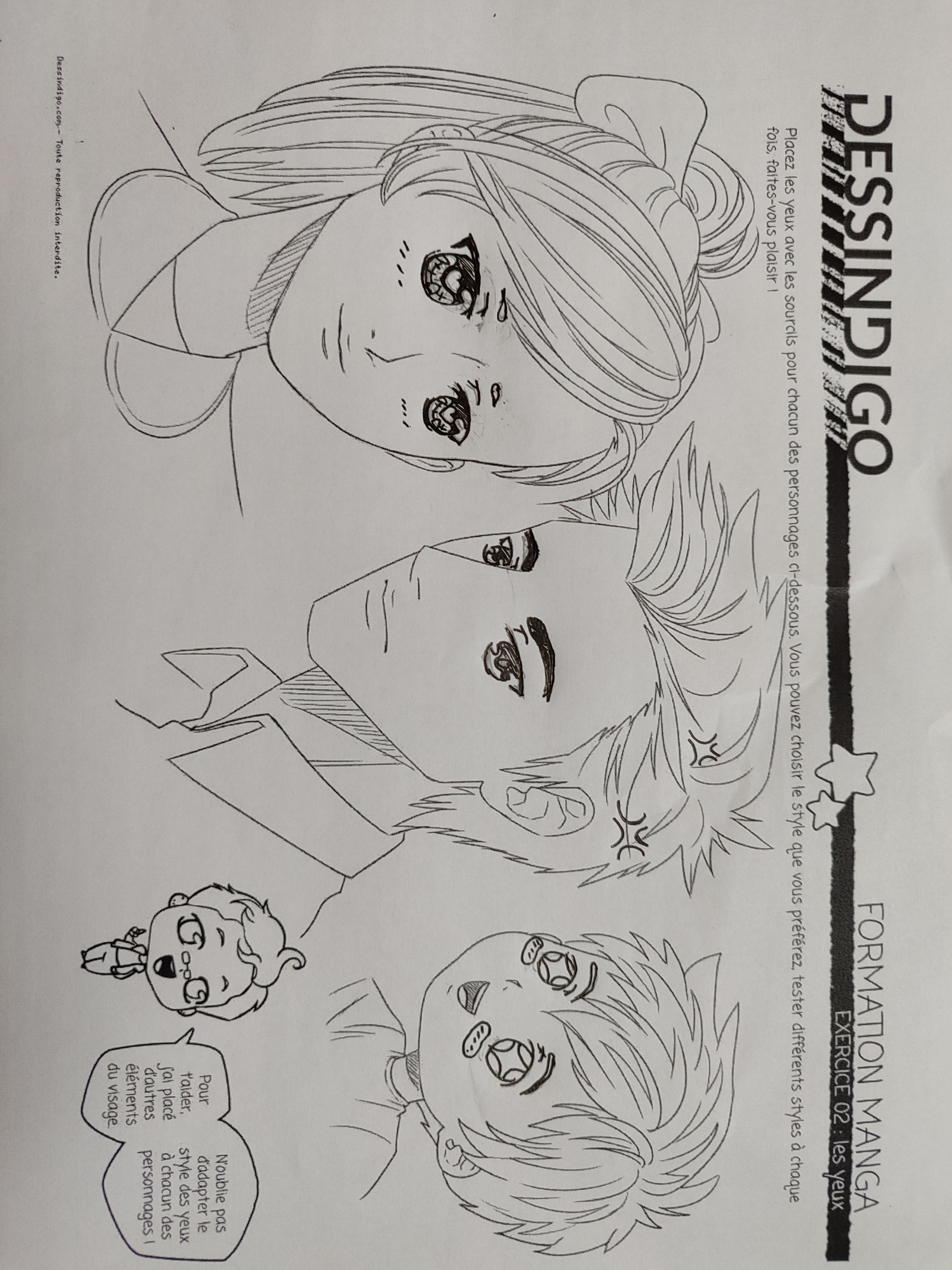 Es bastante bueno 👍 Tenga cuidado de mantener la coherencia entre los dos ojos cada vez, por ejemplo, en su carácter femenino, el ojo derecho está demasiado "aplastado" y se vuelve a montar, en su carácter masculino son los alumnos que no tienen la misma forma y falsa la mirada. También no dude en espesar un poco las cejas de los personajes masculinos para acentuar sus emociones. Has tenido éxito muy bien, tiene un gran aire de desconfianza aha