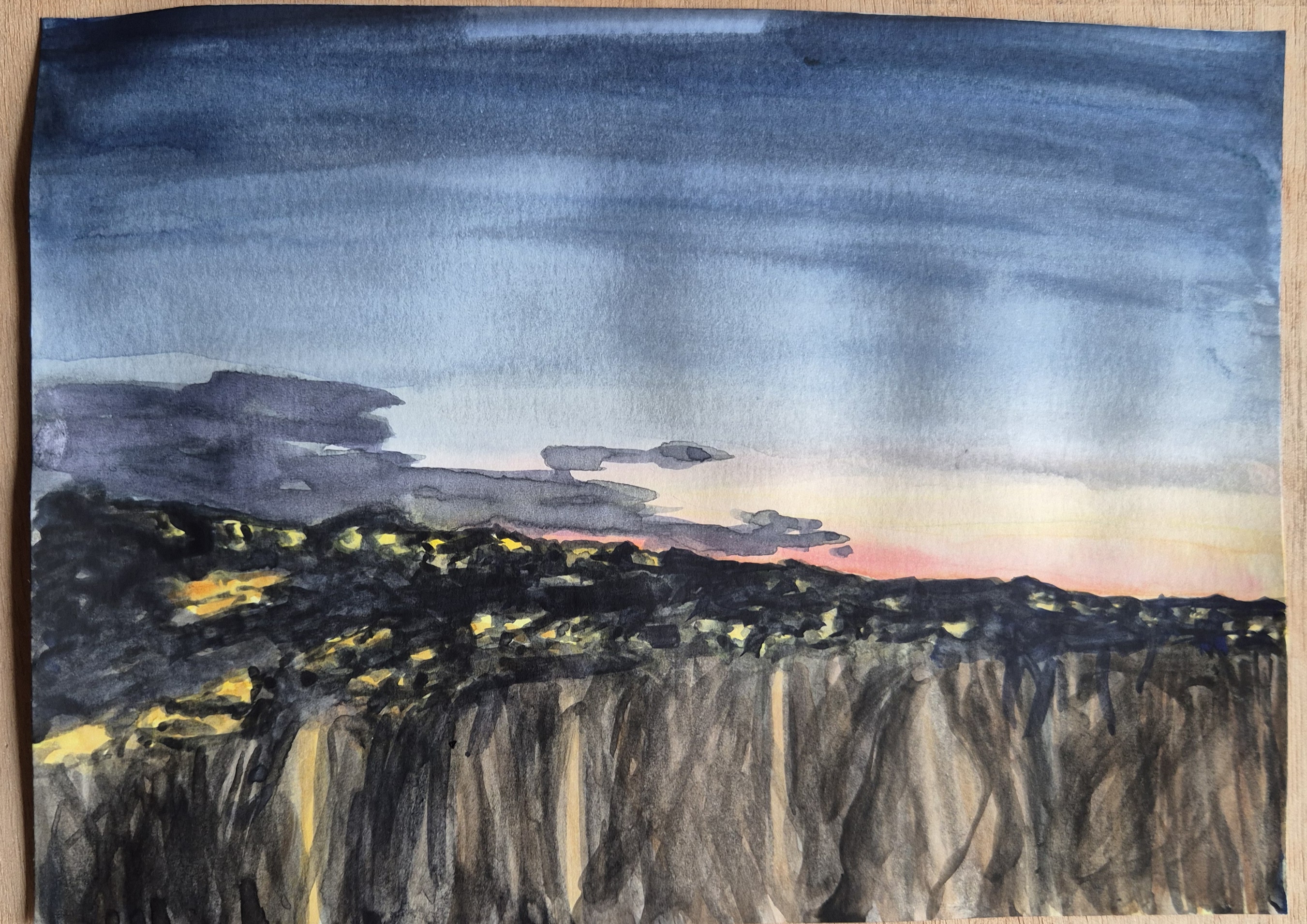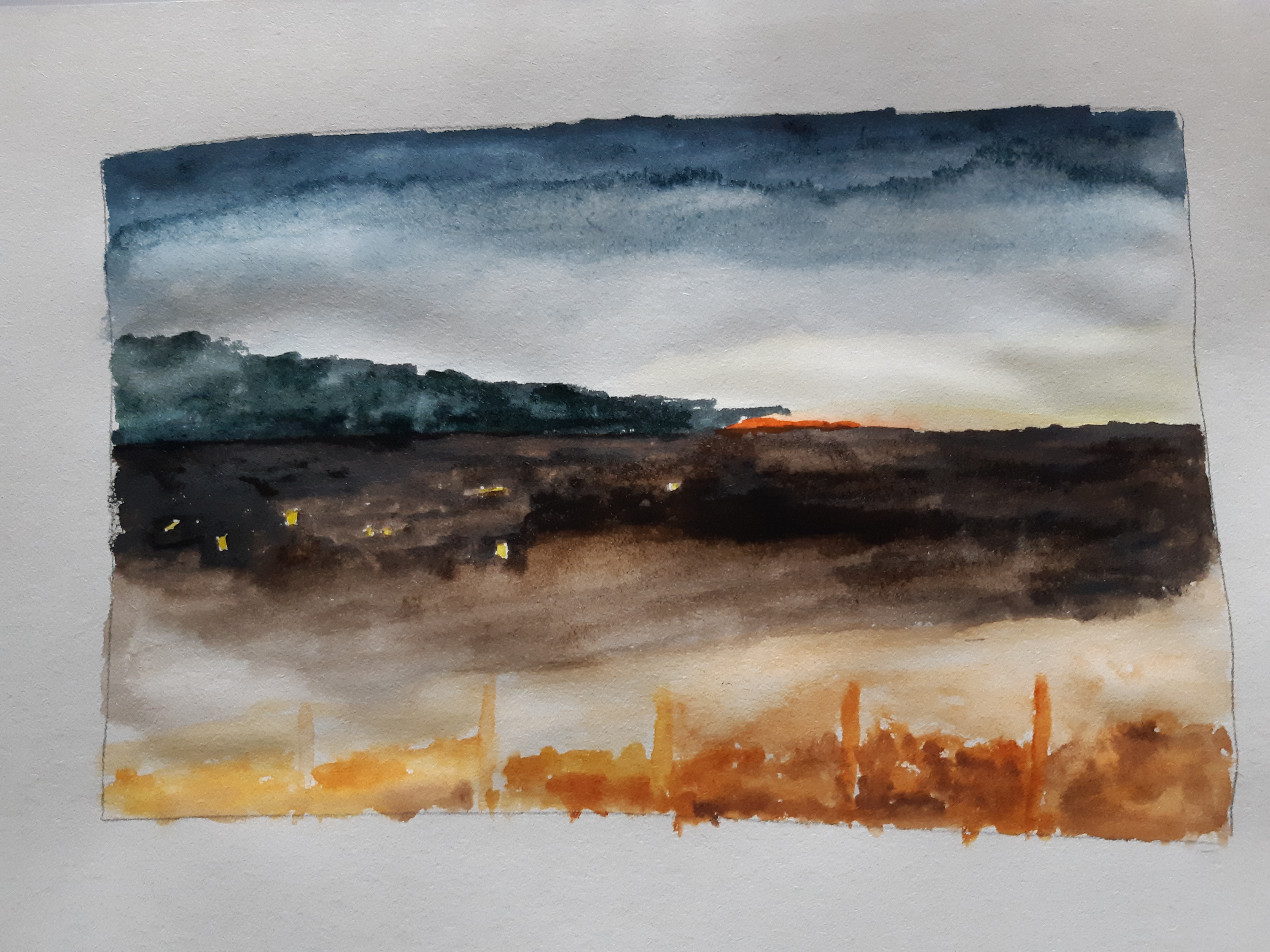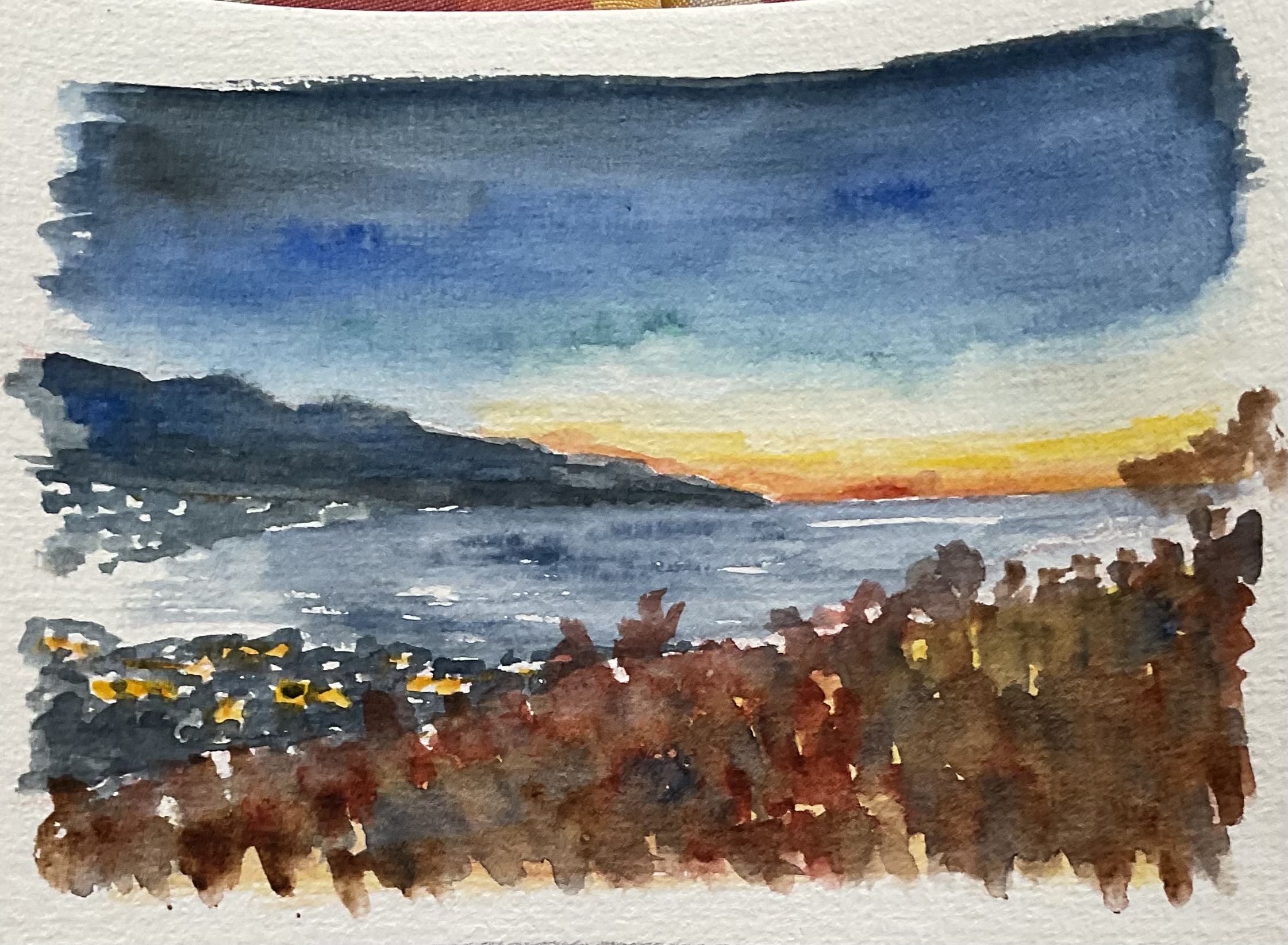 Top, funciona muy bien, veo que te sientes cómodo con la acuarela, y además, ¡la línea del horizonte es recta esta vez! 👏
