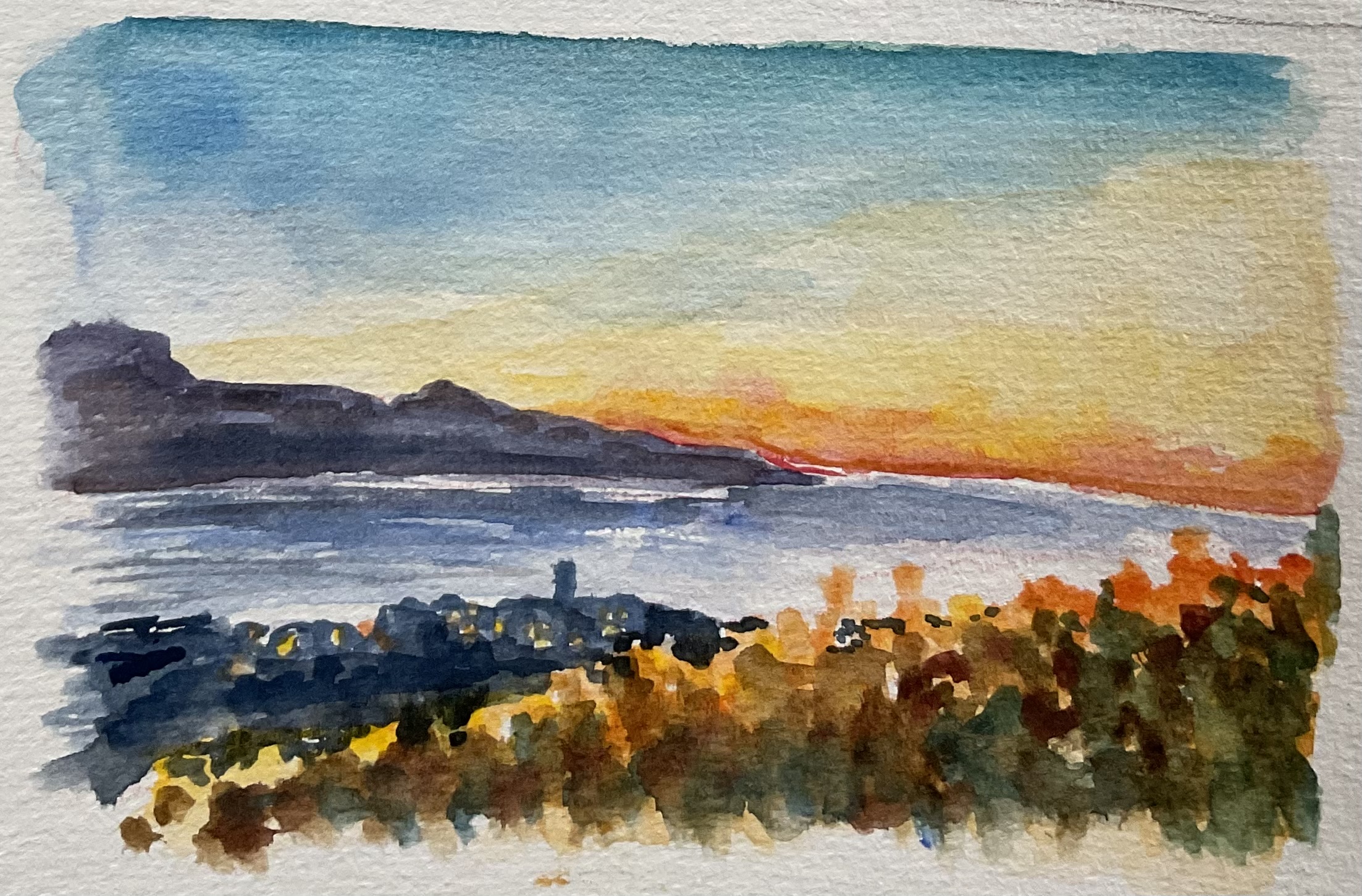 Aussi bien que la précédente, le seul petit détails qui reviens à nouveau c'est ta ligne d'horizon qui est encore incurvée aha mais toujours rien à voir avec l'aquarelle.