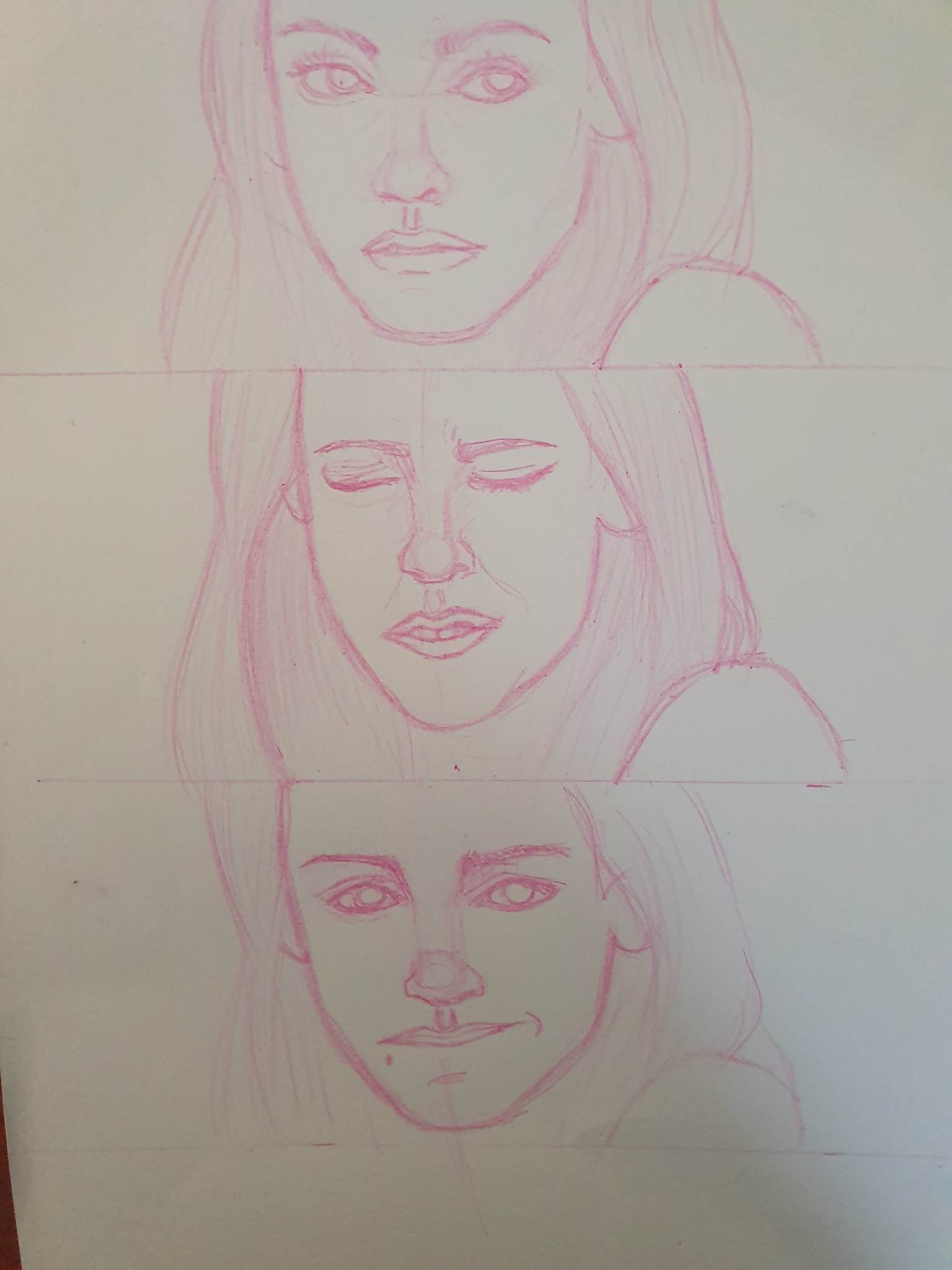 Au top, c'est bien fait et en grand en plus ! Fais d'autres essais avec des morphologies différentes (nez plus loong/court, tête plus "pointue", menton plus petit, etc) Tu peux t'inspirer de photos existantes en retrouvant la même construction ! ;)