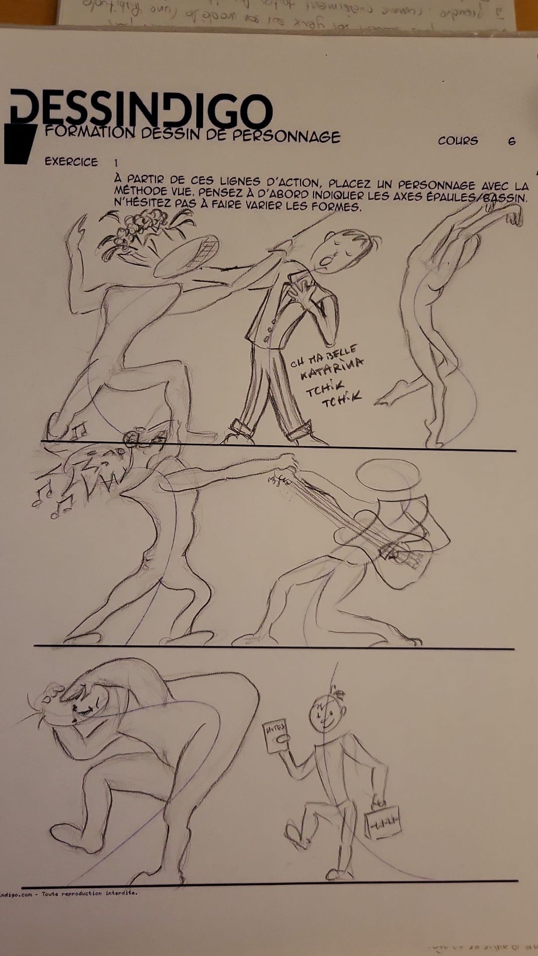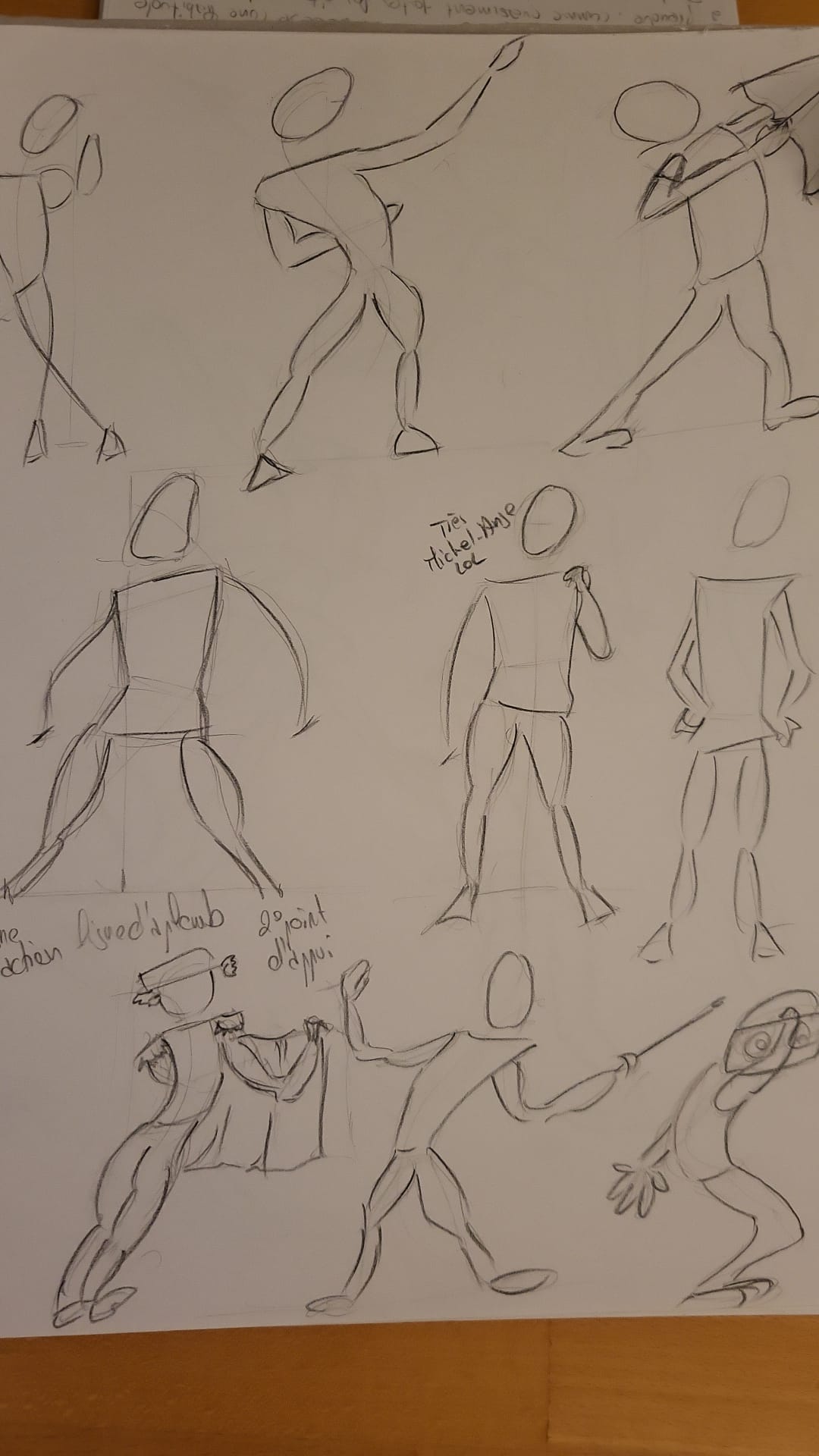 En tout cas c'est plus détendu maintenant, je commence a me familiariser avec le concept, et c'est fou ce que ça change la donne de procéder a ces petites esquisses simples, pour donner forme aux personnages 👌 Je ne sais pas si j'arriverai à faire de belles enveloppes corporelles après, c'est une toute autre histoire, mais je me sens moins fébrile à l'idée de dessiner des bipèdes, merciiiiii Yohan, pour tes super cours motivants, et tes précieux conseils 🙏