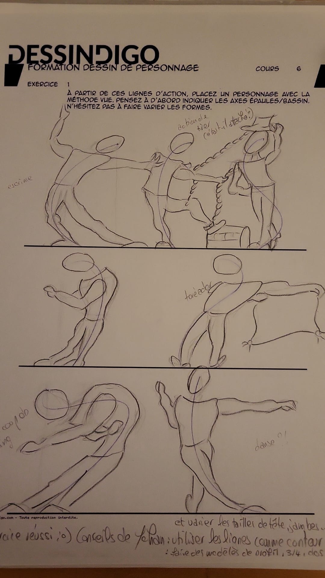 Tes croquis sont bons, continue avec cette approche, garde le rythme et suis la méthode que je vous propose ici :)