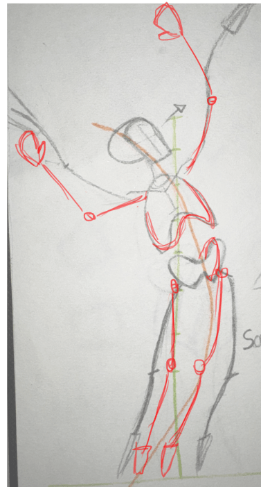 Veo que estás dando el 100% en este ejercicio y ¡me gustaría felicitarte! Cuantos más estudios hagas, más fácil te resultará entender el cuerpo y cómo funciona. Por ejemplo, aquí ya vemos un dominio mucho mejor de la proporción y la postura. Las correcciones que hice son sólo para que parezca más natural, pero realmente no estabas muy lejos. Sigue observando modelos reales y analizando su postura, ¡y lograrás dominar esta habilidad!