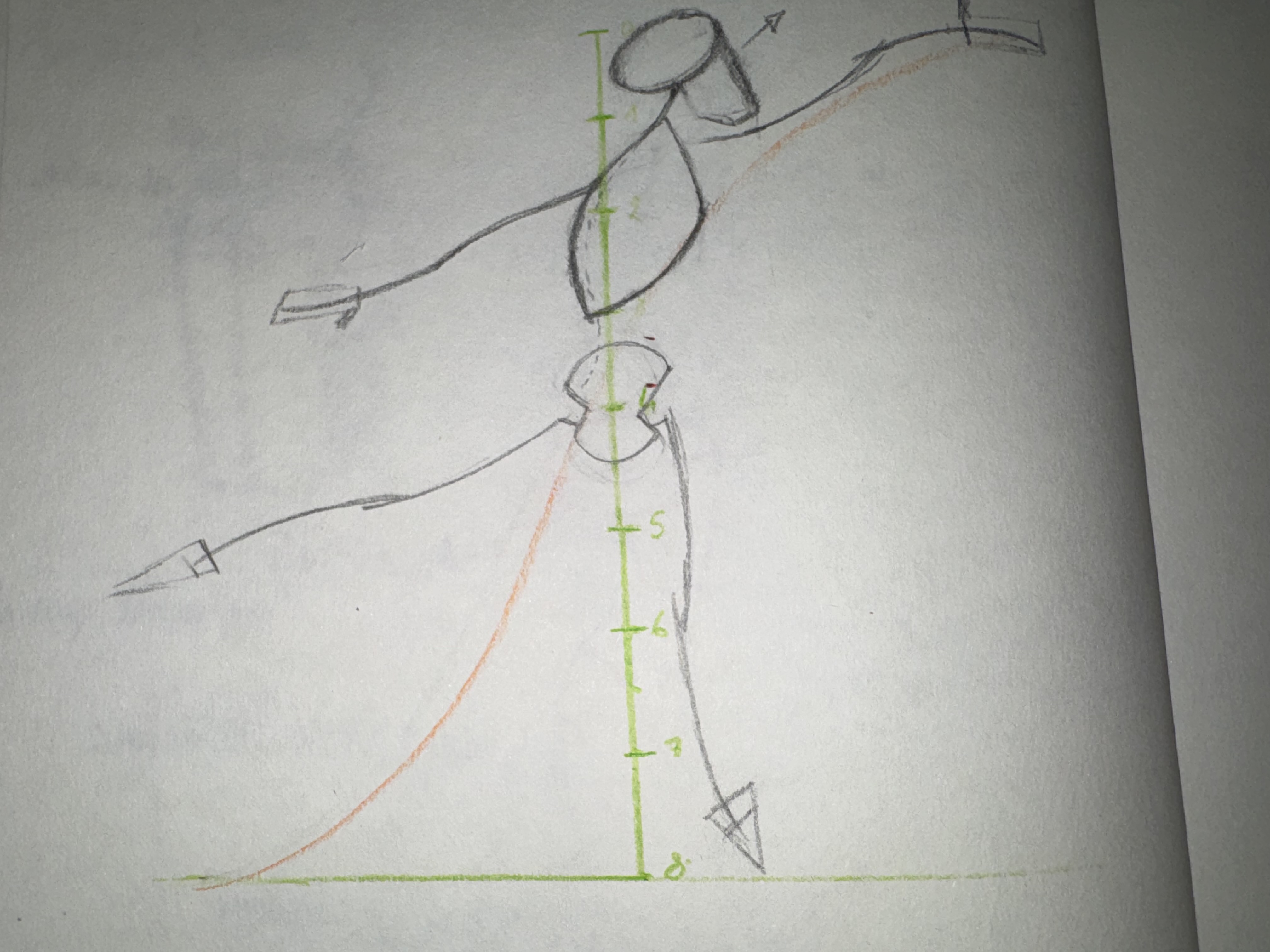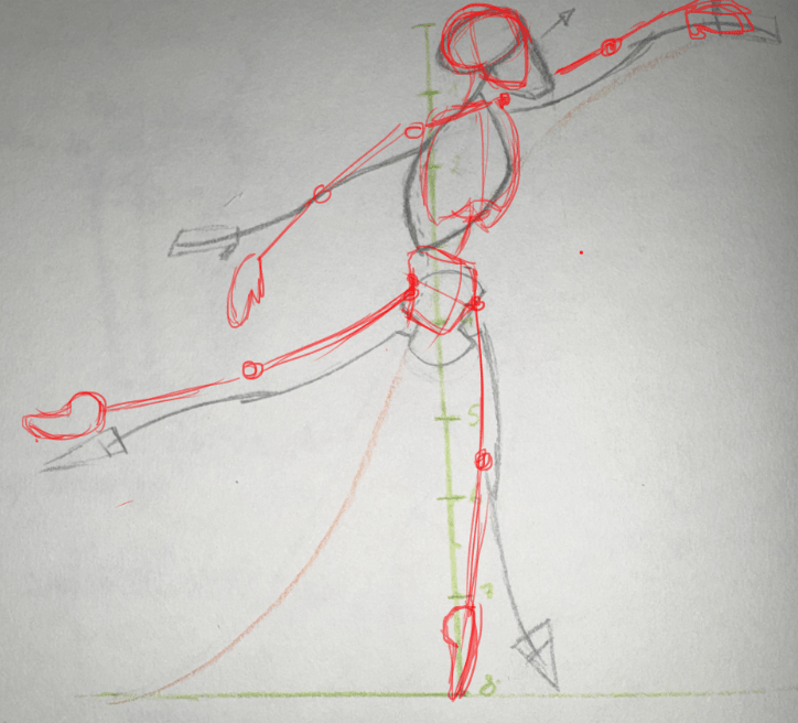 De hecho, hay algunos detalles que impiden que la imagen sea completamente cohesiva. Y tenías razón, la parte superior era demasiado grande. Recuerda que la cadera (o pelvis) ocupa el cuarto segmento, lo que marca la diferencia. Además, hice algunos ajustes de postura para darle un tacto más natural y estable, ya que el pie que tocaba el suelo no estaba alineado con el centro de gravedad.
