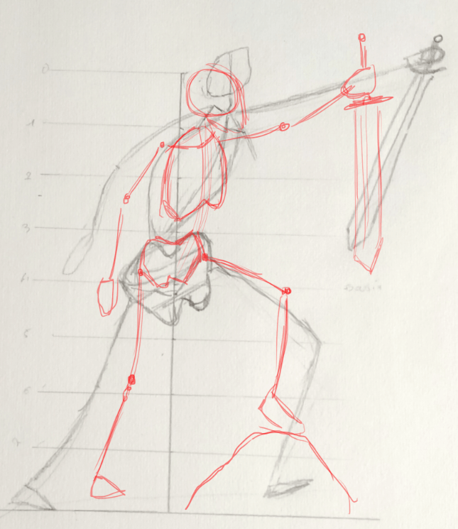 Ton chevalier est vraiment un géant ! Je te partage quelques corrections concernant les tailles et les positions que devrait avoir ce courageux homme.
