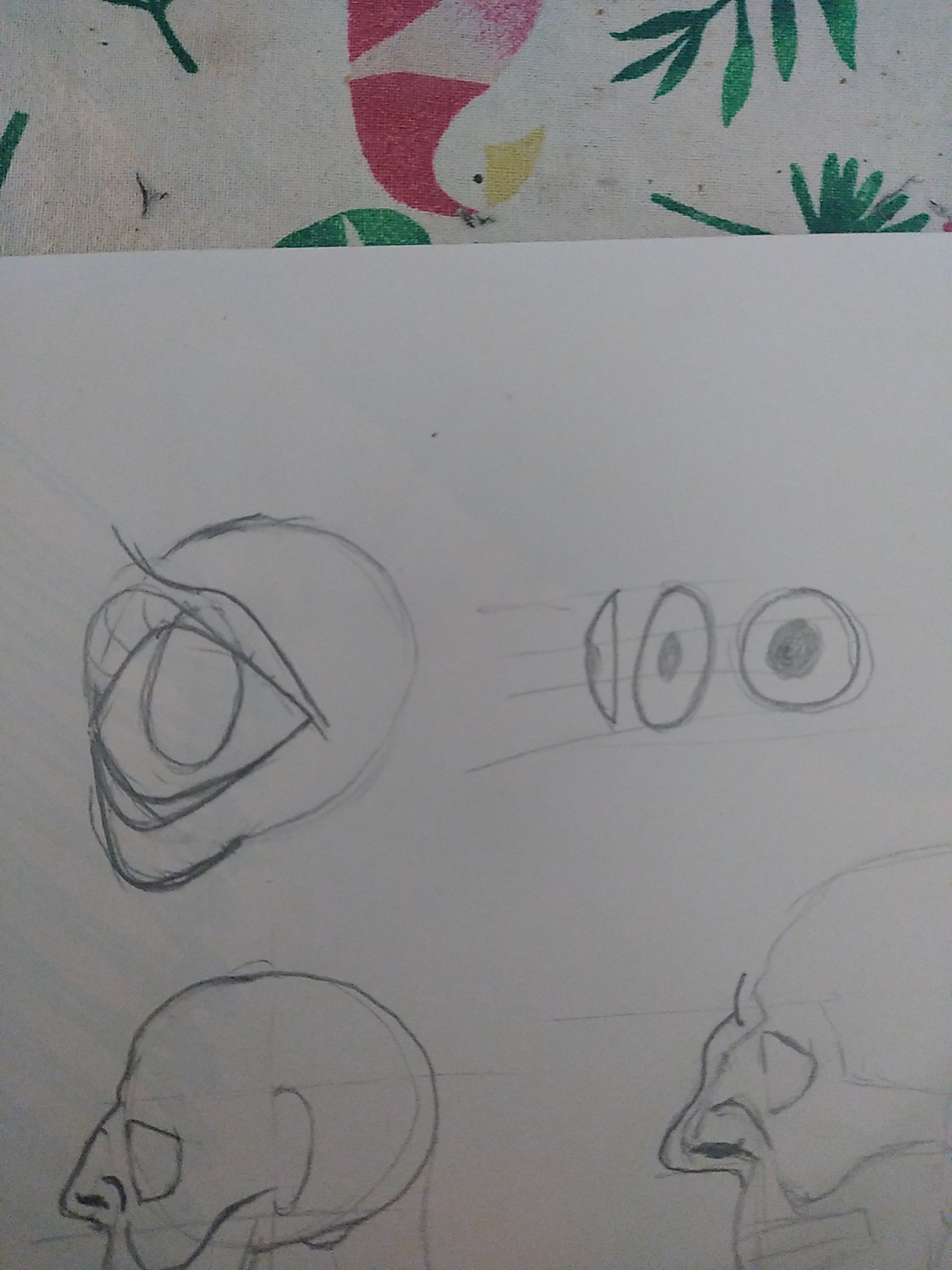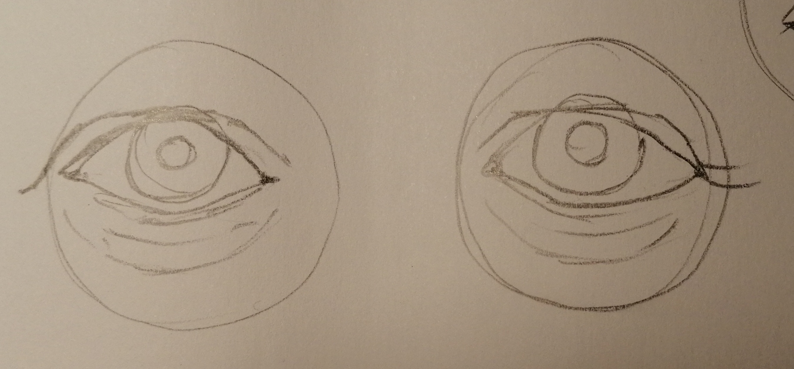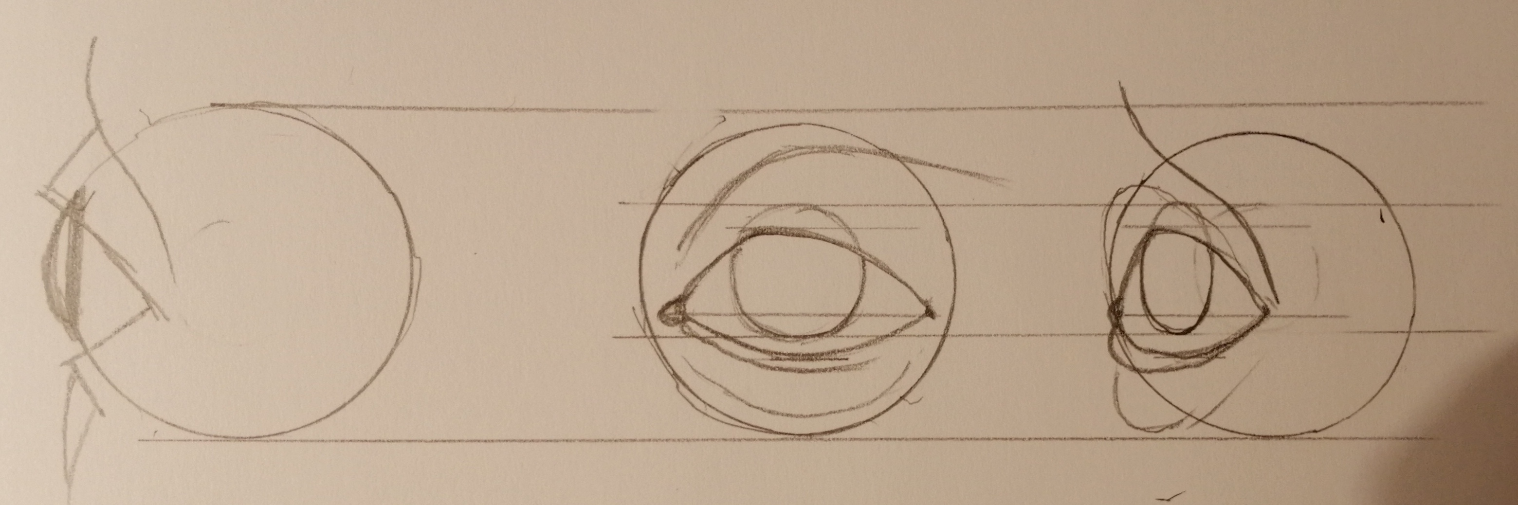 ça marche bien, l'idée maintenant c'est d'essayer de retrouver cette structure sur des images de personnes. Histoire d'analyser ce que tu vois et d'en tirer une forme simple pour comprendre. Cherche notamment du côté des stars de cinéma, ils ont une infinité de photos en HD partout donc on peut zoomer. Essayer de choper des regards expressifs et de décomposer ce que tu vois avec la méthode du cours en analysant les plis des paupières et en retrouvant la forme du globe derrière (Clint Eastwood, Morgan Freeman, Marylin Monroe, Maggie Smith, Christopher Walken, etc) Bons dessins... !